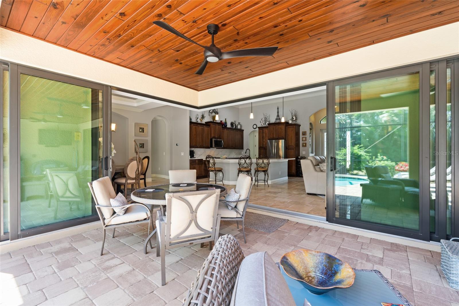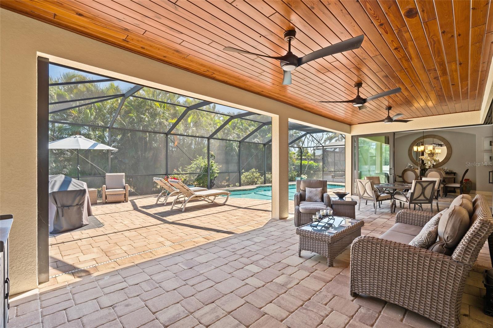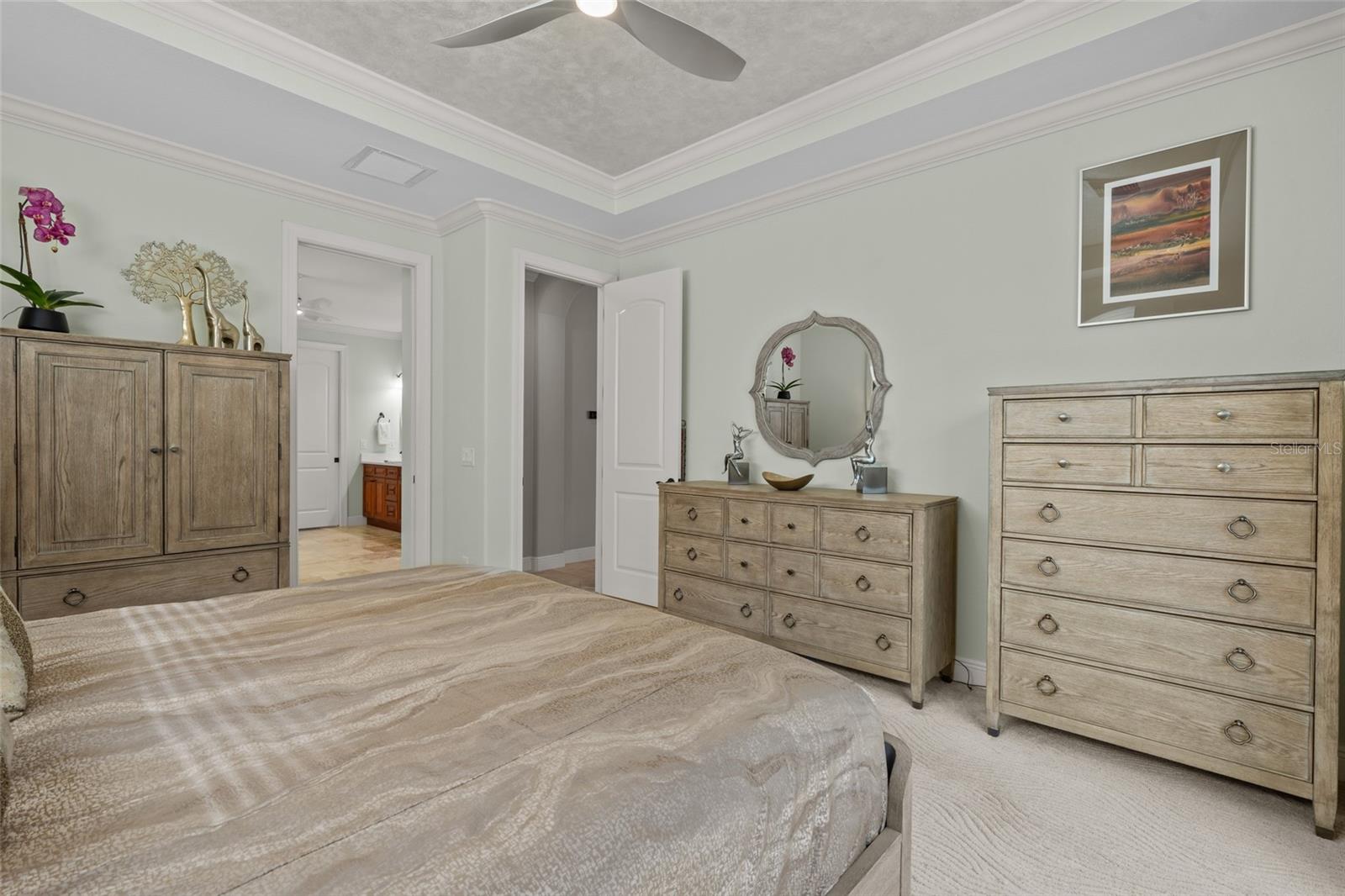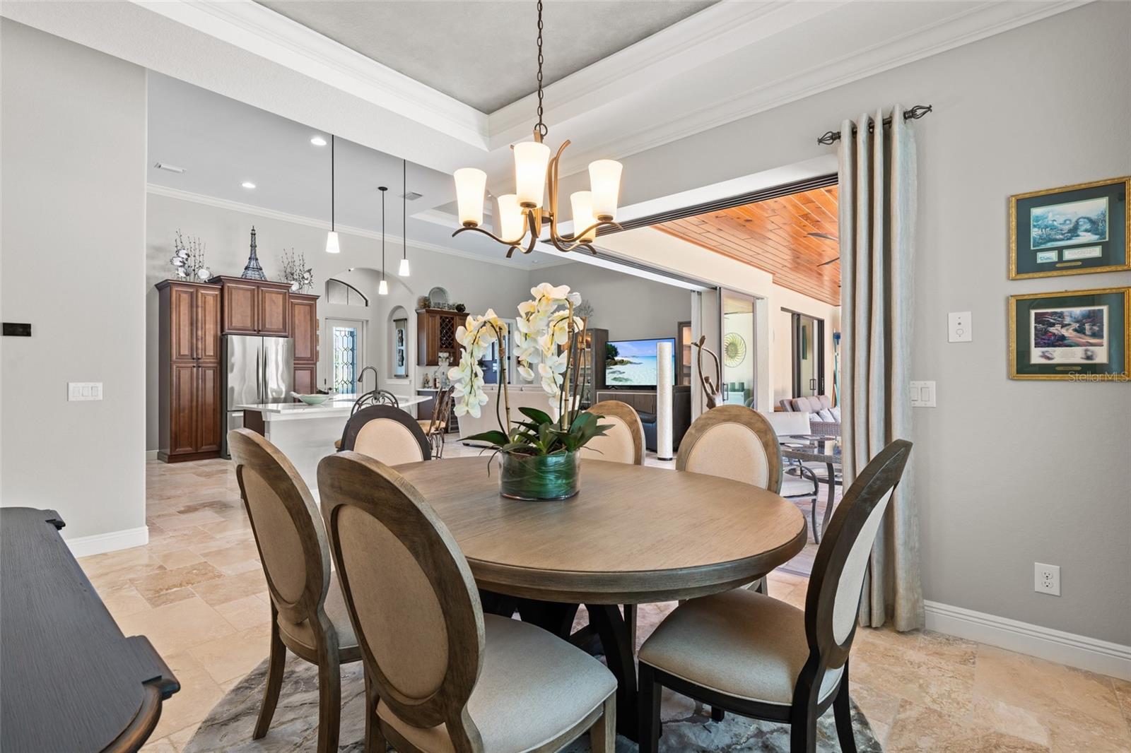 Spectacular custom built high-end executive residence offers luxurious living with every detail carefully thought out and upgraded—this home needs absolutely nothing! Built in 2016 and extensively updated in 2024, this property is a rare find that seamlessly blends timeless elegance with modern convenience. Step inside to a bright, open floor plan with extra-high and stunning tray ceiling details in the living room, primary suite, and office/den. Natural light pours through the high-impact, low-E hurricane-rated windows and doors, providing beauty, energy efficiency, and security. Elegant crown molding runs throughout the entire home, adding a sophisticated finishing touch. The heart of the home is the chef’s kitchen, upgraded with exquisite Cambria quartz countertops in 2024, along with high-end cabinetry and stylish fixtures that are both functional and luxurious. Beautiful travertine tile flooring flows throughout the main living areas, enhancing the home’s warm, upscale feel. The spacious primary suite offers a peaceful retreat, featuring tray ceilings, ample light, and a luxurious en-suite bathroom with dual vanities and gorgeous soapstone countertops. The oversized walk-in closet connects to the laundry room--a brilliant convenience and rare in most homes. The additional bedrooms are generously sized, and the office/den is perfect for remote work, a reading room, or a quiet escape. Step outside to your personal paradise—a covered lanai with a rich cedar ceiling and powerful ceiling fans, creating a serene atmosphere for entertaining or relaxing. The 90-degree pocketing sliding glass doors open fully, blending the indoors with the outdoors and leading to your heated saltwater pool, ideal for year-round enjoyment. Other features include a brand new A/C unit, new pool pump, and a whole-house reverse osmosis (RO) water system, Storm Smart screens on lanai, all installed in 2024. There’s also a dedicated EV hookup installed in 2022, along with a mini-split air conditioner in the spacious 3-car garage and wired for generator hookup.. A fresh coat of interior paint brightens the entire home. Storage is abundant, with smartly designed spaces throughout. Best of all, this home has never experienced flooding from any storm—a major bonus in Florida living. This one-of-a-kind property checks all the boxes for luxury, comfort, and peace of mind. Whether you're seeking a full-time residence or a high-end seasonal escape, this home offers everything you need. Don’t miss the opportunity to own a true gem—schedule your private tour today! Transferrable Owner Flood insurance $1867/year.