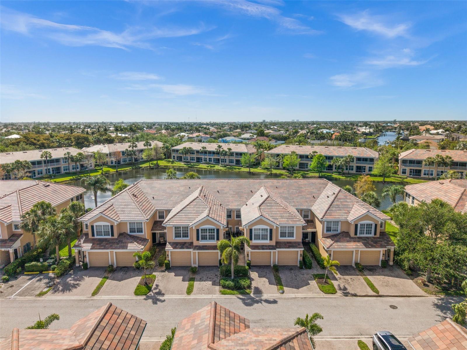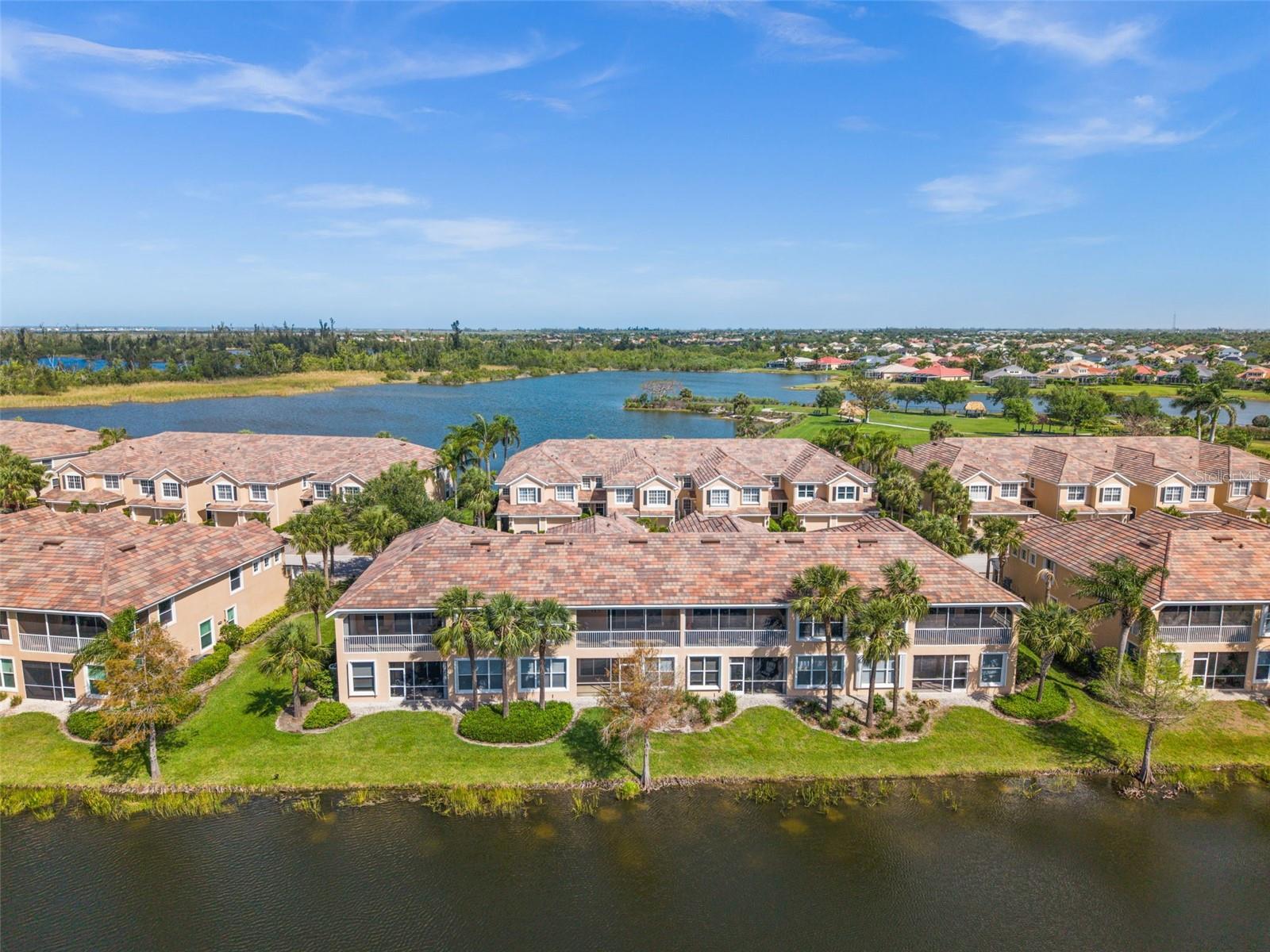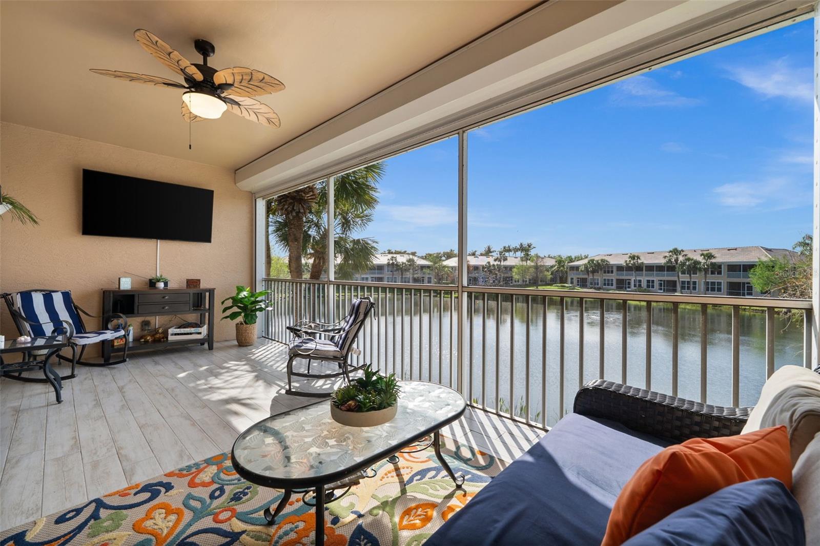 Lakefront Condo in Amenity-Rich Sandoval | Move-In Ready | Exempt from New Condo Regulations! Welcome to this extremely well-maintained 3-bedroom, 2-bath second-floor condo, located in the highly sought-after gated community of Sandoval. Set in a two-story building, this unit is exempt from the new condo regulations enacted in late 2024—giving you peace of mind and added value. Perfectly positioned in Southwest Florida, this lakefront condo, featuring a split floor plan, offers the best of tropical living. Enjoy resort-style amenities in one of Cape Coral’s most desirable communities, including lush, mature landscaping, scenic walking and biking paths, and a wide variety of activities (i.e. a lagoon-style pool, clubhouse, pickleball, tennis, basketball, beach volleyball, and two dog parks). Step inside to a freshly painted interior in a warm, neutral palette, creating a bright and welcoming ambiance. The vaulted ceilings and beautiful new(er) plank tile flooring give the home a spacious, open feel. The foyer and the staircase are refined with new carpet and a sense of welcome abounds upon entry. The kitchen is both stylish and functional, featuring quartz countertops, a subtle, decorative tile backsplash, stainless steel appliances, and a stunning center island for added storage. AC - 12/19; an added bonus. Cabinetry crown molding and updated cabinet hardware complete the look. Enjoy breakfast in the dining area, at the kitchen counter, or on the lanai while soaking in serene lake views. The oversized primary bedroom is filled with natural light from large windows overlooking swaying palm trees, creating a peaceful retreat. The primary bath boasts a walk-in shower, dual sinks, and expansive vanity space. The guest bedrooms include new ceiling fans and plenty of room to relax or work. Both bathrooms feature updated vanity hardware. Relax on the lakefront screened-in lanai, the perfect spot to enjoy the soothing water features and seasonal Florida wildlife. Sunrises to the left. Sunsets to the right. Additional highlights include: Complete Hurricane Protection on all windows, including an electric shutter on the lanai | One-car garage for added storage and convenience | Fresh exterior paint coming in the next few weeks | $20,000 roof assessment fully paid by current owners | Brand new roof – maintenance-free for years to come. This is your chance to own a slice of paradise in one of Southwest Florida’s premier communities. NO FLOOD ZONE