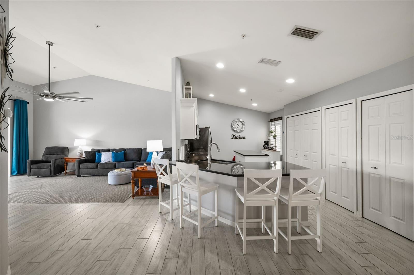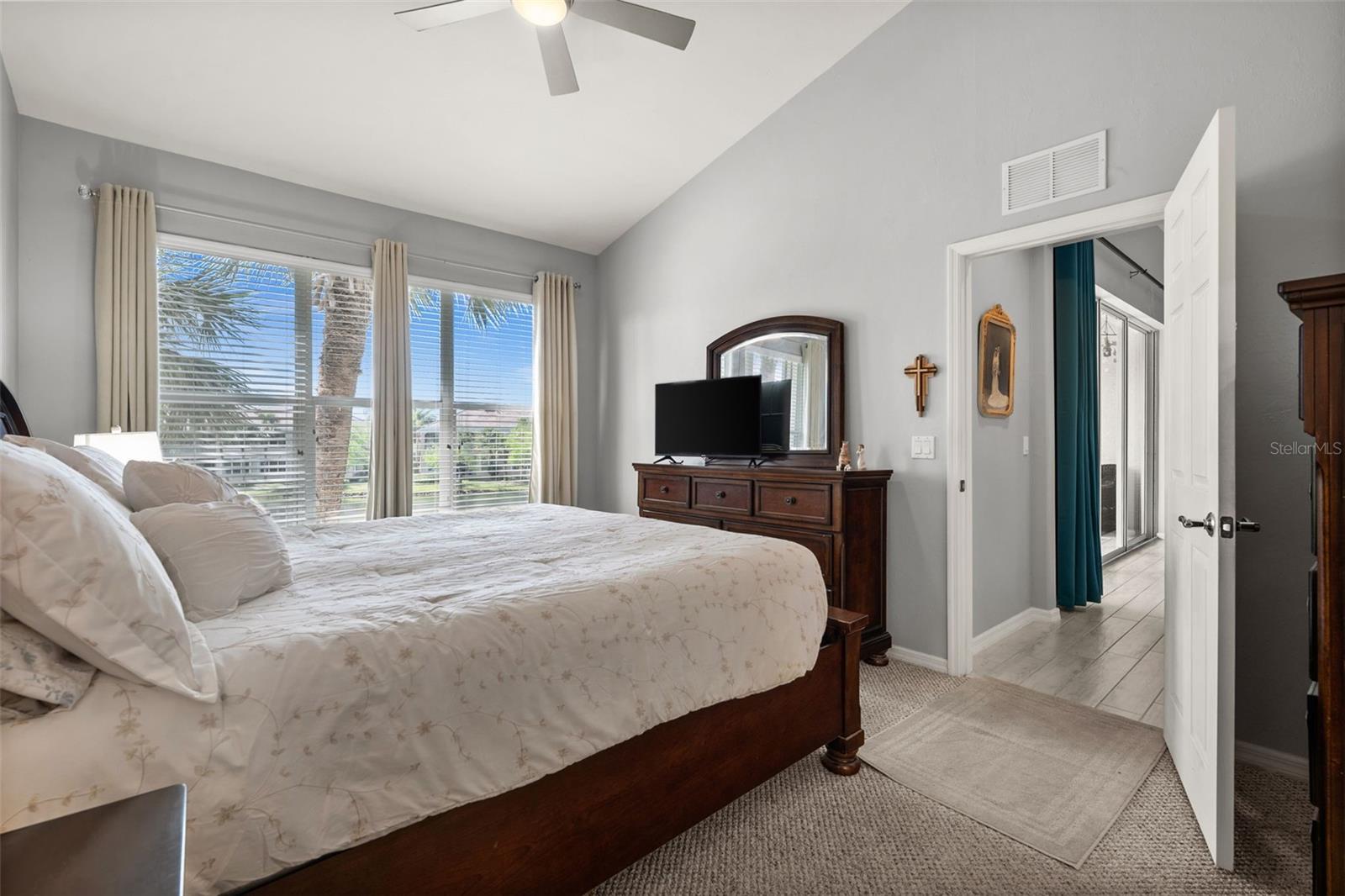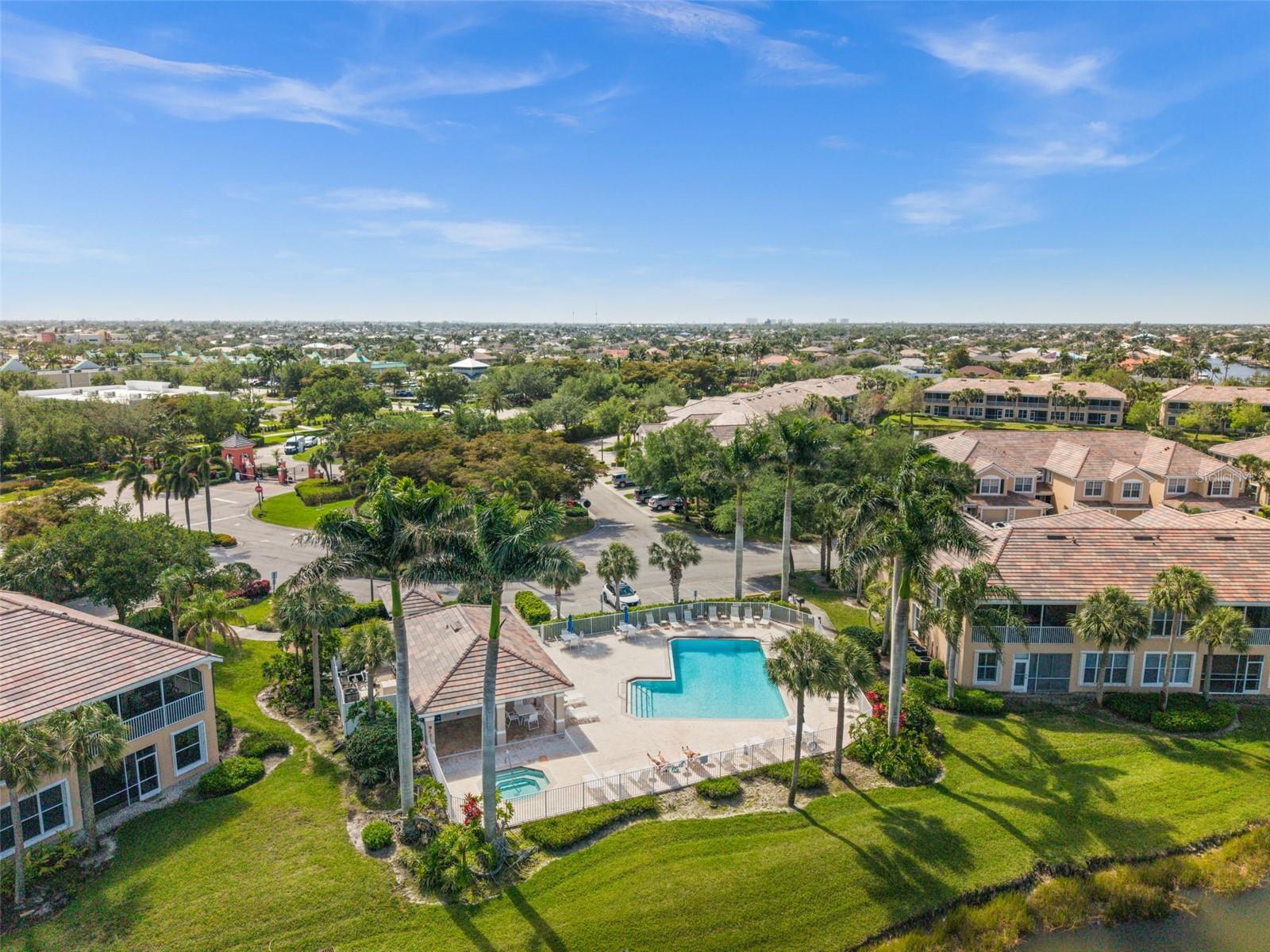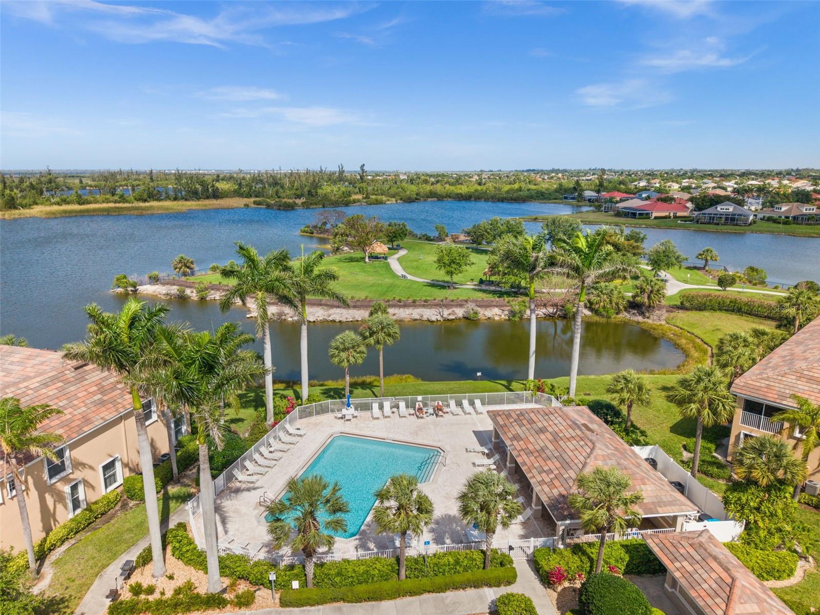 Lakefront Condo in Amenity-Rich Sandoval | Move-In Ready | Exempt from New Condo Regulations! Welcome to this extremely well-maintained 3-bedroom, 2-bath second-floor condo, located in the highly sought-after gated community of Sandoval. Set in a two-story building, this unit is exempt from the new condo regulations enacted in late 2024—giving you peace of mind and added value. Perfectly positioned in Southwest Florida, this lakefront condo, featuring a split floor plan, offers the best of tropical living. Enjoy resort-style amenities in one of Cape Coral’s most desirable communities, including lush, mature landscaping, scenic walking and biking paths, and a wide variety of activities (i.e. a lagoon-style pool, clubhouse, pickleball, tennis, basketball, beach volleyball, and two dog parks). Step inside to a freshly painted interior in a warm, neutral palette, creating a bright and welcoming ambiance. The vaulted ceilings and beautiful new(er) plank tile flooring give the home a spacious, open feel. The foyer and the staircase are refined with new carpet and a sense of welcome abounds upon entry. The kitchen is both stylish and functional, featuring quartz countertops, a subtle, decorative tile backsplash, stainless steel appliances, and a stunning center island for added storage. AC - 12/19; an added bonus. Cabinetry crown molding and updated cabinet hardware complete the look. Enjoy breakfast in the dining area, at the kitchen counter, or on the lanai while soaking in serene lake views. The oversized primary bedroom is filled with natural light from large windows overlooking swaying palm trees, creating a peaceful retreat. The primary bath boasts a walk-in shower, dual sinks, and expansive vanity space. The guest bedrooms include new ceiling fans and plenty of room to relax or work. Both bathrooms feature updated vanity hardware. Relax on the lakefront screened-in lanai, the perfect spot to enjoy the soothing water features and seasonal Florida wildlife. Sunrises to the left. Sunsets to the right. Additional highlights include: Complete Hurricane Protection on all windows, including an electric shutter on the lanai | One-car garage for added storage and convenience | Fresh exterior paint coming in the next few weeks | $20,000 roof assessment fully paid by current owners | Brand new roof – maintenance-free for years to come. This is your chance to own a slice of paradise in one of Southwest Florida’s premier communities. NO FLOOD ZONE