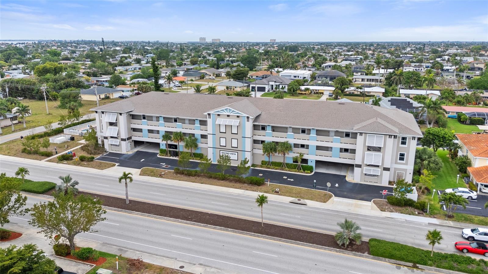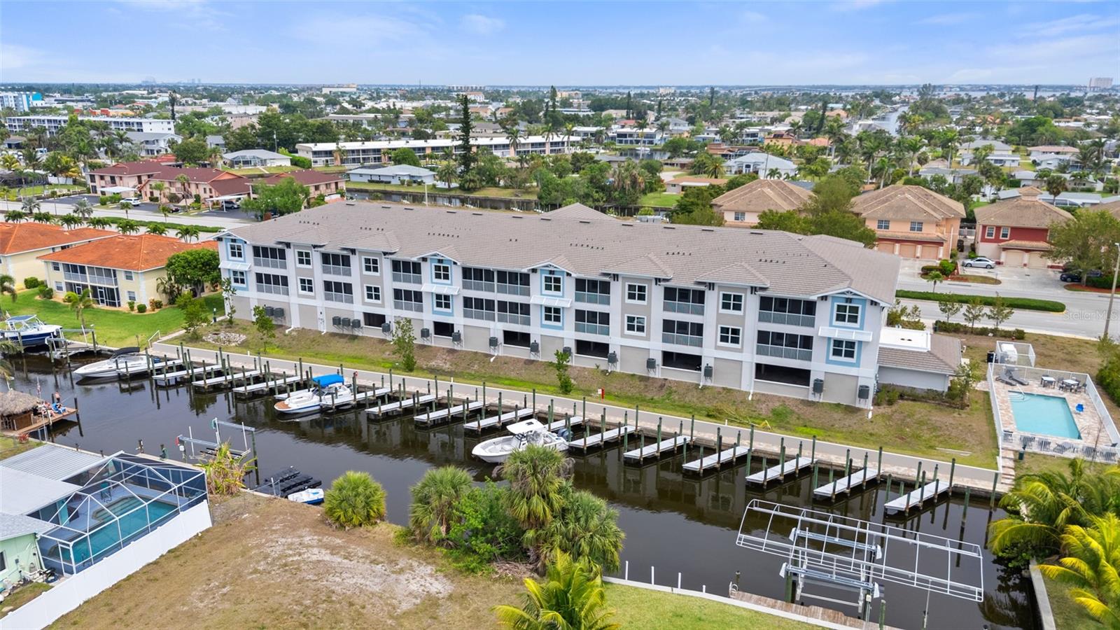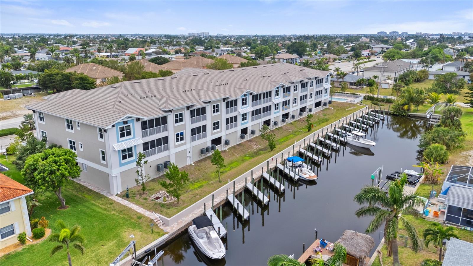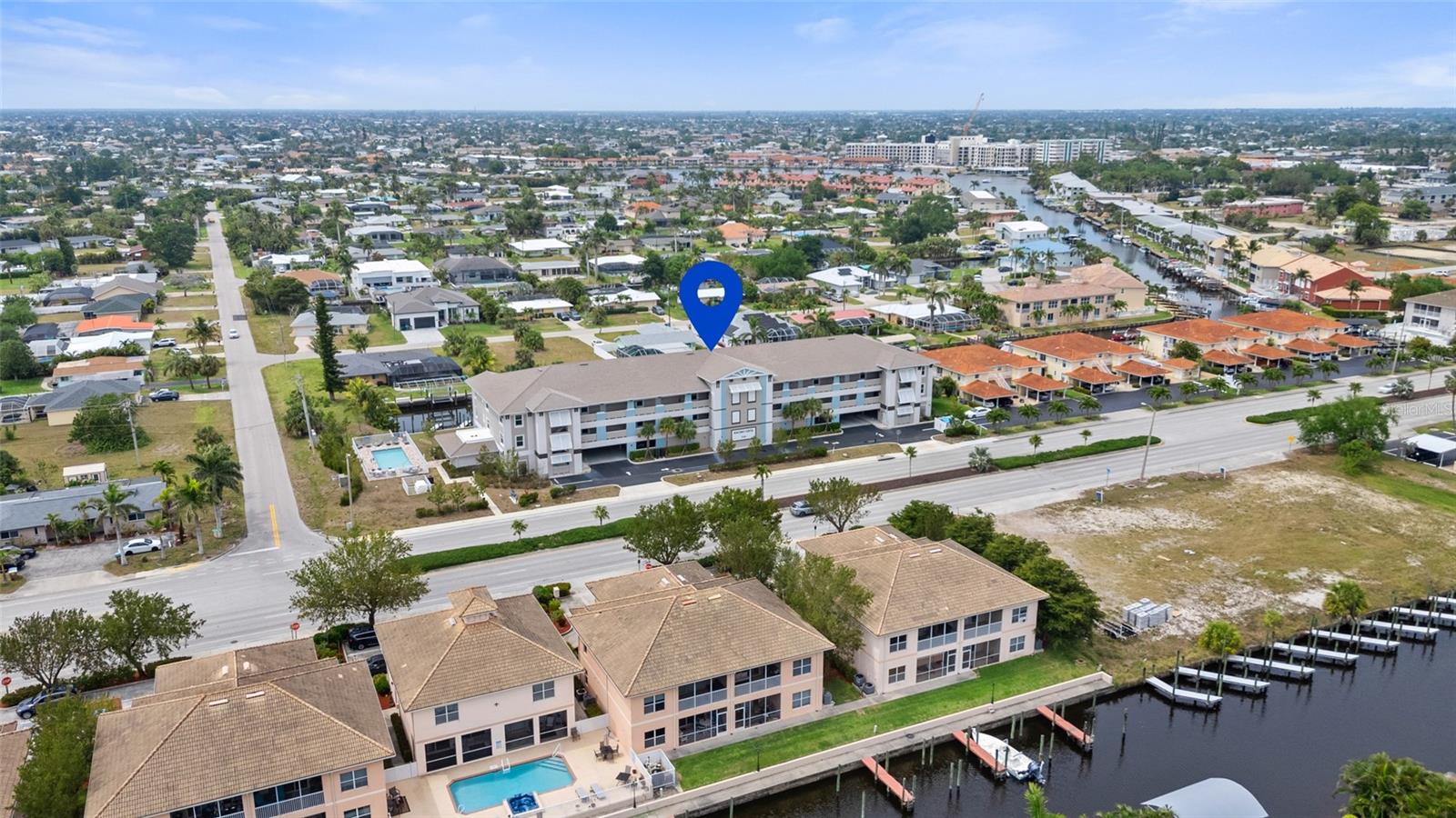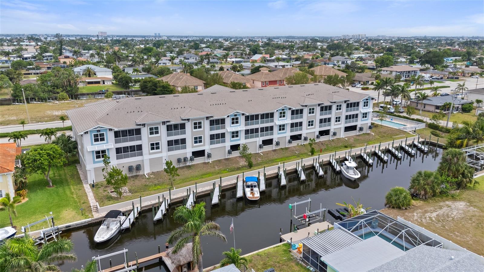 Brand-New Gulf Access Condo – Turnkey & Fully Furnished! Don’t miss the only newly built Gulf access condo community in Cape Coral! Bacino Vista is an exclusive 16-unit waterfront development offering direct, no-bridge access to open water with a deeded 18-ft boat slip, complete with electric and water at the dock. This modern 2-bedroom, 2-bathroom condo, built in 2023, is fully furnished and move-in ready. The open floor plan features 9-foot ceilings, recessed lighting, and porcelain tile flooring throughout. The chef’s kitchen is designed for both style and functionality, boasting granite countertops, a walk-in pantry, stainless steel appliances, chic pendant lighting, and a breakfast bar with seating for four. The primary suite offers direct balcony access, a walk-in closet, and a spa-like en-suite with dual sinks and a luxurious walk-in shower featuring subway tile and a rainfall showerhead. The guest bath includes a soaking tub. Relax on your screened-in lanai with peaceful canal views, or enjoy the resort-style saltwater pool surrounded by tropical landscaping. Additional perks include impact-resistant doors and windows, two assigned garage parking spaces, a locked 6’x8’ storage unit, a common elevator, and guest parking. Located near downtown Cape Coral, you'll have easy access to dining, shopping, and entertainment. Future enhancements, including the renovated Cape Coral Yacht Club, public beach expansion, and the Bimini Basin’s upcoming waterfront dining and retail, will further elevate this prime location. With major development projects underway, these condos are poised for significant appreciation. Whether you're seeking a full-time residence or a high-performing rental investment, this is an opportunity you won’t want to miss. Schedule your private tour today!