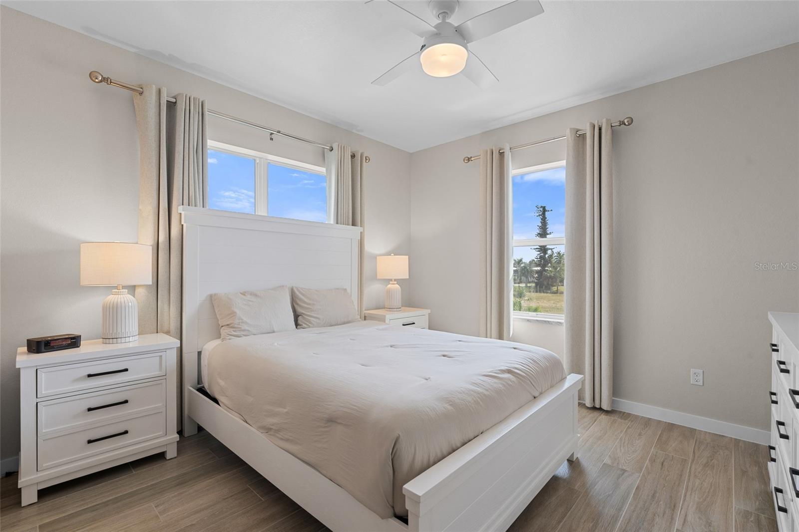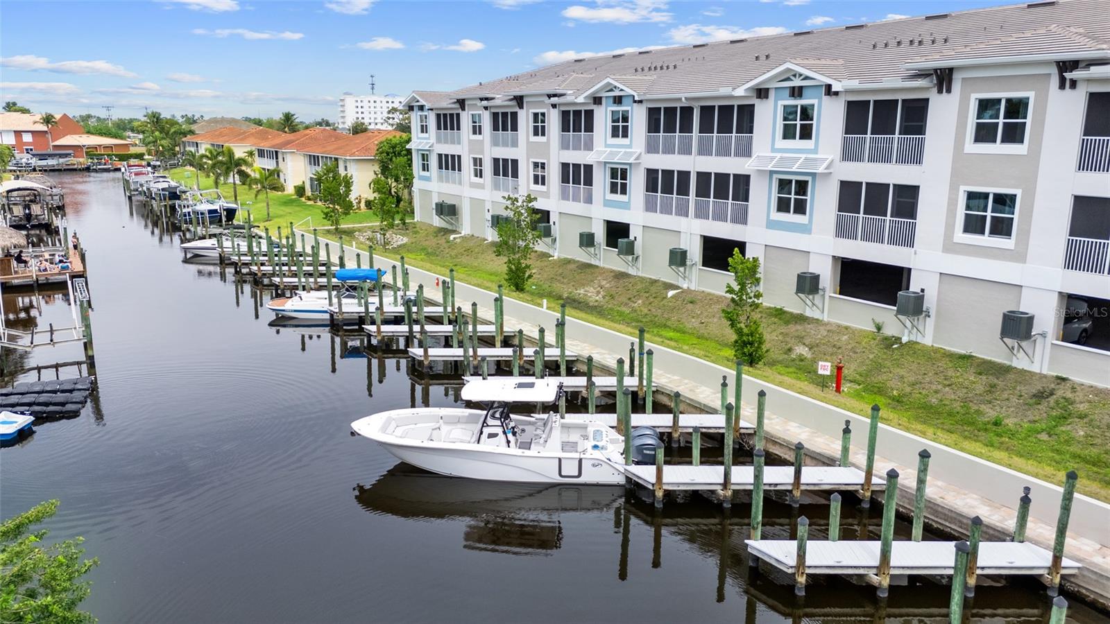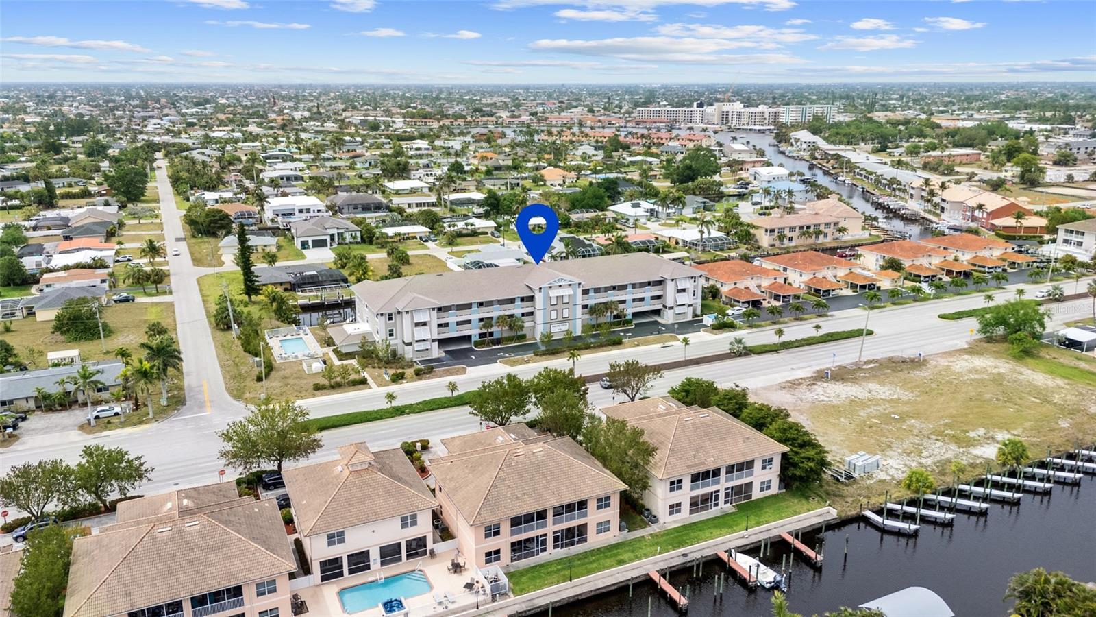 Brand-New Gulf Access Condo – Turnkey & Fully Furnished! Don’t miss the only newly built Gulf access condo community in Cape Coral! Bacino Vista is an exclusive 16-unit waterfront development offering direct, no-bridge access to open water with a deeded 18-ft boat slip. This modern 3-bedroom, 2-bathroom condo, built in 2023, is fully furnished and move-in ready. The open floor plan features 9-foot ceilings, recessed lighting, and porcelain tile flooring throughout. The chef’s kitchen is designed for both style and functionality, boasting granite countertops, a walk-in pantry, stainless steel appliances, chic pendant lighting, and a breakfast bar with seating for four. The primary suite offers direct balcony access, a walk-in closet, and a spa-like en-suite with dual sinks and a luxurious walk-in shower featuring subway tile and a rainfall shower head. The guest bath includes a soaking tub. Relax on your screened-in lanai with peaceful canal views, or enjoy the resort-style saltwater pool surrounded by tropical landscaping. Additional perks include two assigned garage parking spaces, a locked 6’x8’ storage unit, a common elevator, and guest parking. Located near downtown Cape Coral, you'll have easy access to dining, shopping, and entertainment. Future enhancements, including the renovated Cape Coral Yacht Club, public beach expansion, and the Bimini Basin’s upcoming waterfront dining and retail, will further elevate this prime location. With major development projects underway, these condos are poised for significant appreciation. Whether you're seeking a full-time residence or a high-performing rental investment, this is an opportunity you won’t want to miss. Schedule your private tour today!
