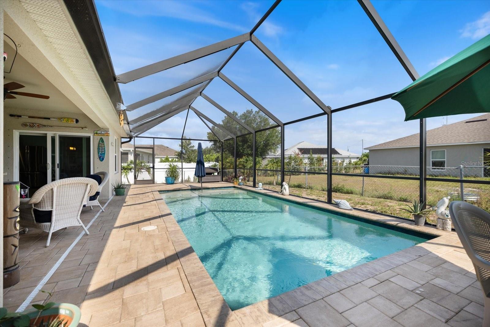 One or more photo(s) has been virtually staged. 4 Bedroom, 2 Bath, 2 Car Garage home built in 2020. You're getting over 2300 square feet, which is spacious for Cape Coral. HEATED SALTWATER POOL, IMPACT WINDOWS, TRANSFERRABLE SOLAR PANELS, NO FLOOD ZONE! NO FLOOD INSURANCE REQUIRED!! 1713 NW 9th Terrace features SCREEN PATIO, HEATED POOL, NEW ROOF, NEW A/C SYSTEM(2023). WIRED FOR GENERATOR and WHOLE HOUSE SURGE PROTECTOR. Fenced backyard with a separate dog run, and built-in cabinets in the garage for lots of storage. SELLER OPEN TO TURN-KEY OPTION!! This home is within 2-3 minutes of local parks, shopping, dining, schools, and Cape Coral’s downtown nightlife—NO HOA, NO RENTAL RESTRICTIONS, SEPTIC and WELL. With a unique layout, the primary suite is separate from the rest of the bedrooms, which adds privacy. Great fit for someone wanting new construction without the hassle!