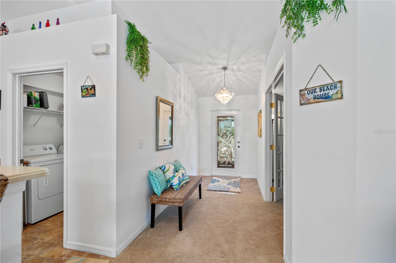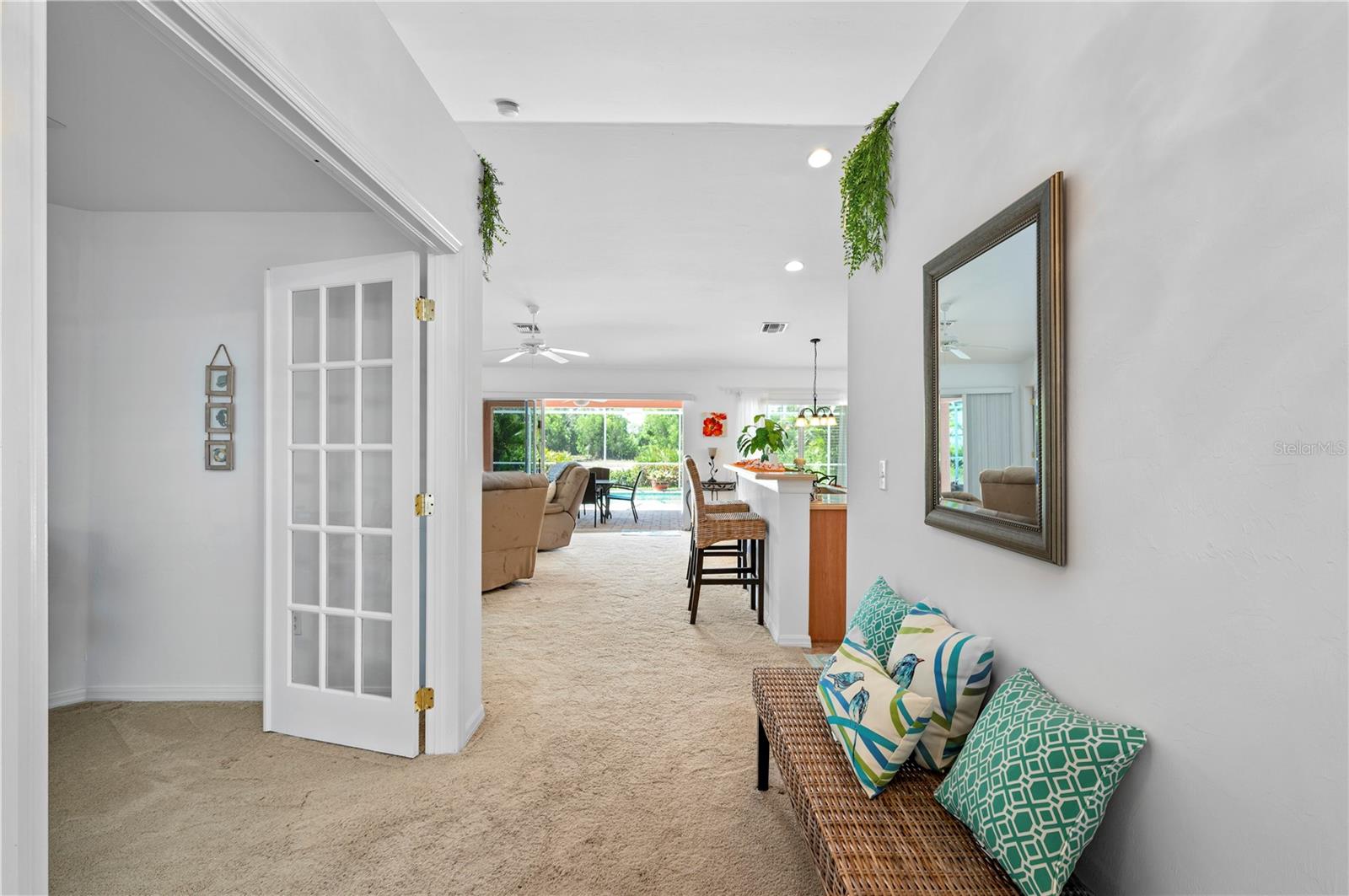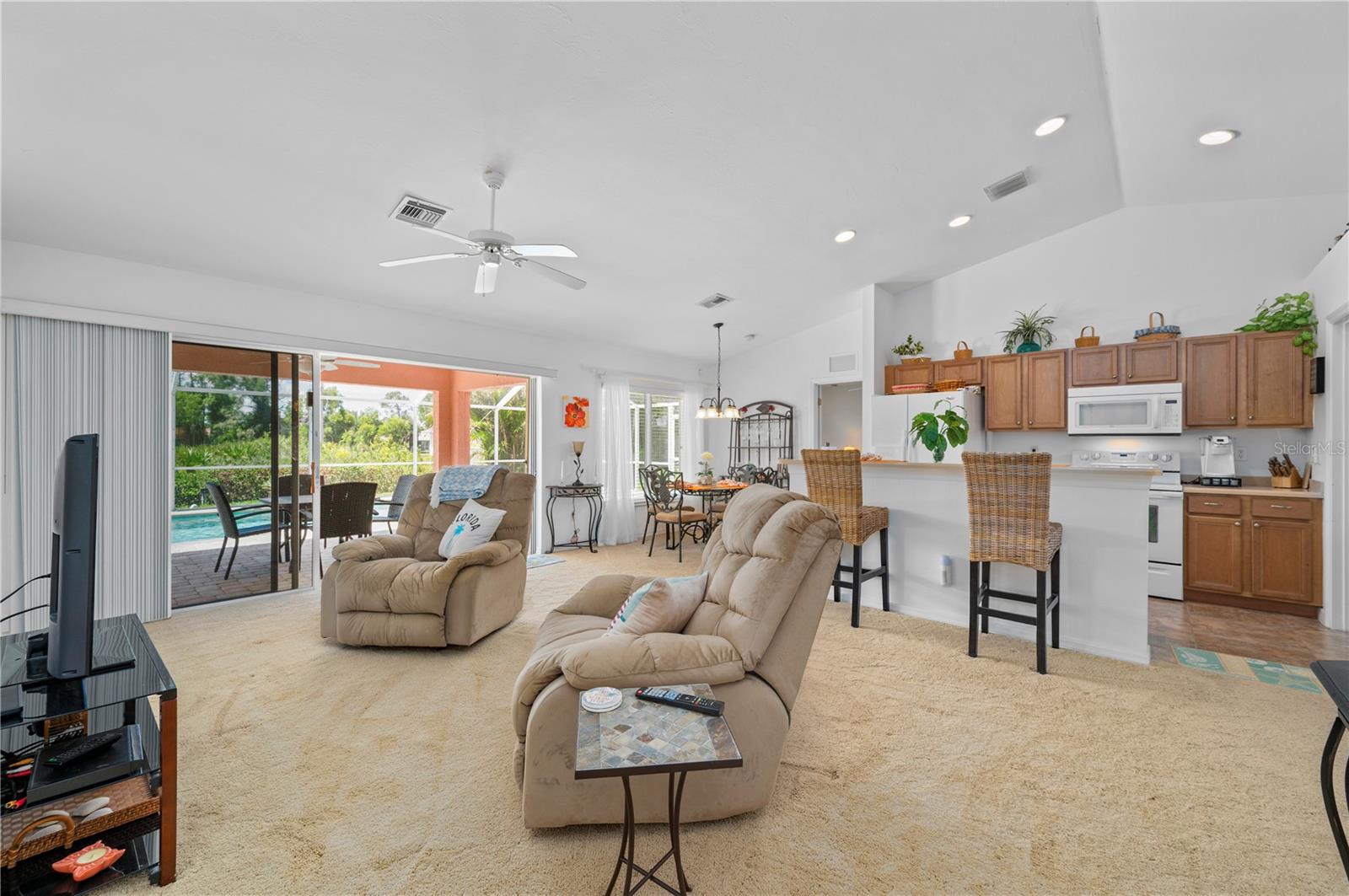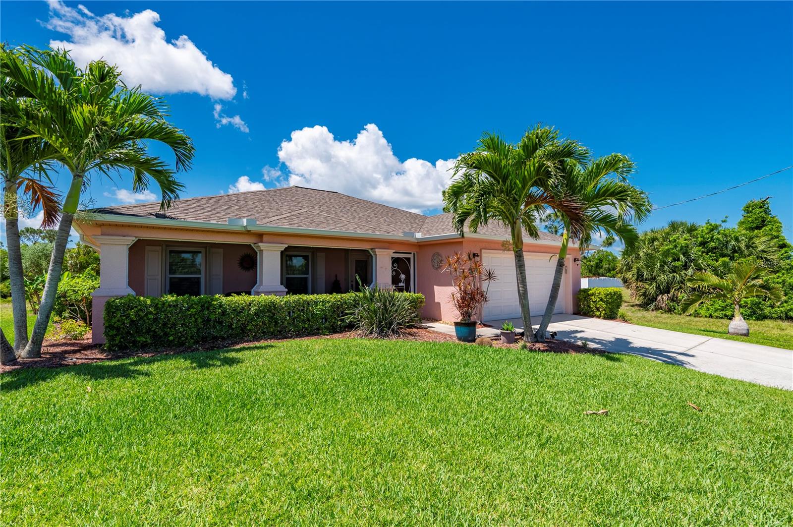 PRICE IMPROVEMENT! Step into your own slice of paradise where every day feels like a vacation. This fully furnished Florida-style retreat offers the perfect blend of charm, comfort, and simplicity-with all the features of a larger home, minus the upkeep. Tucked away near Cape Coral’s beaches, golf courses, dining and shopping, it’s ideally located for both relaxation and convenience. Inside, the natural light pours through soaring 11-foot ceilings and triple sliding glass doors, creating a bright, open living space that flows seamlessly onto the oversized screened lanai and heated pebble-tech pool-ideal for entertaining or quiet evenings under the stars. The 3-bedroom layout includes a spacious den with elegant French doors, easily converted into a fourth bedroom or home office. Subtle architectural details like accent plant shelving add character, while practical touches-accordion hurricane shutters, a water softening system, 2023 roof, and full irrigation-offer peace of mind. Enjoy morning coffee on the cozy front patio or unwind in the inviting living room that radiates a warm coastal feel. Plus, No hurricane or flood damage from the last storms. With no HOA or deed restrictions, this home is a perfect winter getaway, income-producing investment, or your ticket to the easygoing Florida lifestyle.