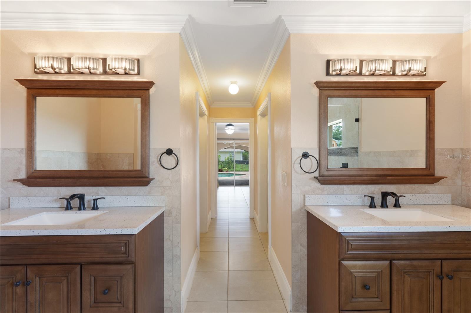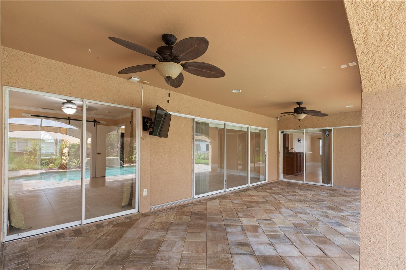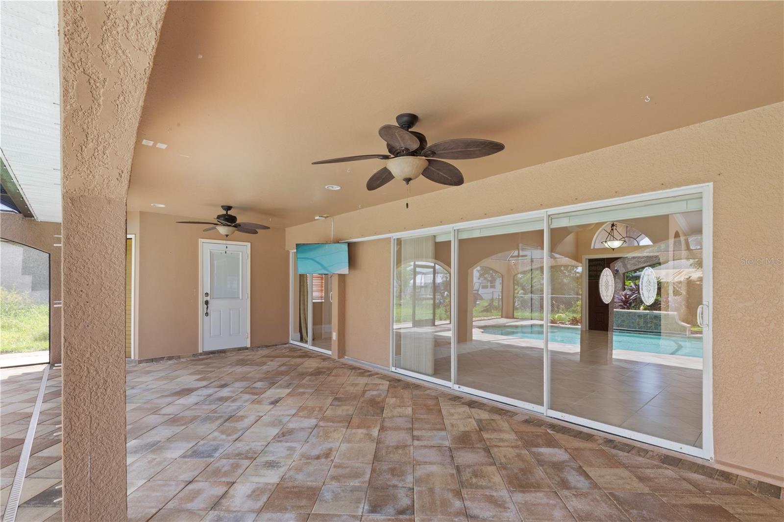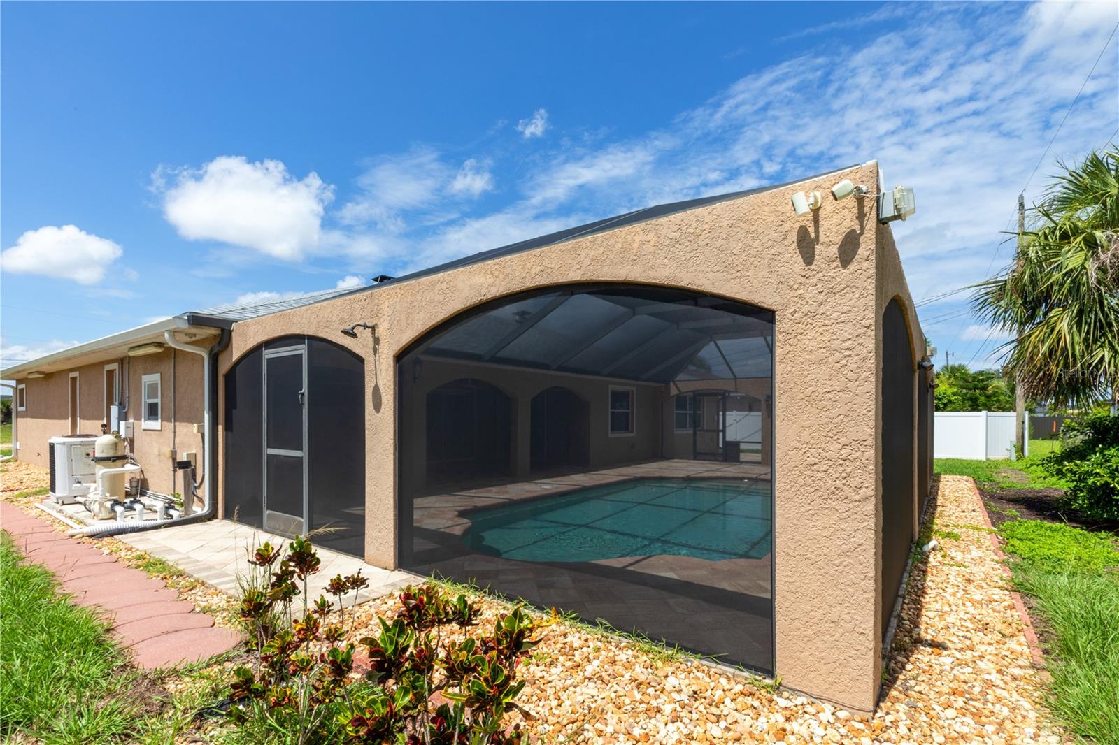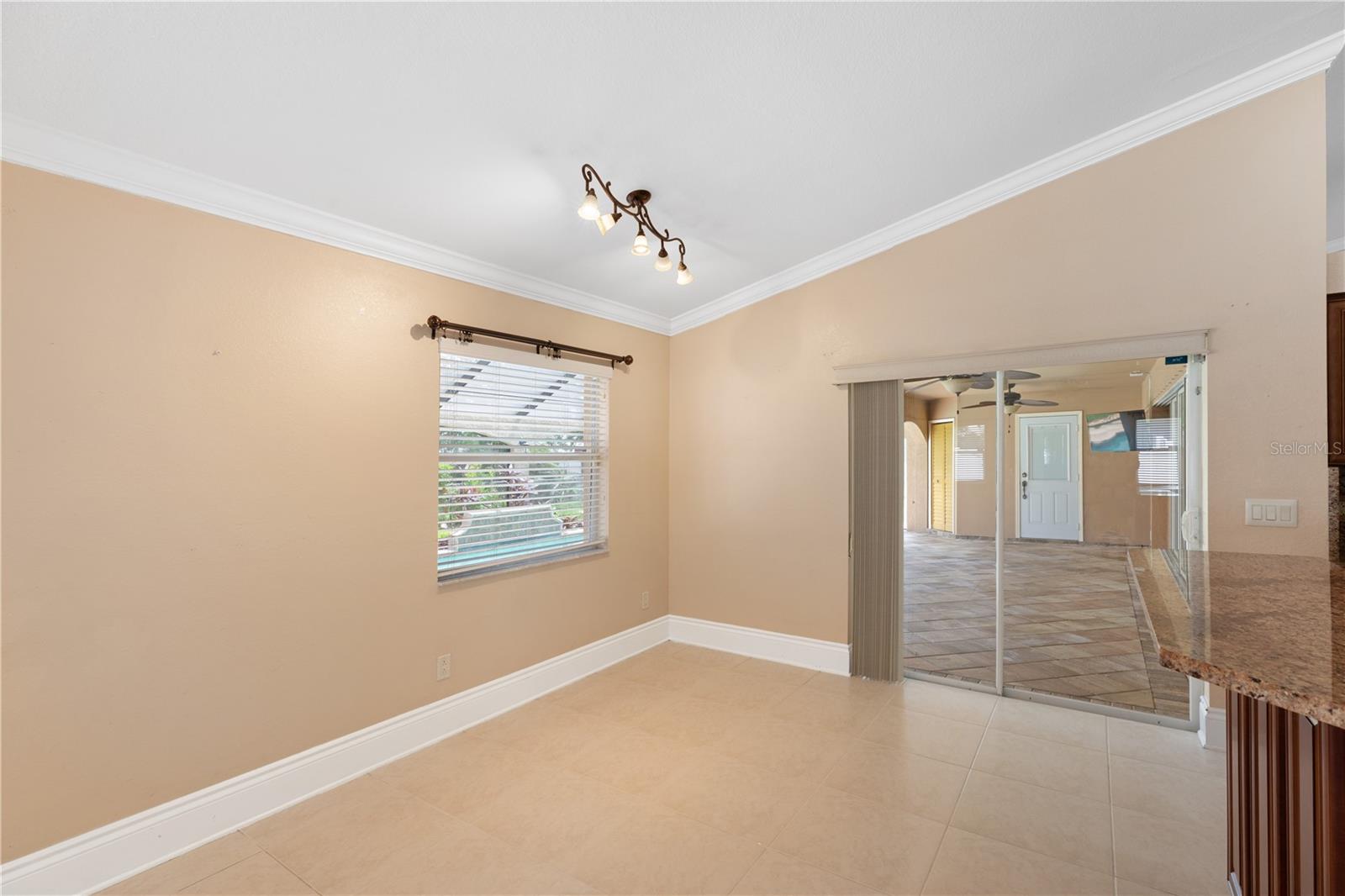 SPACIOUS 3 Bedroom, 2.5 Bathroom, 2 Car Garage, Pool home with a Family room located in Cape Coral. NO HOA FEES & NO FLOOD REQUIRED! CLICK ON THE VIRTUAL TOUR LINK 1 FOR THE VIDEO AND VIRTUAL LINK 2 FOR THE 3D TOUR. This lovely home features a bright & airy floor plan, tile flooring throughout, high ceilings, crown molding, and MUCH MORE! A versatile front patio is perfect for sipping your morning coffee, tending a patio garden, or simply relaxing and enjoying the fresh air. Enjoy a no-seeum screened front entry that creates a breezy, bug-free welcome into your home. The open-concept living and dining area is ideal for entertaining friends and family, featuring a large glass pocket slider that seamlessly connects the space to the lanai. The kitchens offers an 2024 appliances including an electric cook top and built in oven, kitchen Reverse Osmosis system, granite countertops, a closet pantry, a breakfast bar and a dinette. Expand your living and entertaining space with the generously sized Family room off the kitchen. The spacious master suite has a glass slider to the lanai, DUAL walk-in closets and a private bathroom with HIS & HERS split vanities, a walk-in shower with multiple shower heads, and a jacuzzi soaking tub. The guest bedrooms are on a split floorplan, providing plenty of privacy, with built in closets and a nearby guest bathroom. Expand your living and entertaining space to the spacious lanai, the perfect for hosting weekend barbeques, casual outdoor dining or unwinding with your favorite evening beverage. Protected by no-see-um screens, you can relax comfortably without the nuisance of bugs. Soak up the Florida sunshine from the pool deck, or lounge in style in your private HEATED saltwater pool. After a swim, rinse off in the private outdoor shower, and enjoy the convenience of a poolside half bathroom—perfect for guests and effortless entertaining. The partially fenced backyard has a paver patio—a practical space for a grill, outdoor seating, or small gatherings. Low-maintenance and functional, it offers just enough room to enjoy the outdoors without a lot of upkeep. 2024 ROOF - SOLAR ATTIC FANS - NO SEE-UM SCREENS ON FRONT & BACK LANAI - 2024 A/C & AIR HANDLER - WATER SOFTENER. Conveniently located close to local shopping & boutiques, fine & casual dining, LIVE entertainment, and a short car ride to award-winning beaches! Schedule your showing TODAY!