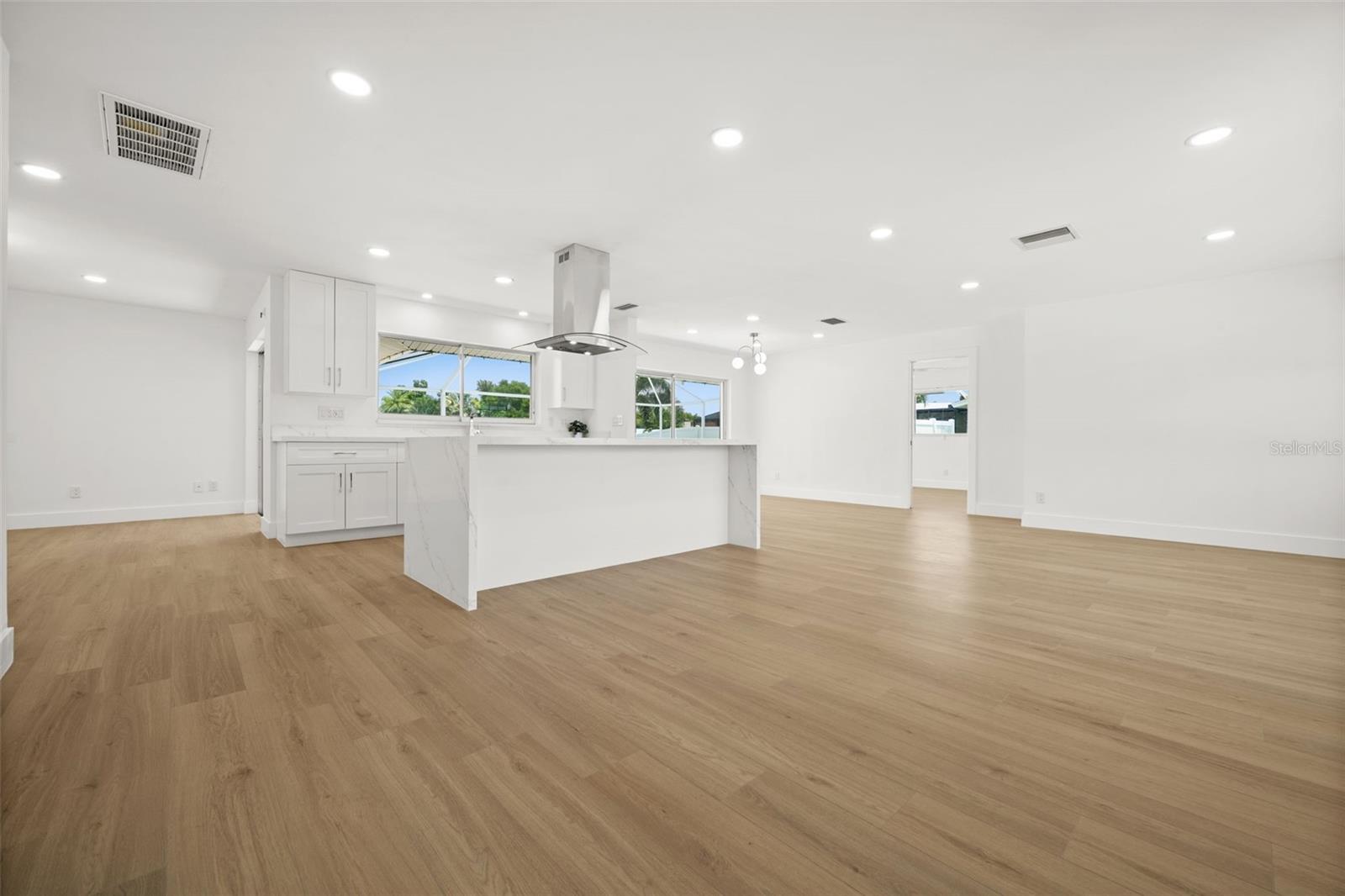 PRICED TO SELL! Welcome to 4419 SE 13th Pl, a beautifully renovated Gulf Access pool home located just minutes by boat from the river, restaurants, beaches and the Gulf! Situated on an oversized .34-acre lot with 110 feet of waterfront, this property offers expansive outdoor space and quick boating access. A composite dock and 10,000 lb boat lift make it easy to enjoy the best of Southwest Florida’s boating lifestyle. The interior is bright and modern, with recessed lighting throughout. The kitchen is a features a large island with quartz waterfall countertops, breakfast bar seating, walk-in pantry, and brand-new stainless steel appliances, including a wine fridge. The space flows into the living and dining areas, and it all overlooks the pool and canal, making it ideal for entertaining. The primary suite opens directly to the lanai and includes a walk-in closet and an ensuite bath with double vanities and a glass-enclosed walk-in shower with rainfall head. The second bedroom also features an ensuite bath. The 3rd bedroom has sliding doors directly to the Lanai, and the fourth bedroom has lots of windows for tons of natural light. A third full bathroom doubles as a pool bath. The large lanai and pool area are finished in travertine pavers, extending into a walkway that leads to the dock. Whether you're relaxing poolside or watching the sunset from your backyard, this home was designed to maximize outdoor living. Additional features include electric roll-down hurricane shutters around the entire home, a two-car attached garage, and a washer, dryer and laundry sink. This move-in ready home offers a rare combination of space, style, and location in one of Cape Coral’s most desirable neighborhoods.