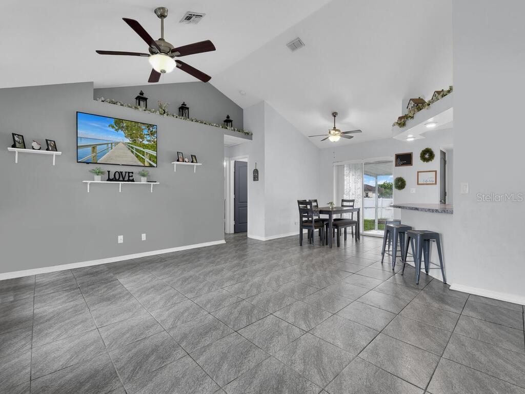 Welcome to this beautifully maintained 3-bedroom, 2-bath home located in southwest Cape Coral! Featuring an open floor plan with vaulted ceilings, this home offers a bright and spacious living area perfect for entertaining. Enjoy durable tile and laminate flooring throughout—no carpet! The kitchen opens seamlessly into the main living space, ideal for modern living. Step outside to a screened-in lanai overlooking a private, fully fenced backyard—perfect for relaxing or hosting guests. Recent upgrades include a new roof (2023) and new plumbing (2019). Centrally located near schools, shopping, and dining, this move-in ready home is a must-see!