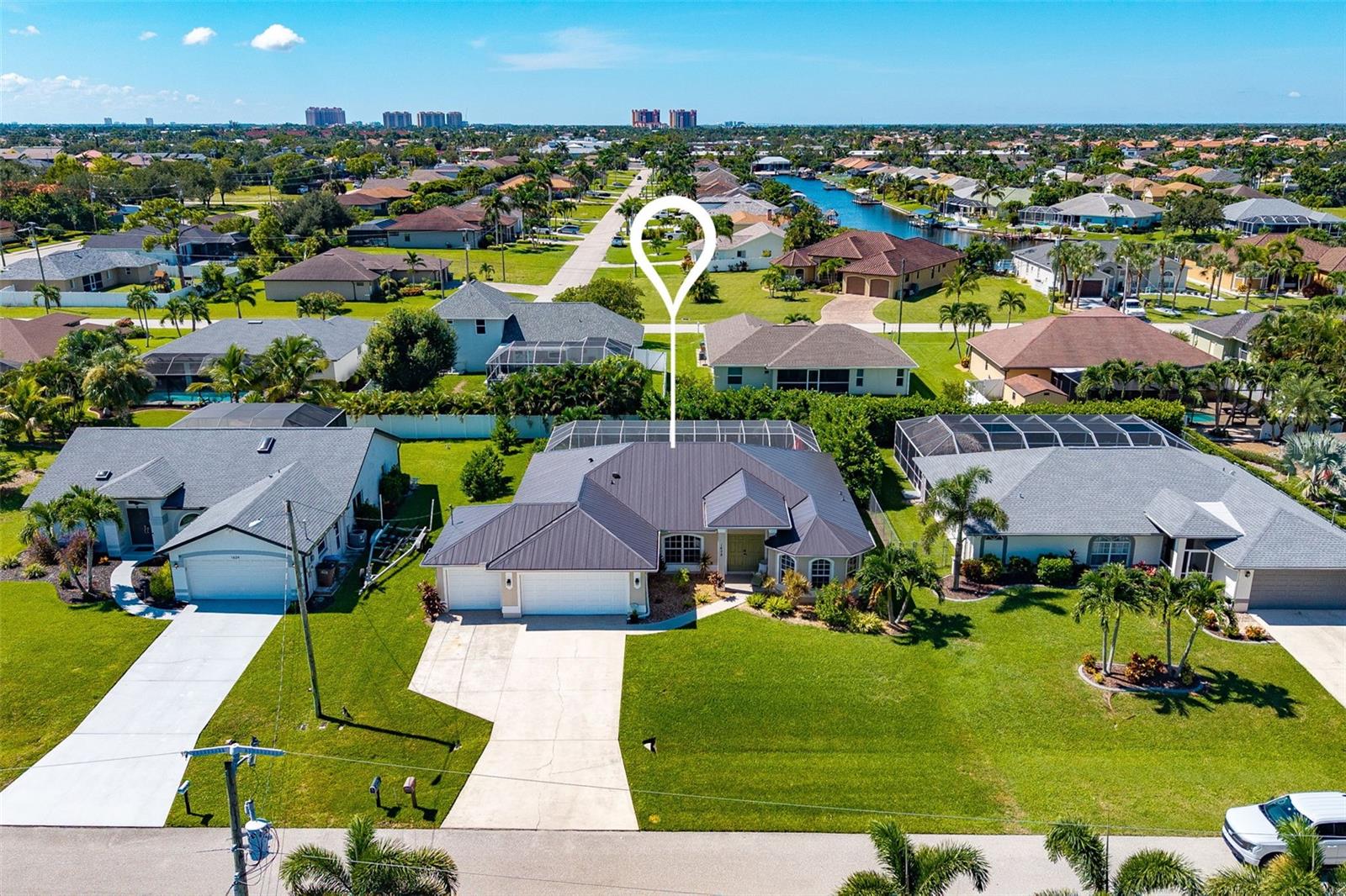 Stunning 3-Bedroom Pool Home in Highly Desirable SW Cape Coral! Welcome to your dream home in one of Cape Coral’s most sought-after neighborhoods! This beautifully remodeled 3 bed, 2 bath + spacious den home offers the perfect blend of comfort, style, and functionality — all close to shopping, dining, and everyday conveniences. Step inside to an open concept layout featuring vaulted ceilings, a split bedroom design, and soft-close cabinetrythroughout. The kitchen showcases granite countertops and overlooks the expansive living and dining area, making it ideal for entertaining. Enjoy the Florida lifestyle in your southern exposure over sized lanai , complete with a heated pool, sun shelf, and a dedicated pool bathroom. The tongue and groove ceilings on the lanai and front entryway add warmth and charm, while electric roll-down shutters provide year-round protection and ease. Car enthusiasts and hobbyists will love the rare 3.5-car garage, offering plenty of space for vehicles, tools, or toys. Recent upgrades include a new metal roof (2022) and a full interior remodel completed in 2022. Don’t miss this opportunity to own a move-in ready home with luxury finishes and an unbeatable location in Southwest Cape Coral!
