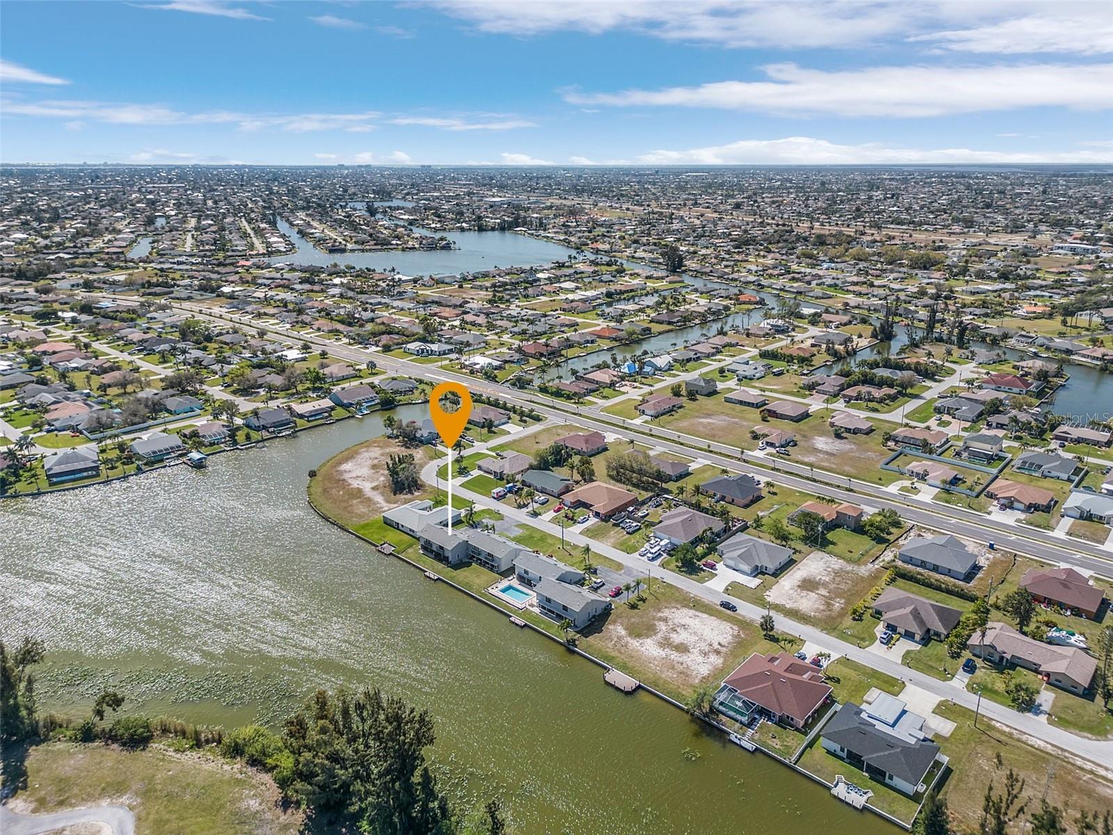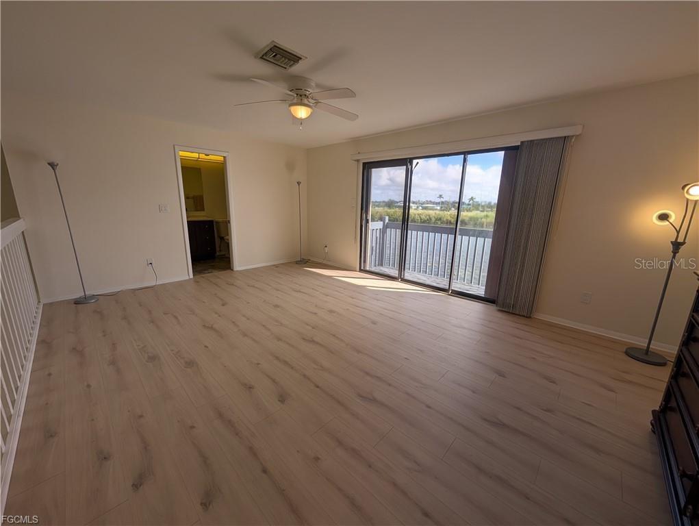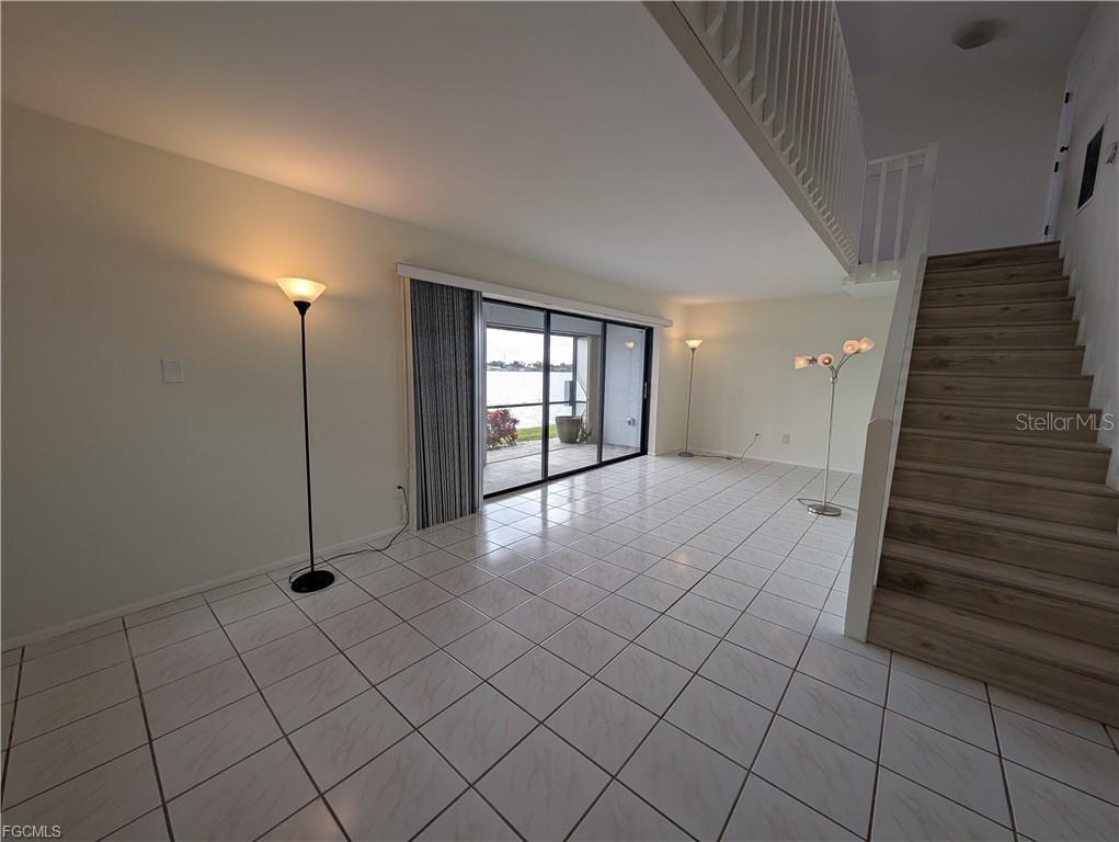 Wake up to peaceful sunrise views over Lake Kennedy in this beautifully updated two-story condo located in the heart of SW Cape Coral. Tucked into a quiet, non-flood zone neighborhood and just minutes from Sun Splash Family Waterpark and local conveniences, this 2-bedroom, 2-bath home offers the perfect blend of comfort, style, and waterfront living. The main entry opens to a private, fenced courtyard, leading into a freshly painted interior with tile as well as low VOC/Greenguard-certified flooring and a fully renovated kitchen featuring modern finishes and quality appliances. The first floor includes a guest bedroom, full bath, kitchen, dining area, and a spacious great room that opens to a screened lanai overlooking the lake—perfect for morning coffee or evening relaxation. Upstairs, a large loft-style primary bedroom with a full bathroom and private balcony offers versatile space and gorgeous lake views. Recent upgrades include metal accordian hurricane shutters, a high-efficiency A/C system with a new motor and UV light for optimal air quality, and a reliable water heater that ensures consistent performance. Additional enhancements include upgraded electrical outlets and a dedicated fiber internet line for lightning-fast connectivity. Just steps from a large community pool and nestled in a well-maintained neighborhood, this condo is ideal as a year-round home, seasonal retreat, or investment opportunity. Enjoy the best of Cape Coral living with comfort, efficiency, and unbeatable views.