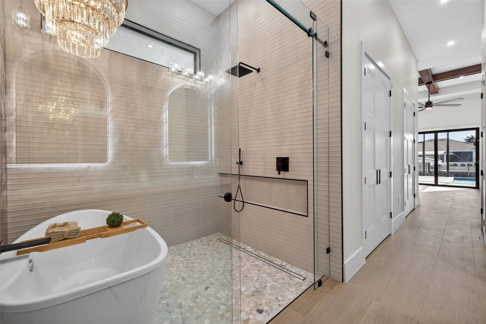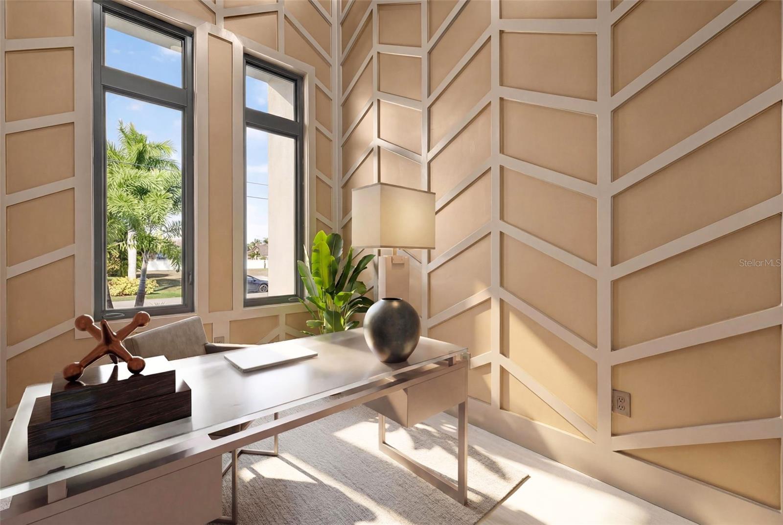 One or more photo(s) has been virtually staged. Welcome to this STUNNING NEW CONSTRUCTION Gulf Access home offering 2,700 sq. ft. of living space, ideally positioned on the 135-ft-wide Durango Canal with desirable SOUTHERN rear exposure and Gulf Access by boat. This exceptional residence features 4 Bedrooms plus a Den, 4 Full Bathrooms, and a Spacious 3-Car Garage that INCLUDES an 8,000lb Car Lift, complemented by a durable TILE Roof and thoughtful high-end finishes throughout. Step inside to an open-concept layout highlighted by soaring 14-ft ceilings in the main living area and minimum 12-ft ceilings in all bedrooms, creating a bright and expansive living environment. Large impact-resistant sliding glass doors fill the home with natural light and seamlessly connect indoor and outdoor living. Porcelain tile flooring runs throughout the home, offering both elegance and durability. The gourmet kitchen is designed for both style and function, featuring quartz countertops, stainless steel appliances, sleek modern contemporary cabinetry, and a large waterfall island with additional seating, ideal for entertaining. The kitchen flows effortlessly into the dining and living areas, all overlooking the pool and wide canal. The primary bedroom features a creative accent wall and serves as a private waterfront retreat with direct lanai access, two oversized walk-in closets with built-in shelving, and a spa-inspired bathroom featuring dual vanities, a soaking tub, and a spacious walk-in shower with designer tile finishes. Outdoor living is elevated with a screened lanai equipped with electric shutters, offering comfort, privacy, and storm protection. A Large Heated Pool (30x14) with a soaking area and Spa equipped with the best pool equipment all controlled through an App. An outdoor grill station with extra seating and an entertainment wall area with a large mounted TV. Boating enthusiasts will appreciate the Gulf-access waterfront location on a wide canal, while the 3-car garage includes an 8,000-lb vehicle lift, perfect for car enthusiasts or additional storage flexibility. No expense spared - - additional highlights include a large circular driveway, higher building elevation, tropical landscaping, city water and sewer with all assessments paid, and a prime location. There’s so much to see, schedule an appointment today! This home is 100% completed and move-in ready.