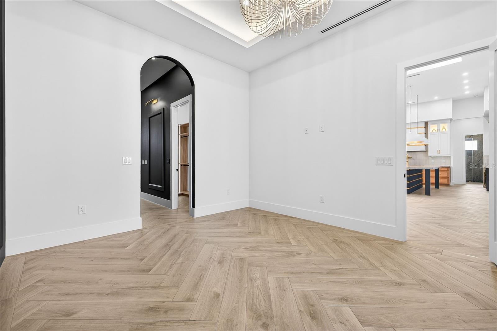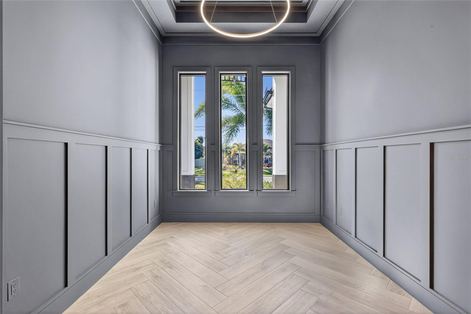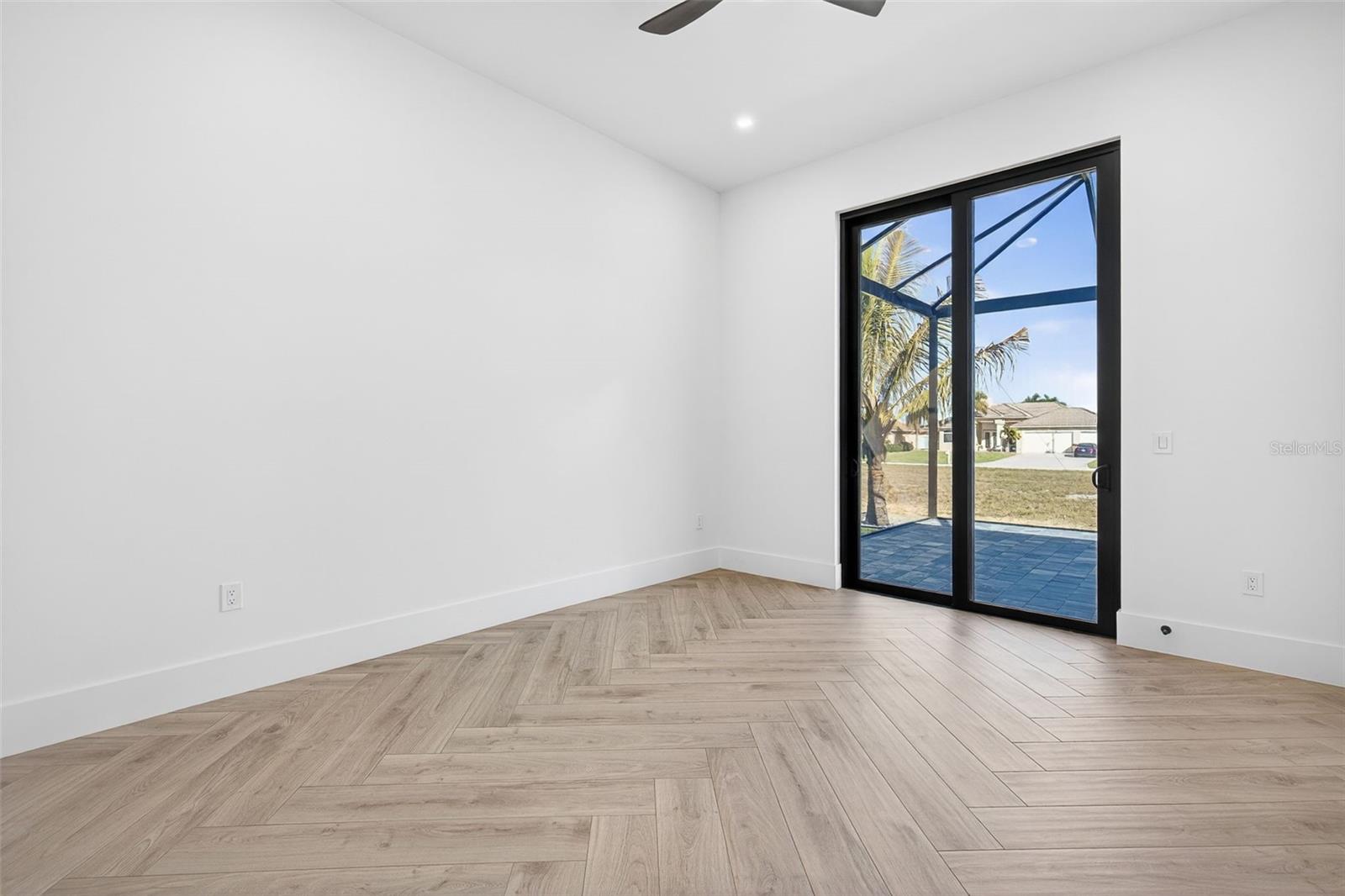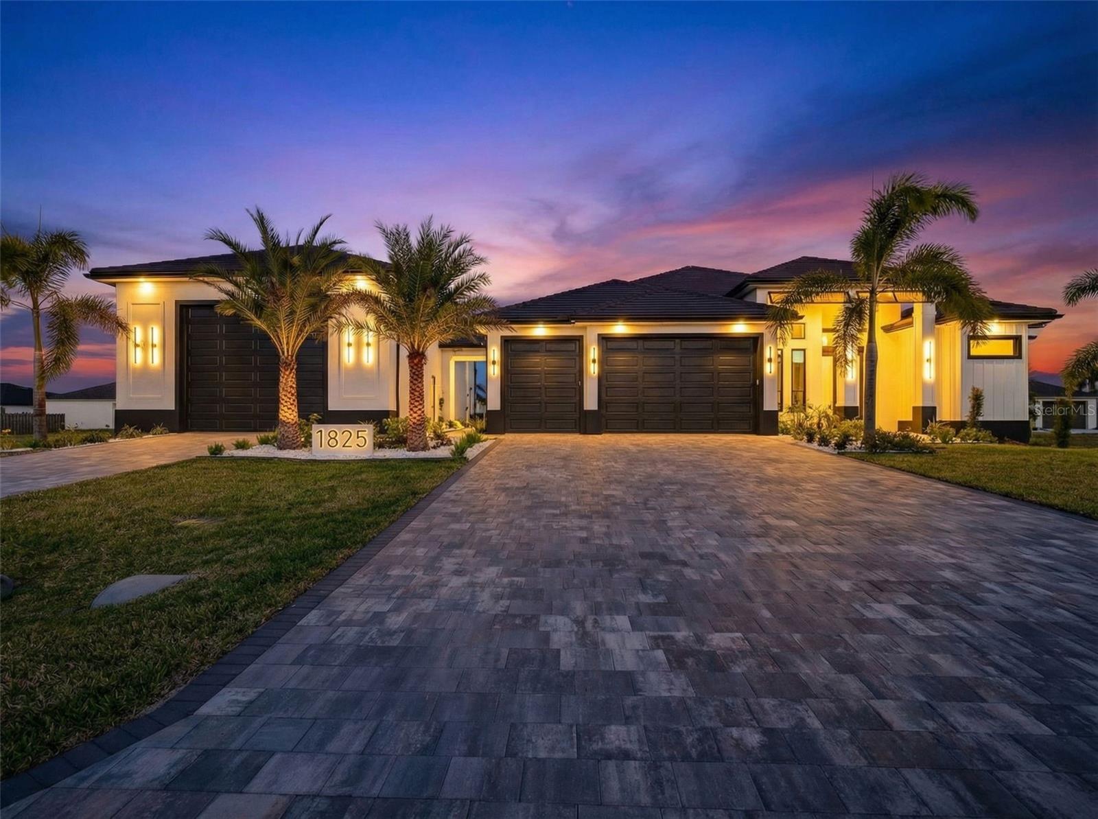 One or more photo(s) has been virtually staged. Located on an oversized lot in a peaceful NW Cape Coral neighborhood, this property offers a rare blend of high-end craftsmanship and functional design. Built with the quality of a custom home and including a home warranty, the 2,485-square-foot main residence features a true chef’s kitchen with a 10-foot island, quality appliances, a large pantry, and a dedicated coffee station. Thoughtful details are found throughout, including a cozy fireplace, custom wainscoting in both the office and primary suite, and custom lighting like in the bathroom ceiling and the primary closet. The layout also features an extra-large mudroom and laundry room with additional cabinetry and a custom bench. With three bedrooms plus the dedicated office, the floor plan easily accommodates a busy family while maintaining a sense of privacy. But that is not all! The standout feature of this property is the 2,100-square-foot detached building. Measuring 60' x 40' x 17' and fully air-conditioned, this space is a dream for anyone with an RV, boat, or car collection. Beyond storage, the building is equipped with a full kitchen, a full bath, and a versatile loft, making it an ideal in-law suite, high-end man cave, home workshop, gym—or a blend of all the above! Outside, the backyard serves as a private retreat with a saltwater pool and spa with plenty of room to sunbathe. Whether you need space for recreational toys or a dedicated guest house, this property provides the flexibility and quality finishes rarely found in one package. The new owner will enjoy the added security of a hurricane impact home and the protection of an included home warranty.