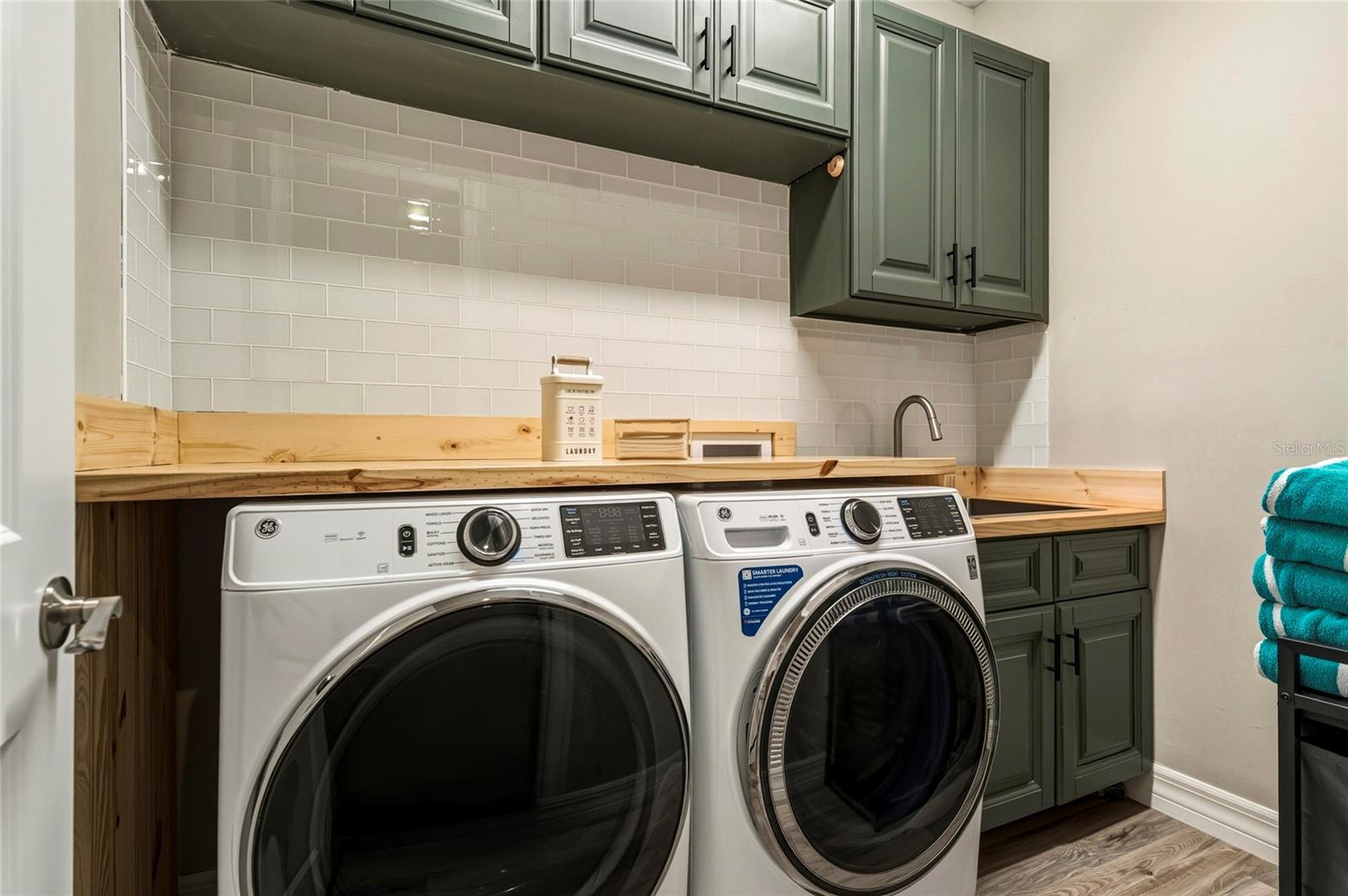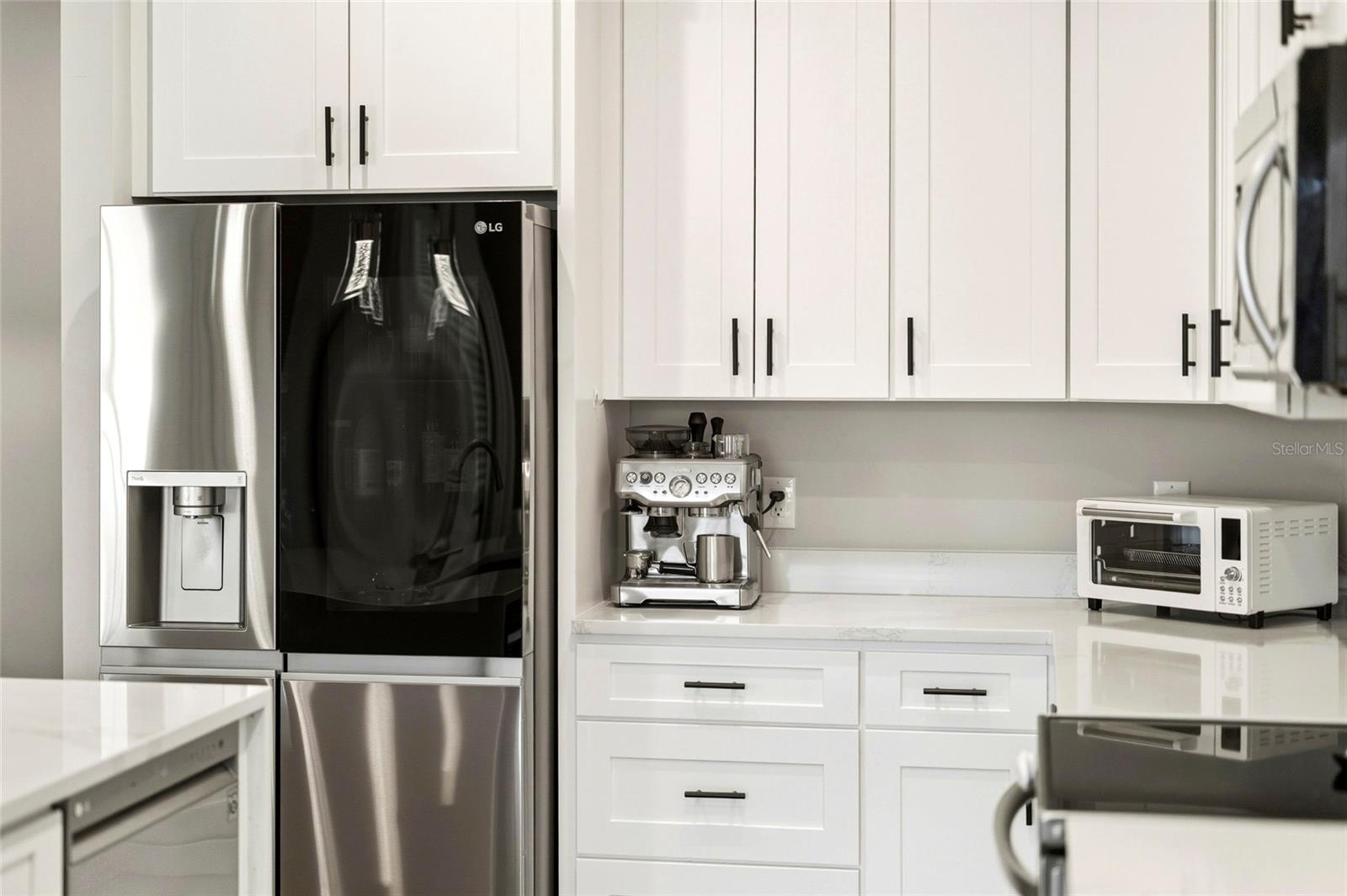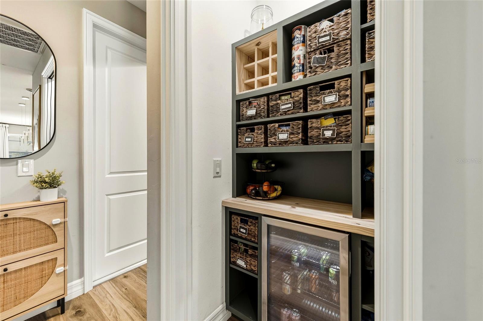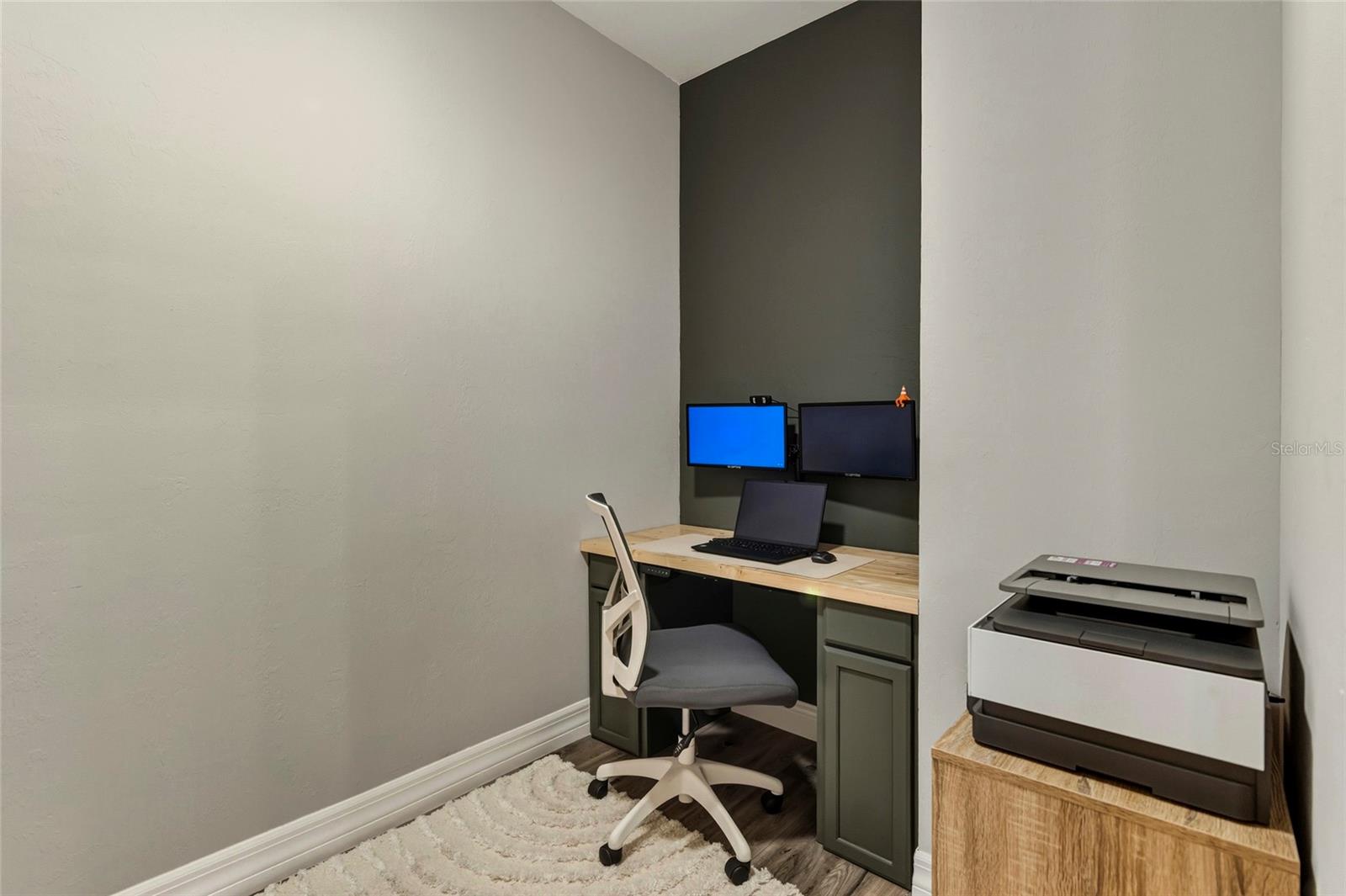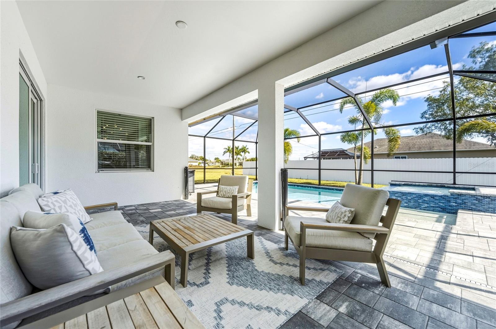 Built in 2022, this custom 3 bedroom plus den, 2 bathroom home offers modern finishes and upgraded outdoor living. The heated saltwater pool, spa, and sunshelf were added in 2023 and can be controlled remotely from your phone. The outdoor area features a screened lanai, partial privacy fencing, a sprinkler system, and a spacious yard with plenty of usable space. The kitchen includes quartz countertops, stainless steel appliances, soft close cabinets, upgraded lighting and fixtures, a waterfall edge island, and a large pantry with custom cabinetry and a built in mini fridge. The refrigerator is connected to a reverse osmosis water system. The den includes an adjustable height, built in desk and provides flexible space for a home office or bonus room. Interior highlights include volume and tray ceilings, 8 foot sliders and interior doors, and abundant recessed lighting throughout. The primary suite features dual sinks and a walk in shower. Impact windows and impact doors provide added protection, and a generator hookup is already installed. Exterior features include a pavered driveway and strong curb appeal. Conveniently located near shopping, dining, and daily amenities. Schedule your private tour today.