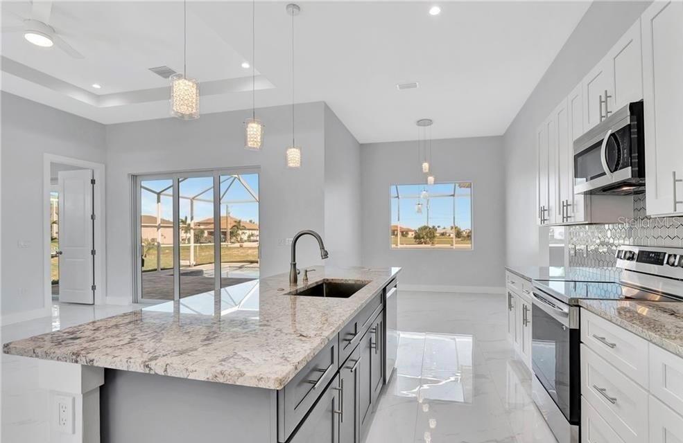 JUST REDUCED! Resort-Style Living in NW Cape Coral’s Hottest Growth Corridor ! Step into paradise with this beautifully crafted Lago Model pool home, nestled in the highly desirable Northwest Cape Coral—where breathtaking sunsets paint the sky and future development like the 7 Islands Project and Crystal Lake promise even more lifestyle perks. This move-in ready gem boasts quality construction and upscale finishes throughout, including soaring ceilings, elegant 8-foot doors, 6-inch baseboards, and PGT impact-rated windows and doors for peace of mind. The open-concept layout flows effortlessly across textured walls and tile flooring, anchored by a chef’s kitchen with granite countertops, wood cabinetry, and stainless steel appliances. The spacious primary suite offers dual walk-in closets, double vanities, and a spa-like shower—your personal retreat after a day on the water. Outside, unwind in your screened saltwater pool oasis, surrounded by lush landscaping and a full irrigation system. Whether you're hosting friends or enjoying a quiet sunset swim, this home delivers the resort lifestyle you’ve been dreaming of. Additional highlights include: Epoxied garage floor & generator plug ready, Washer & dryer included, 2-car garage, and Impact windows & doors. Cape Coral is one of Florida’s fastest-growing cities, known as the City of Canals—with endless boating, fishing, and beach-hopping adventures just minutes away. Fall in love. Make this house your home. Schedule your private showing today and experience the tropical lifestyle that only Southwest Florida can offer. Seller has incentives at 4.85% interest for buyers with local lender!
