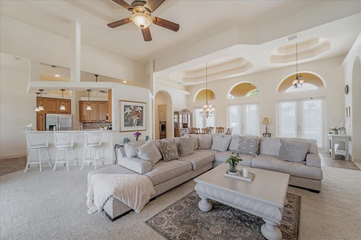 You will find your own piece of paradise in this upscale, sophisticated home! Most impressive is the inviting great room with 18’ double tray ceilings trimmed in crown molding, lighted built-ins for your collectibles, and adjacent dining area with two sets of impact French doors that open to the veranda! The well-equipped, stunning kitchen offers solid wood cabinetry with pullouts, Kenmore Elite appliances, and dining area that overlooks the pool and lanai. You will fall in love with the marvelous master retreat and extra sitting room that could be used as an exercise area or den. The alluring master bath is quite luxurious with an open walk-thru shower, jetted tub, separate water closet and full-wall vanity with double sinks. After a long hot day, take a dip in your free-form pool or get on your boat that is waiting for you on your own 10,000 lb. boat lift and head out for a cruise on the gulf! LOOKING TO LIVE IN A FABULOUS LOCATION IN A BEAUTIFUL HOME? LOOK NO FURTHER!
