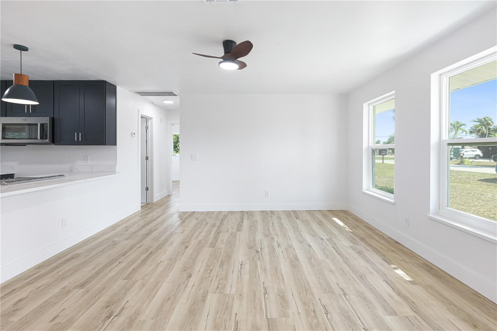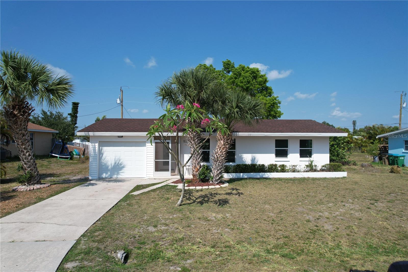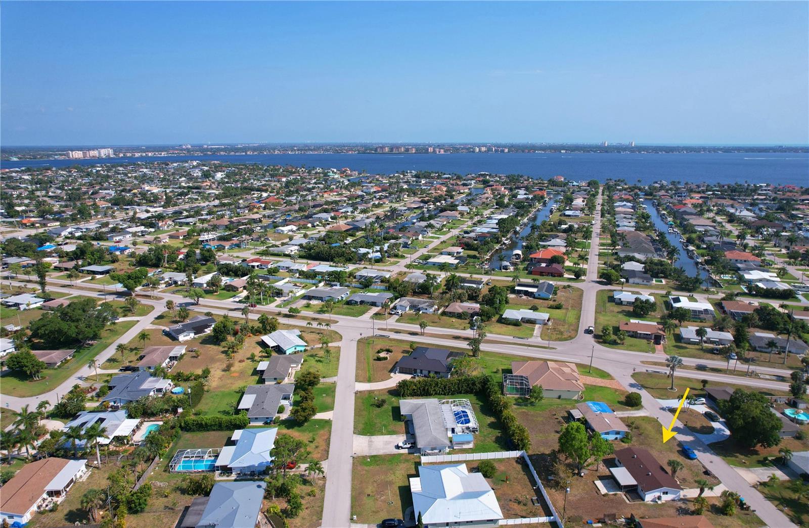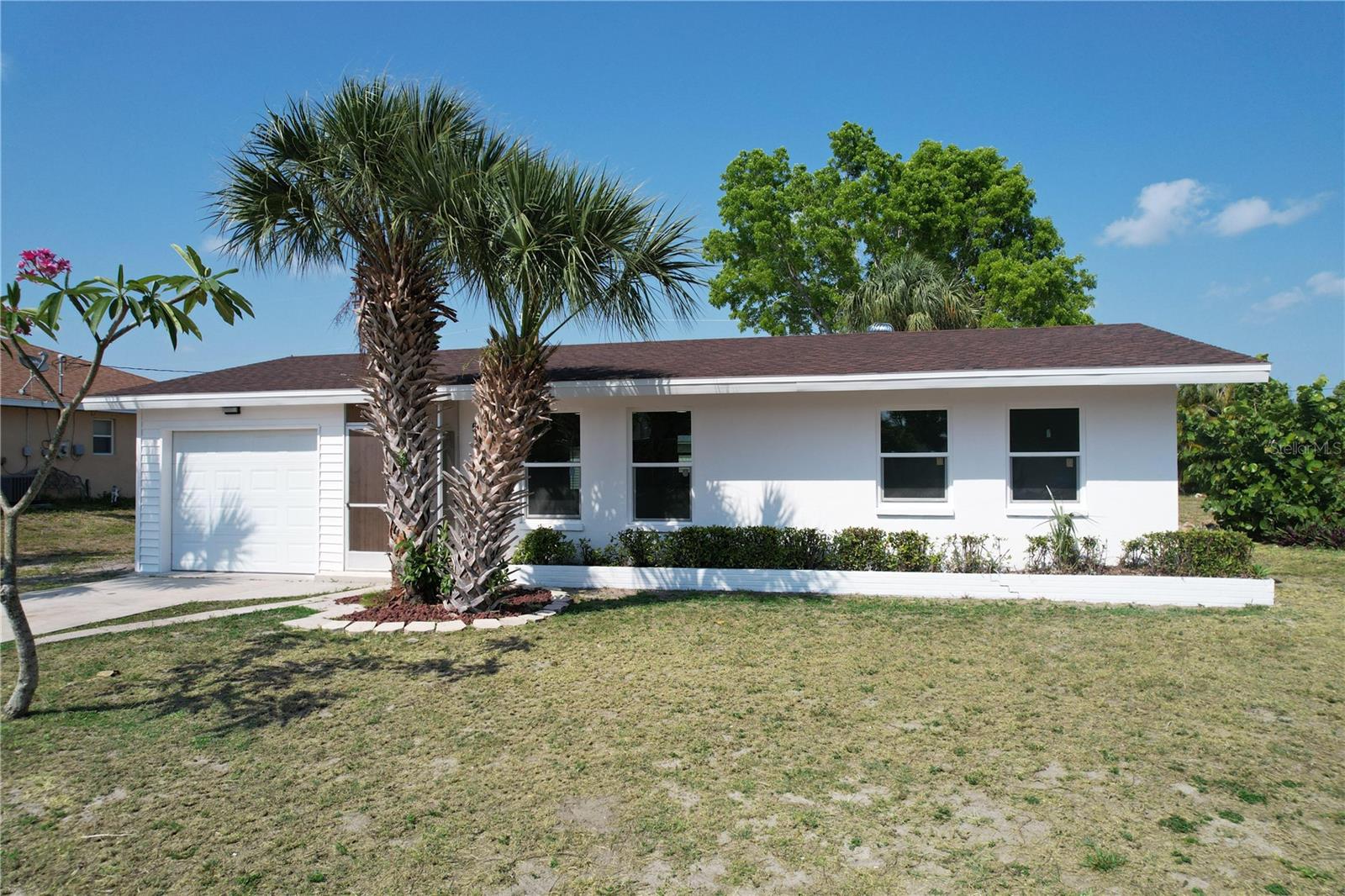 Don't miss the opportunity to own this completely renovated 2-bedroom, 1-bathroom concrete block home in one of the most sought-after neighborhoods in South Cape. Located just 2 miles from the Cape Coral bridge and a stone's throw away from the redesigned and soon-to-be-rebuilt Cape Coral Yacht Club, this home offers convenience and leisure. A short stroll away is downtown Cape Coral, where you'll find craft bars, wine rooms, and exquisite dining options. The property boasts a 2024 brand-new roof, fresh interior and exterior paint, a 2024 HVAC system, and Impact windows and doors for added security and energy efficiency. Inside, you'll find all-new luxury vinyl plank flooring, complemented by a fully remodeled kitchen featuring stainless steel appliances, solid wood cabinets with quartz countertops, and a spacious breakfast bar. The completely renovated bathroom features a tub & shower combo, LED touch sensor frameless mirror, and floating vanity. Additional features include a cedar plank accent entry wall and ceiling on the lanai, a one-car garage with extra storage, and in-residence laundry. Whether you're looking for the perfect starter home or a rental property investment, this home has it all! Situated on a spacious lot, there's plenty of outdoor space for relaxation and entertainment, with the option to add a pool in the future. Don't wait! Schedule your showing appointment today and make this your dream home.