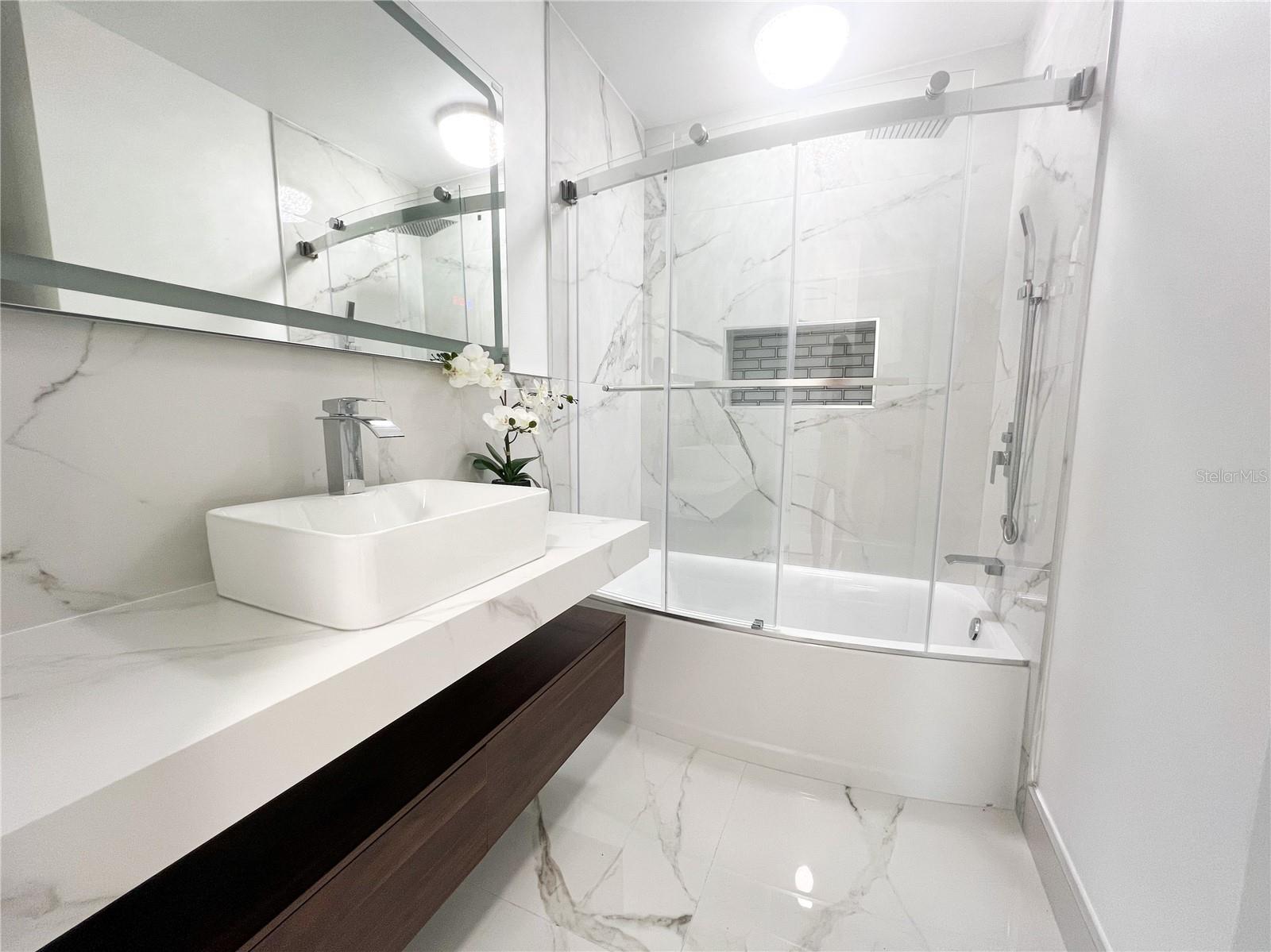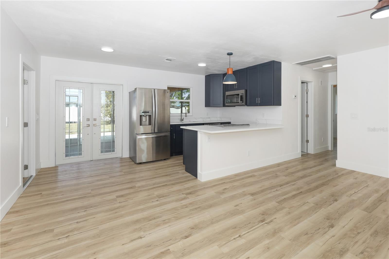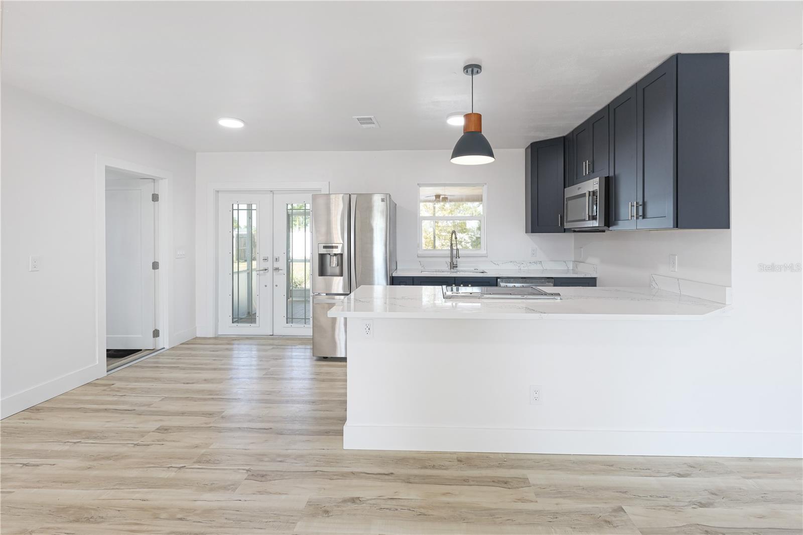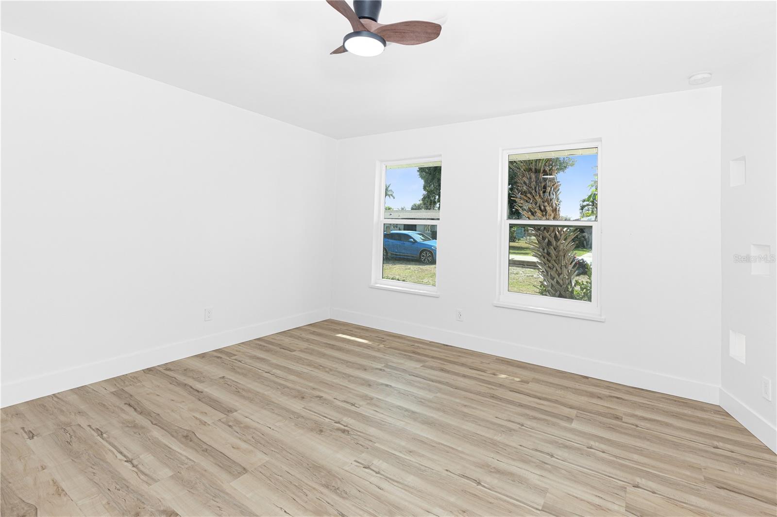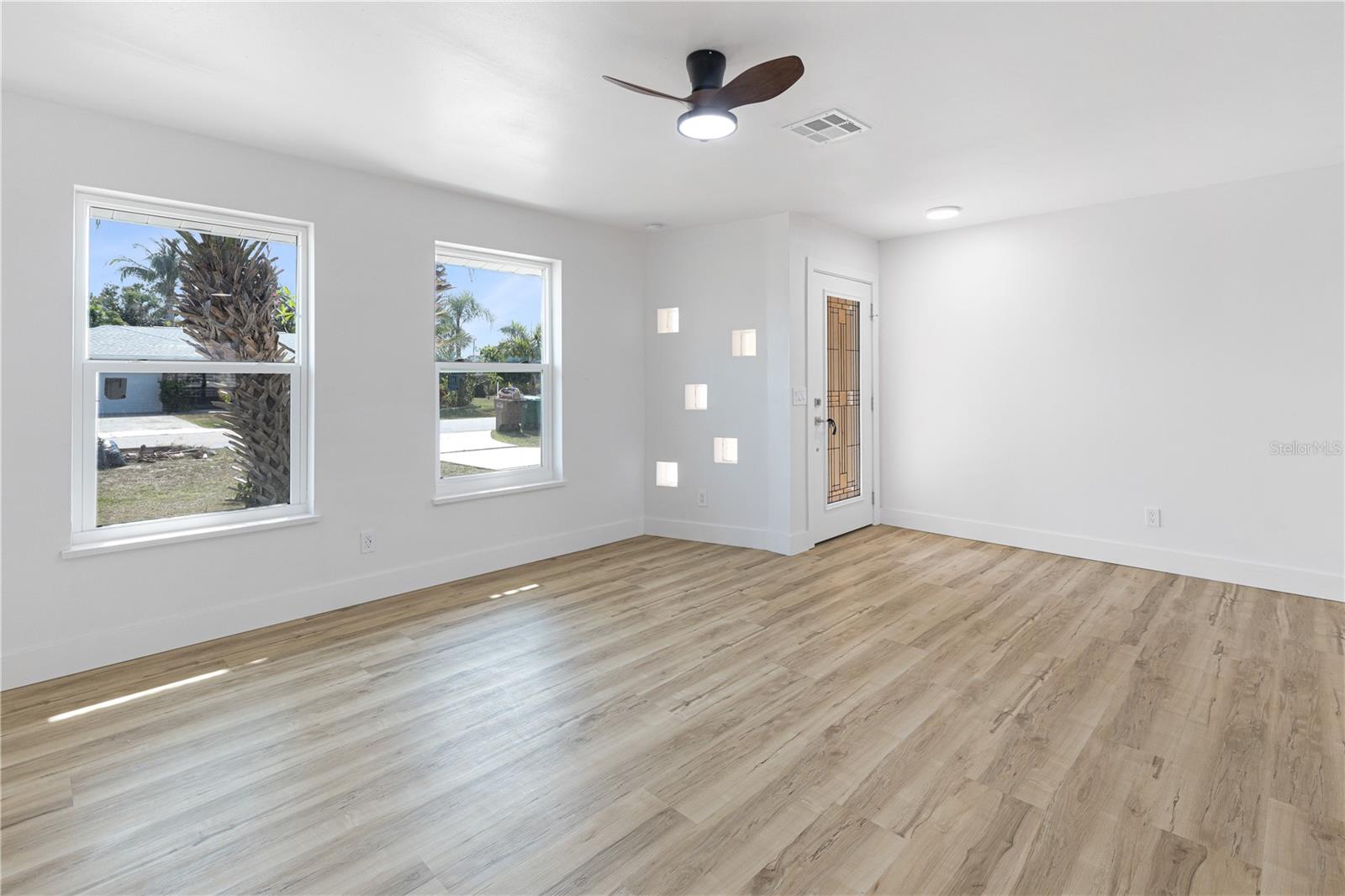 Don't miss the opportunity to own this completely renovated 2-bedroom, 1-bathroom concrete block home in one of the most sought-after neighborhoods in South Cape. Located just 2 miles from the Cape Coral bridge and a stone's throw away from the redesigned and soon-to-be-rebuilt Cape Coral Yacht Club, this home offers convenience and leisure. A short stroll away is downtown Cape Coral, where you'll find craft bars, wine rooms, and exquisite dining options. The property boasts a 2024 brand-new roof, fresh interior and exterior paint, a 2024 HVAC system, and Impact windows and doors for added security and energy efficiency. Inside, you'll find all-new luxury vinyl plank flooring, complemented by a fully remodeled kitchen featuring stainless steel appliances, solid wood cabinets with quartz countertops, and a spacious breakfast bar. The completely renovated bathroom features a tub & shower combo, LED touch sensor frameless mirror, and floating vanity. Additional features include a cedar plank accent entry wall and ceiling on the lanai, a one-car garage with extra storage, and in-residence laundry. Whether you're looking for the perfect starter home or a rental property investment, this home has it all! Situated on a spacious lot, there's plenty of outdoor space for relaxation and entertainment, with the option to add a pool in the future. Don't wait! Schedule your showing appointment today and make this your dream home.