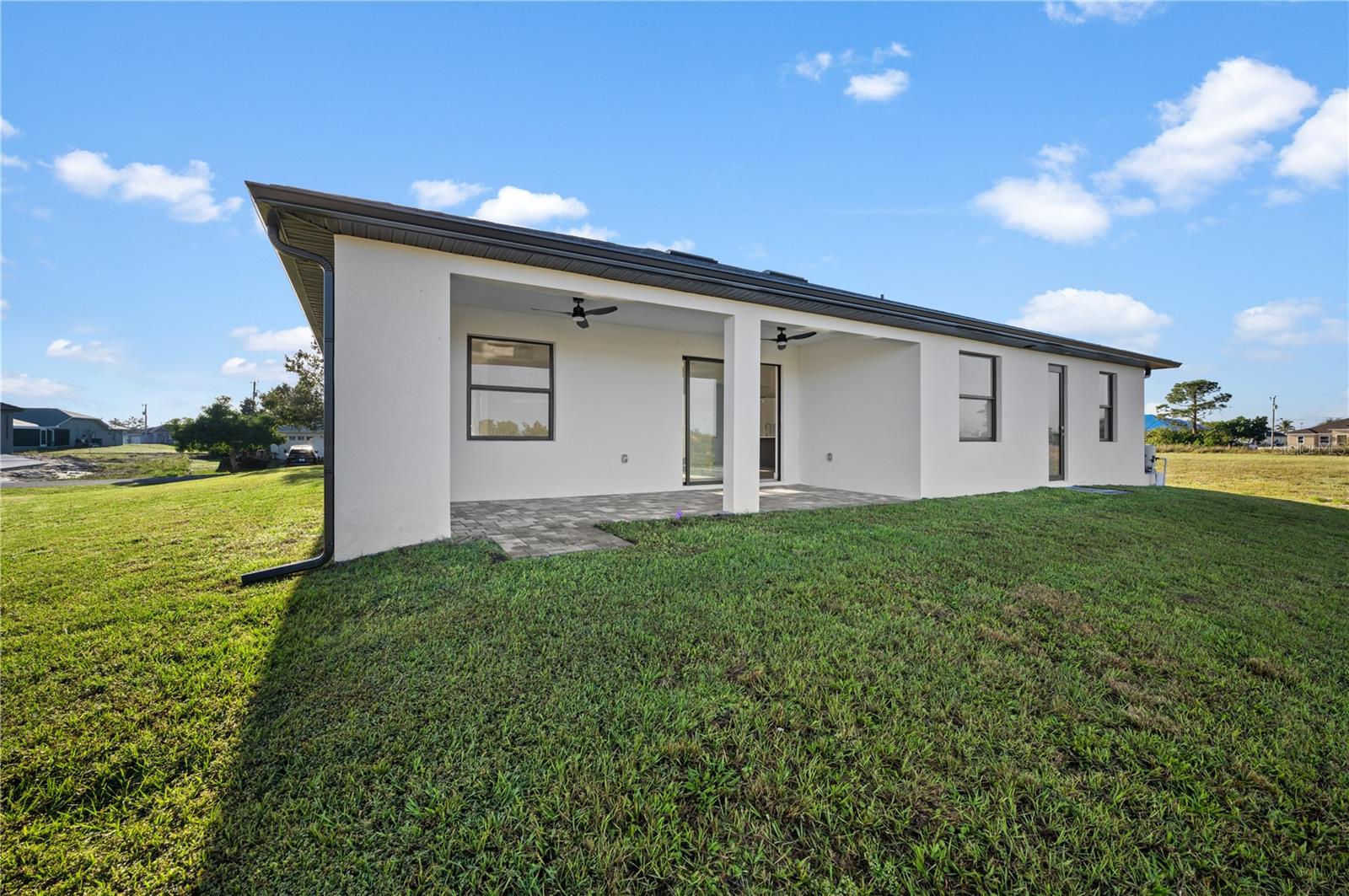 Under Construction. Introducing the "Ella" model, a brand-new construction in Cape Coral, Florida, perfectly situated on a tranquil location backing a canal. This modern beauty offers 3 bedrooms, 2 bathrooms, plus a flexible room. The master bedroom boasts his and hers walk-in closets (All bedrooms feature spacious walk-in closets). The master bathroom exudes luxury with a shower and tub. The open format design features high ceilings and large format tile throughout, creating a spacious and elegant atmosphere. An additional cabana bathroom adds convenience for guests and outdoor entertaining. Step onto the lanai, complete with a wet bar, ideal for hosting gatherings or savoring the Florida weather. The open kitchen is a chef's dream, with modern finishes and top-notch appliances. Park your vehicles in the 2-car garage with epoxy floors. This home showcases contemporary design, modern finishes, and a well-thought-out layout, offering the perfect canvas for your Cape Coral lifestyle. **These pictures are of model home**