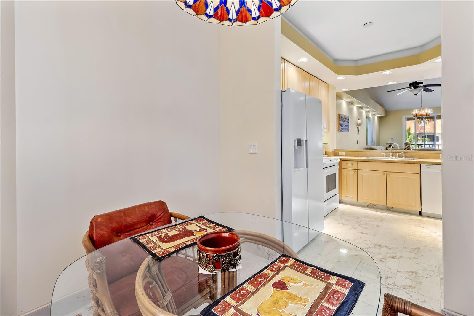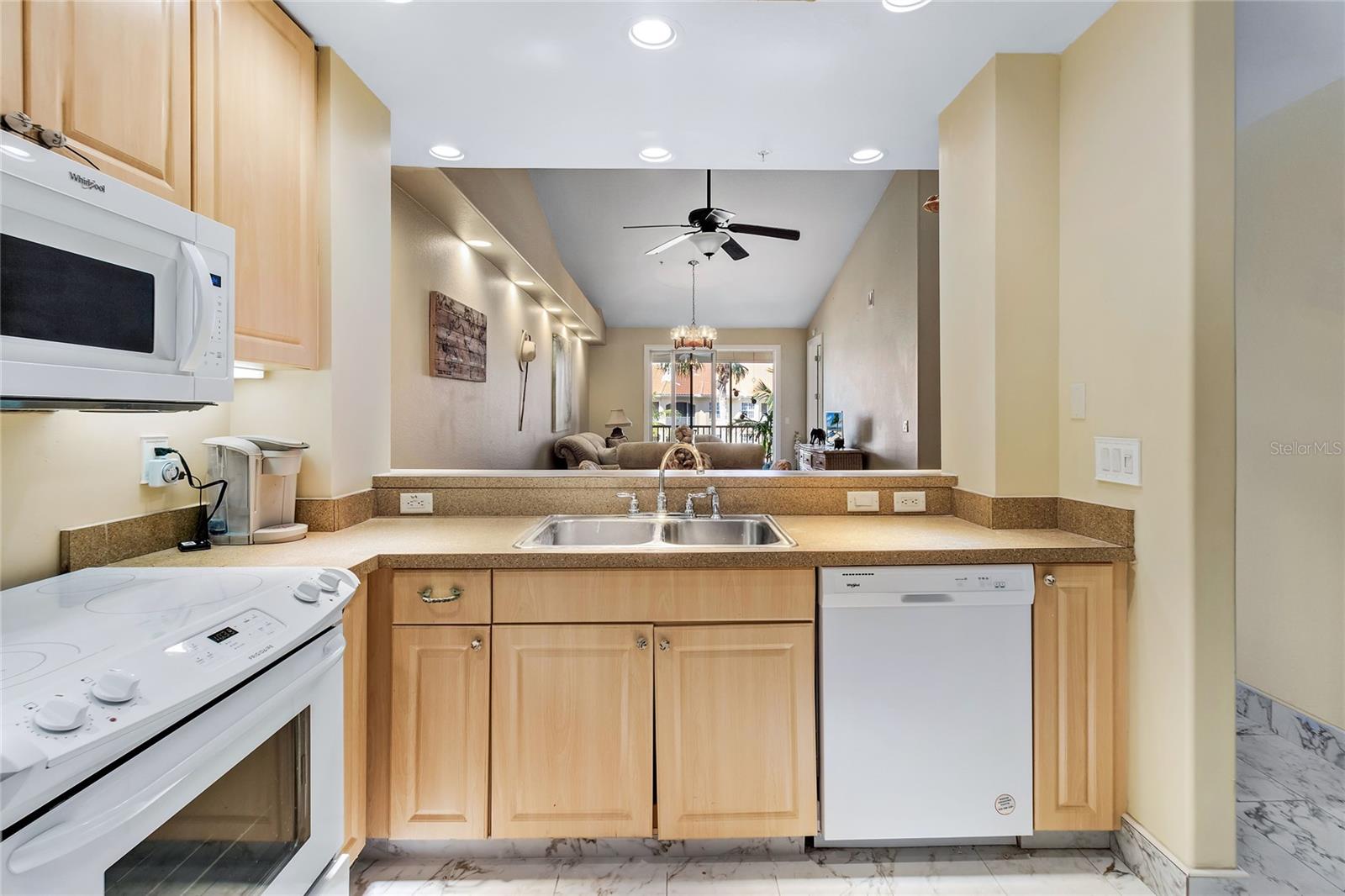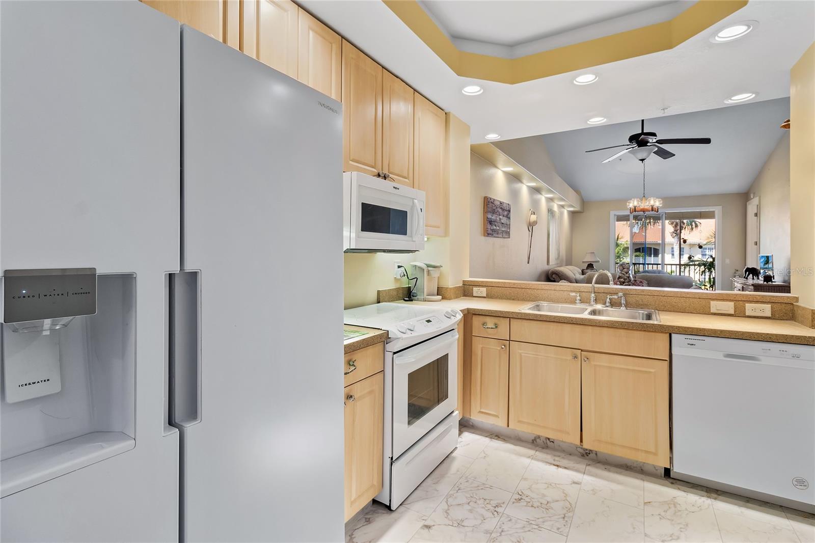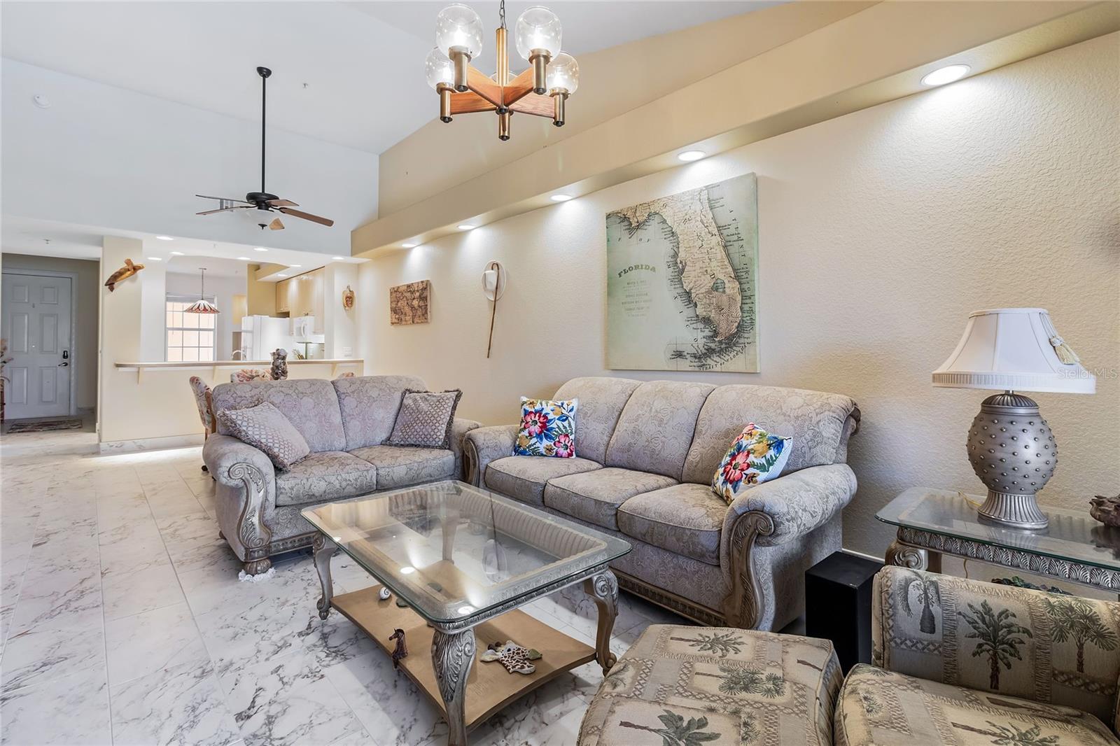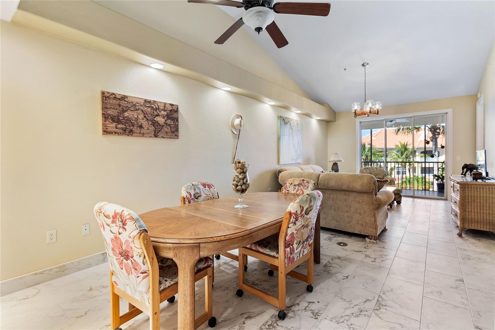 Absolutely stunning 2-bedroom, 2-bathroom condo, now with an additional den that's been beautifully renovated, making its debut on the market. Perched on the top floor and benefiting from impressive vaulted ceilings, this gem is ideally positioned just steps from the elevator, marrying accessibility with sheer luxury. This unit reveals a superb layout featuring a spacious great room that flows into a well-appointed open kitchen. A cozy breakfast nook and breakfast bar/pass-through invite mornings filled with warmth, while natural light floods the charming screened lanai through its beautiful tile flooring. What sets this condo apart is its GRAND view overlooking the resort-style pool, offering a breathtaking backdrop that elevates every moment spent on the lanai. Attention to detail is evident throughout, with upgrades including brand-new tile floors, state-of-the-art appliances, and a fresh coat of paint, ensuring this home is the epitome of move-in readiness. The additional den, outfitted with a built-in closet, provides flexible space for a media room or home office, and can easily be transformed into a third bedroom to suit your evolving needs. Located within the cozy and meticulously maintained gated development of Van Loon Commons in Cape Coral, this condo offers more than just a place to live—it offers a lifestyle. Residents enjoy access to an array of amenities, including a large clubhouse, picturesque walking trails, a refreshing pool, a relaxing spa, a fitness room, covered parking, and extra storage. Situated near Hancock Bridge Parkway and Pine Island Rd, the convenience of this location is unparalleled, offering effortless access to all amenities. Discover the hidden gem of Cape Coral and step into a life of unmatched comfort, convenience, and beauty, all highlighted by a grand view of the resort-style pool in this exceptional top-floor condo.