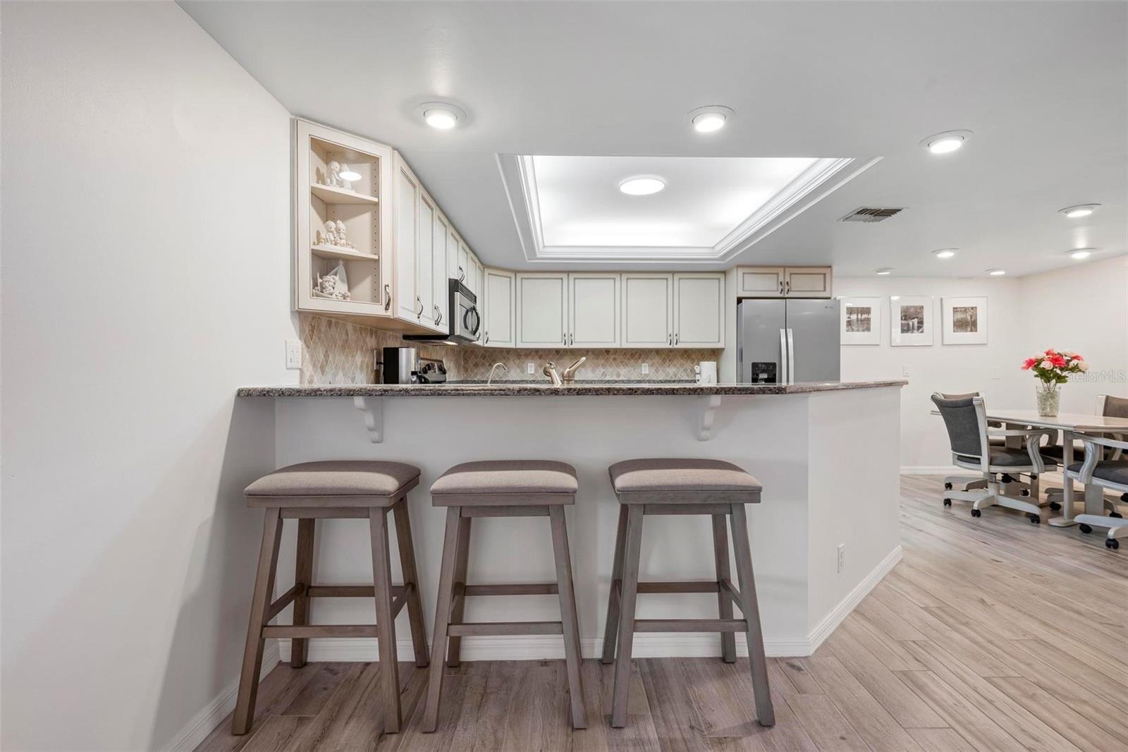 Enjoy your morning coffee watching a stunning sunrise over the River, or maybe a beverage overlooking the pool and canal at sunset! Yes, both Eastern and Western views! In this rarely available River View 1st floor condo this can be your reality! This three-bedroom two bath unit, on a serene Cape Coral canal is ready for you whether it is your permanent residence or your winter getaway! The split floor plan offers privacy-primary en-suite secluded with the other two bedrooms sharing an updated bath! The kitchen, with both a dinette area and breakfast bar, is bright and functional for entertaining. The open living and dining rooms blend indoor-outdoor vibes with canal and pool views from every angle. Step into your spacious screened lanai, with electric hurricane shutters, and walk directly out to the pool. Best access and view in the complex! This unit comes with an in-unit laundry closet, a one car garage with utility side entry as well as a deeded 10,000 lb. boat lift. The electronic lift sits in the 12Wx30L dock and has both water and electric. No bridges so you have direct access to the River and can take the intracoastal South to the Gulf of Mexico or North to N. Ft. Myers! This six-unit complex is well cared for and well managed. Located at the end of Beach Parkway, there is no thru traffic and sidewalks are available for walking or biking. Amazing proximity to the new Jaycee Park which will include a Riverwalk as well as numerous activities for both children and adults. Located near shopping, specialty stores and restaurants, all you will need is within a short distance! Why wait, make this yours today!