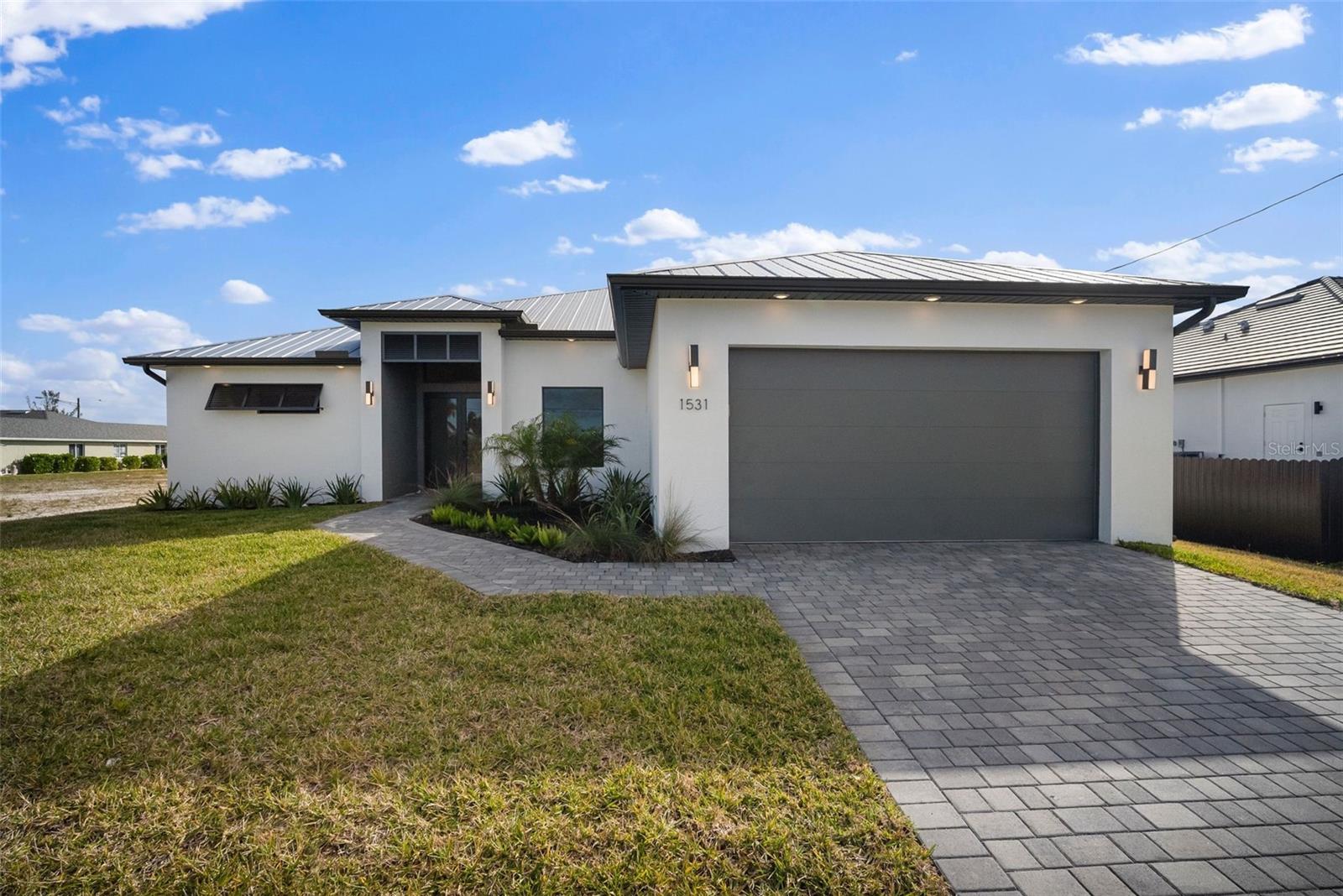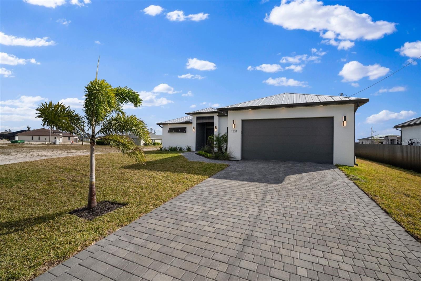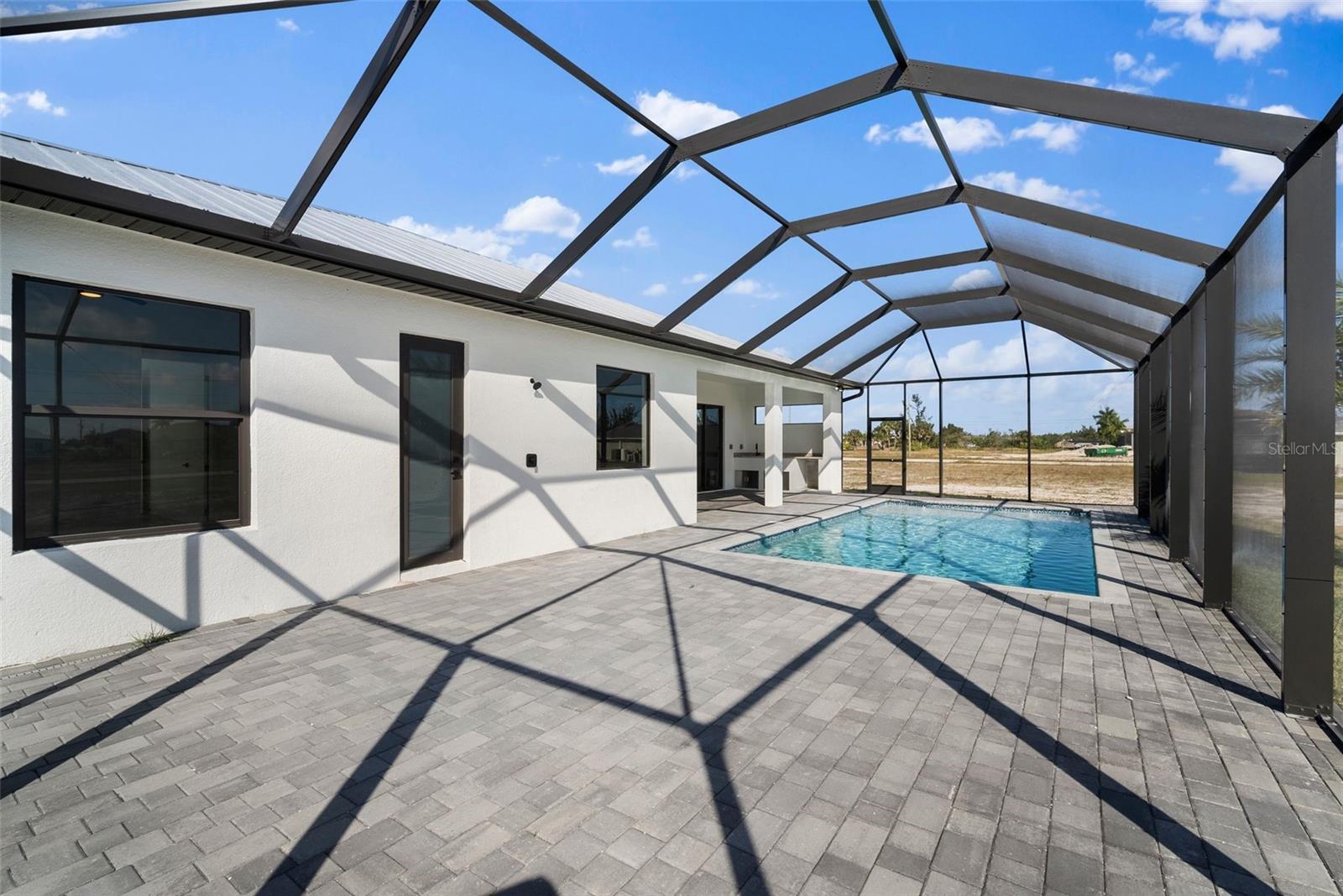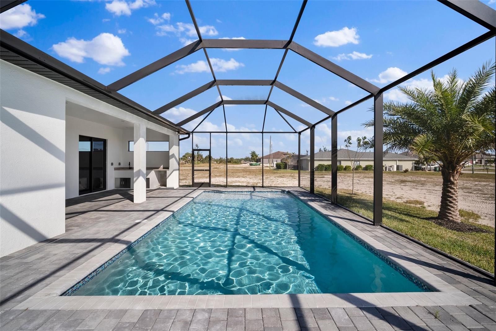 High quality and stylish new home, 4 Bedrooms: 3 Bathrooms with Garage-covered spaces for 2 cars. This stunning residence offers a harmonious blend of luxury, comfort, and Florida living, with an abundance of natural light and elegant details. This home is fully equipped with Smart home technology and boasts unique upgrades, appliances with a TV screen refrigerator, reverse osmosis system throughout the house, metal roof, hurricane impact windows, spacious walk-in closets, huge screened patio, outdoor shower, summer kitchen, and a saltwater pool with fountain and ledge lounger.