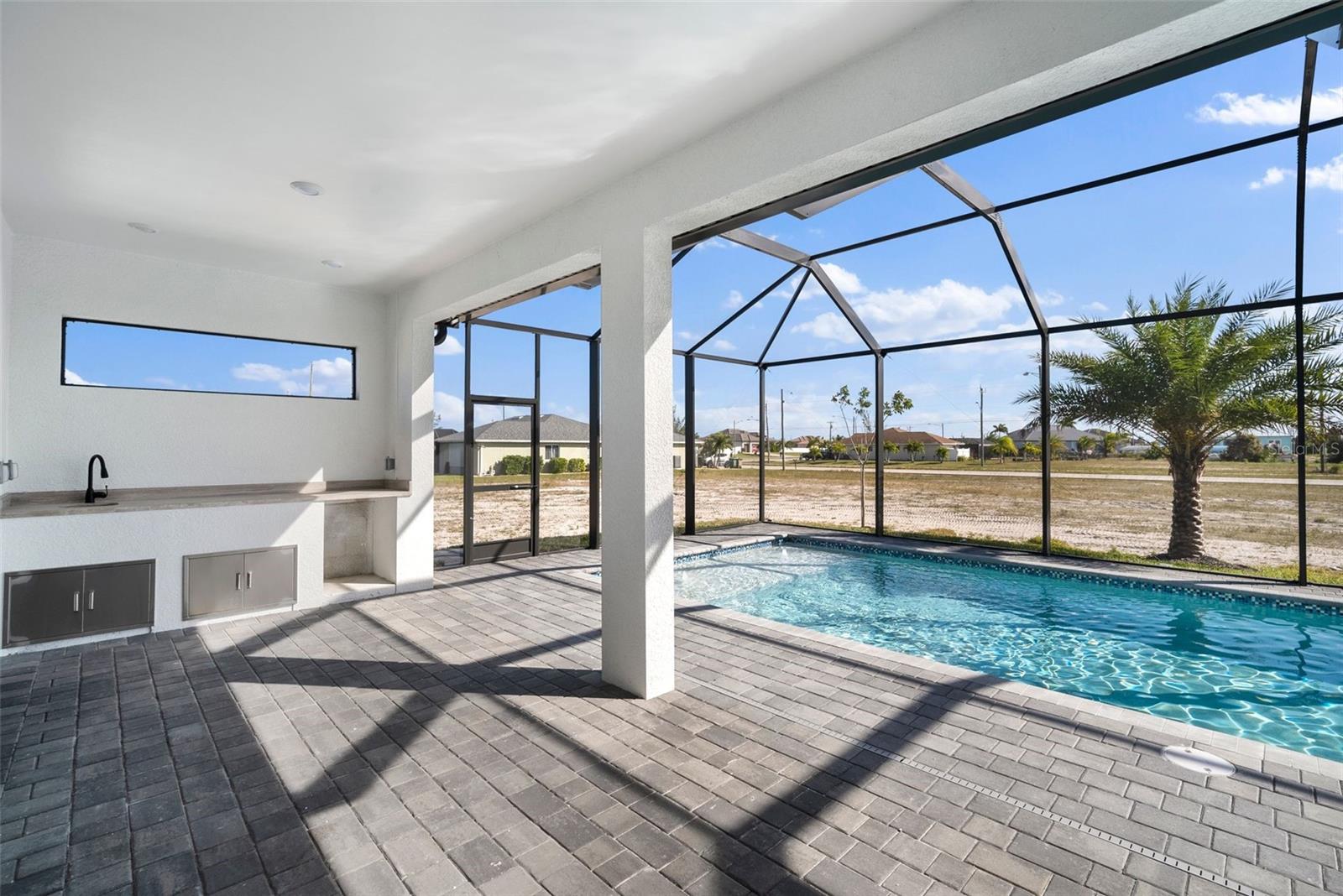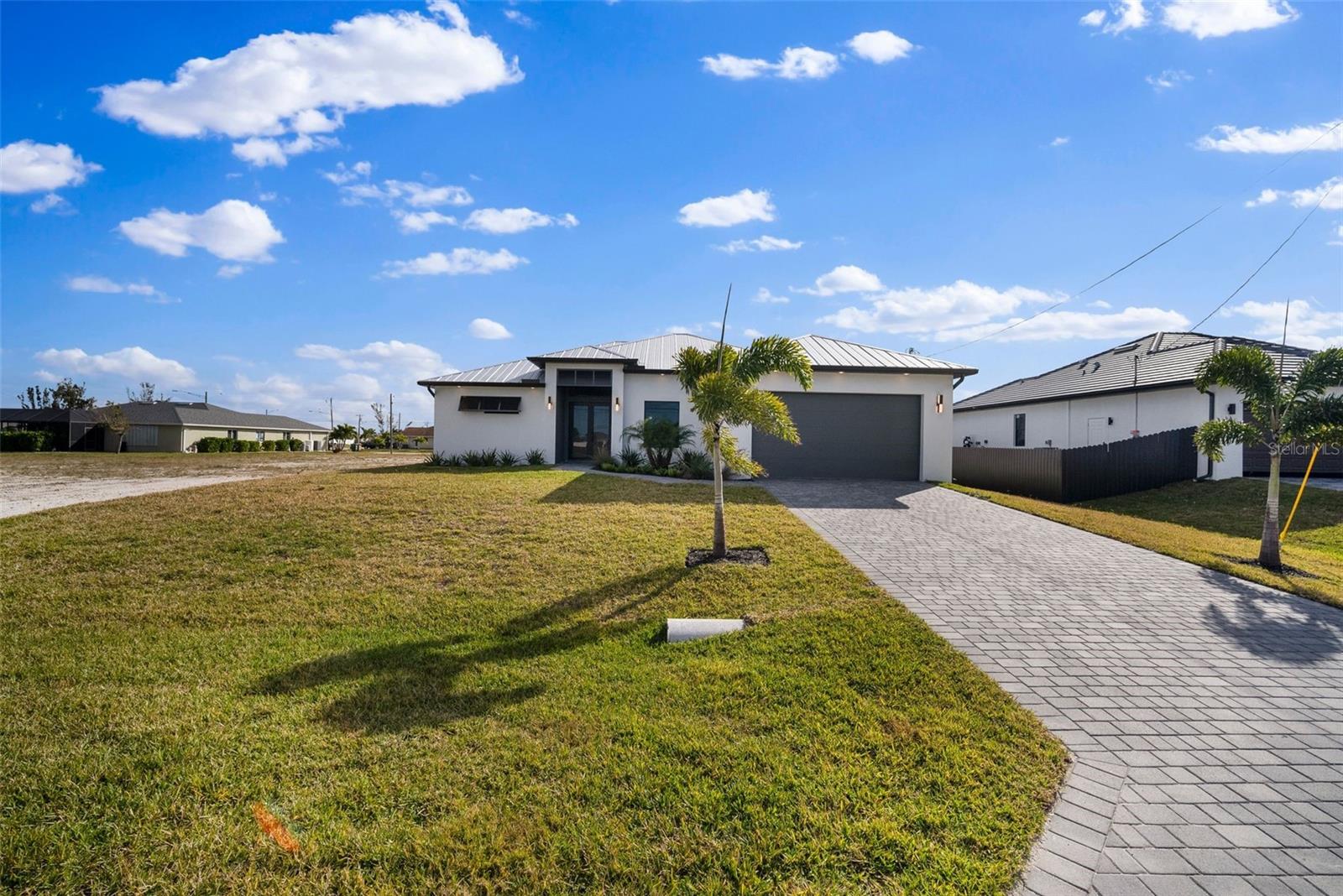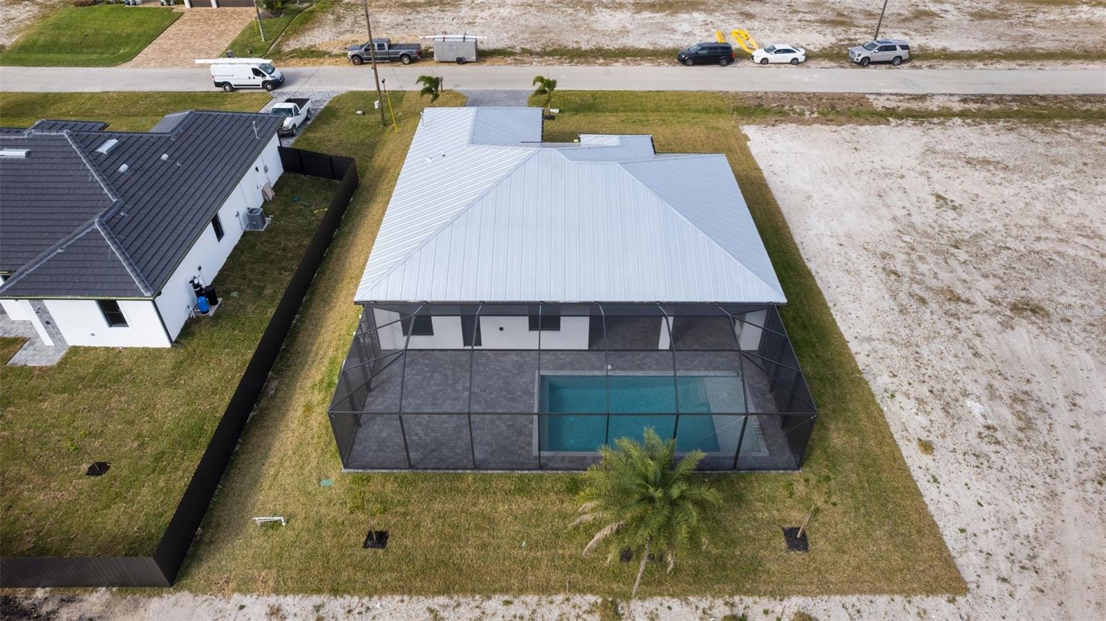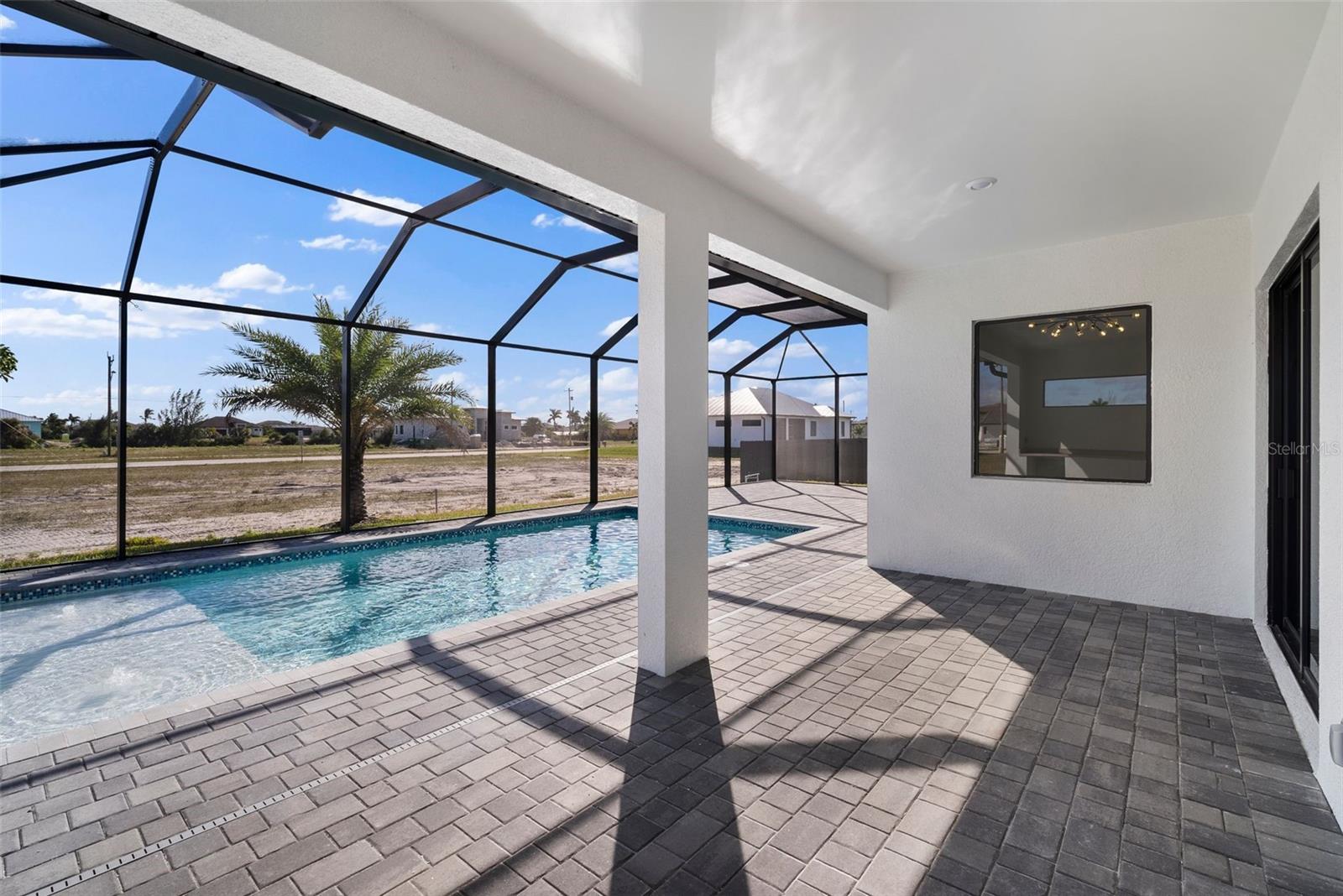 High quality and stylish new home, 4 Bedrooms: 3 Bathrooms with Garage-covered spaces for 2 cars. This stunning residence offers a harmonious blend of luxury, comfort, and Florida living, with an abundance of natural light and elegant details. This home is fully equipped with Smart home technology and boasts unique upgrades, appliances with a TV screen refrigerator, reverse osmosis system throughout the house, metal roof, hurricane impact windows, spacious walk-in closets, huge screened patio, outdoor shower, summer kitchen, and a saltwater pool with fountain and ledge lounger.