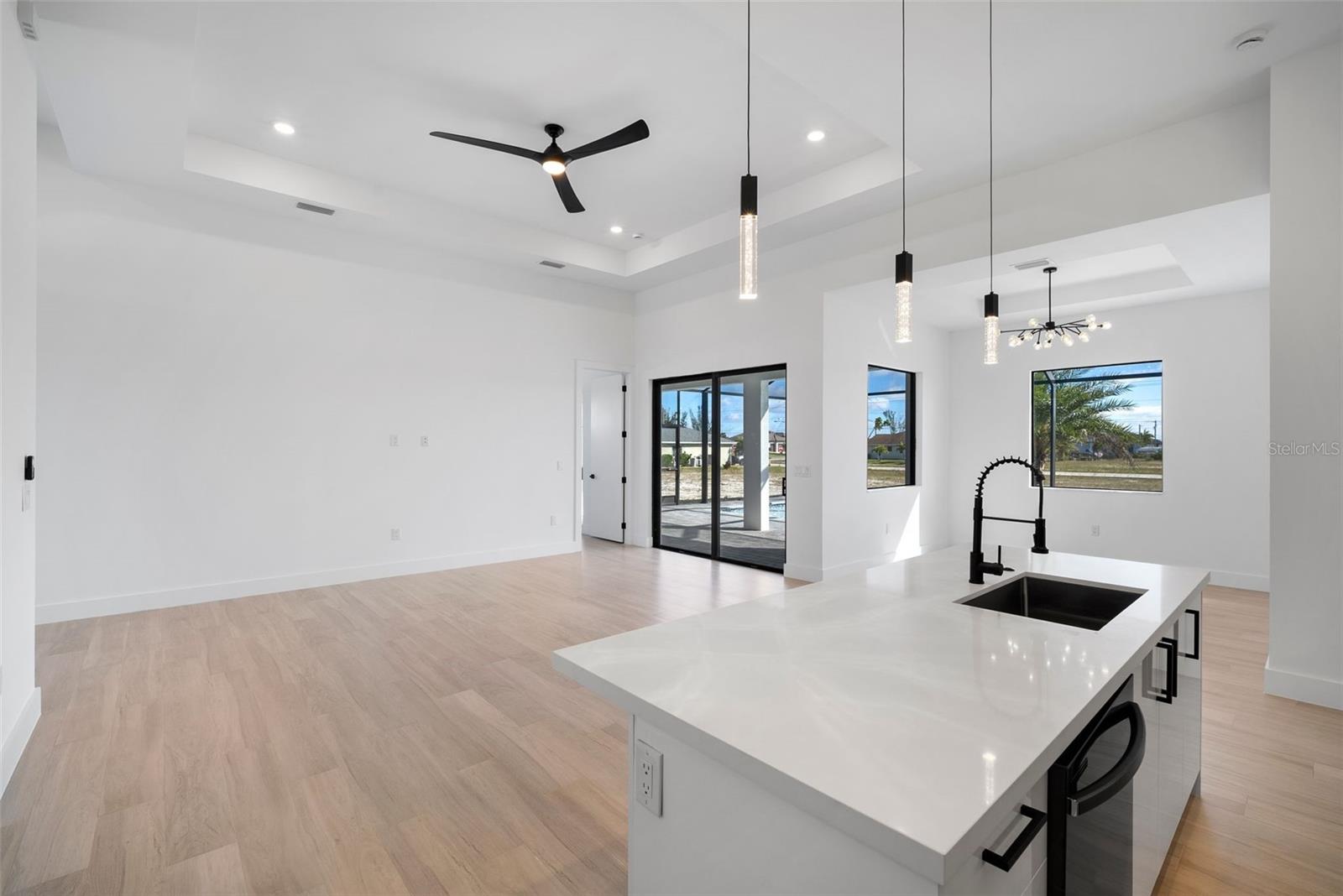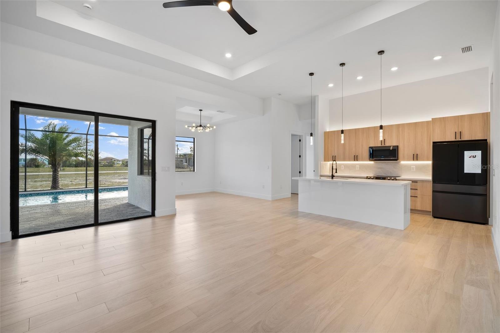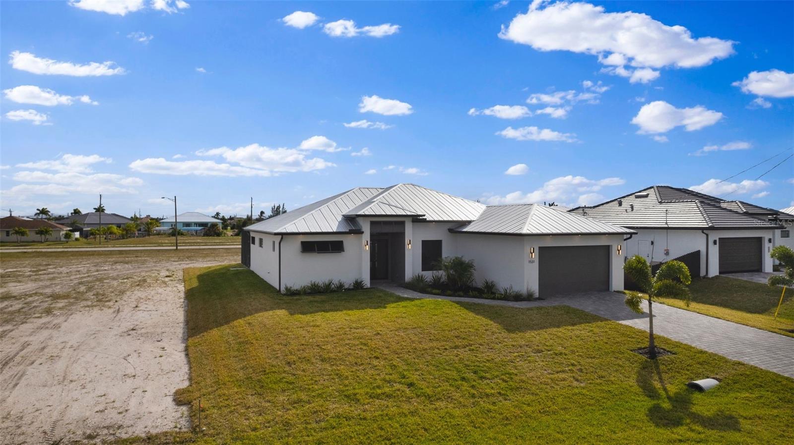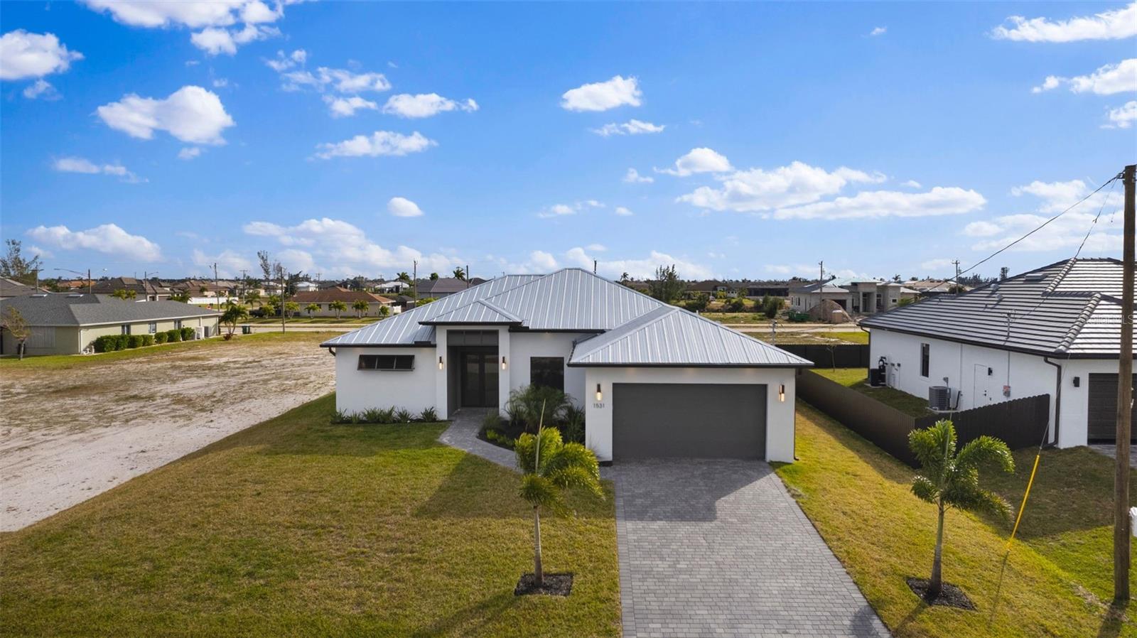 High quality and stylish new home, 4 Bedrooms: 3 Bathrooms with Garage-covered spaces for 2 cars. This stunning residence offers a harmonious blend of luxury, comfort, and Florida living, with an abundance of natural light and elegant details. This home is fully equipped with Smart home technology and boasts unique upgrades, appliances with a TV screen refrigerator, reverse osmosis system throughout the house, metal roof, hurricane impact windows, spacious walk-in closets, huge screened patio, outdoor shower, summer kitchen, and a saltwater pool with fountain and ledge lounger.