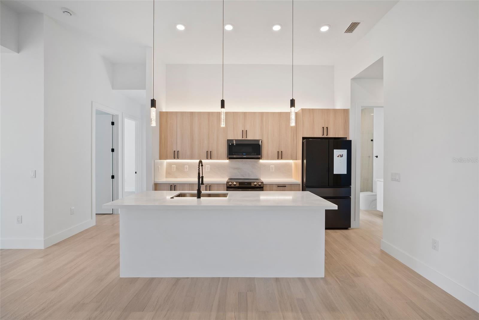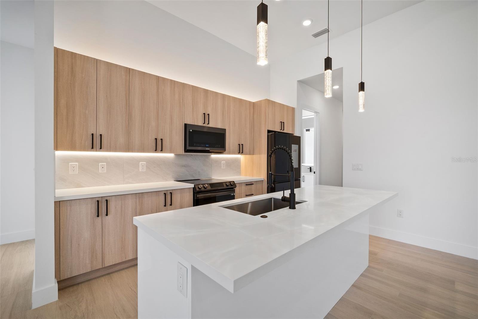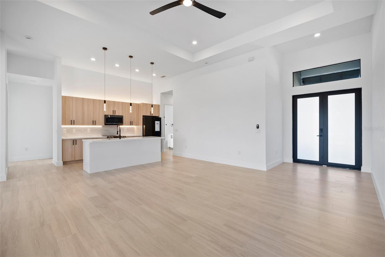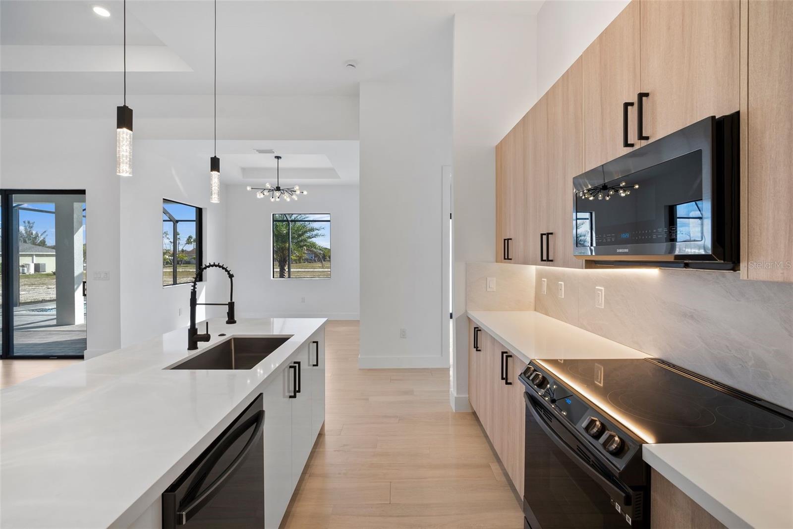 High quality and stylish new home, 4 Bedrooms: 3 Bathrooms with Garage-covered spaces for 2 cars. This stunning residence offers a harmonious blend of luxury, comfort, and Florida living, with an abundance of natural light and elegant details. This home is fully equipped with Smart home technology and boasts unique upgrades, appliances with a TV screen refrigerator, reverse osmosis system throughout the house, metal roof, hurricane impact windows, spacious walk-in closets, huge screened patio, outdoor shower, summer kitchen, and a saltwater pool with fountain and ledge lounger.