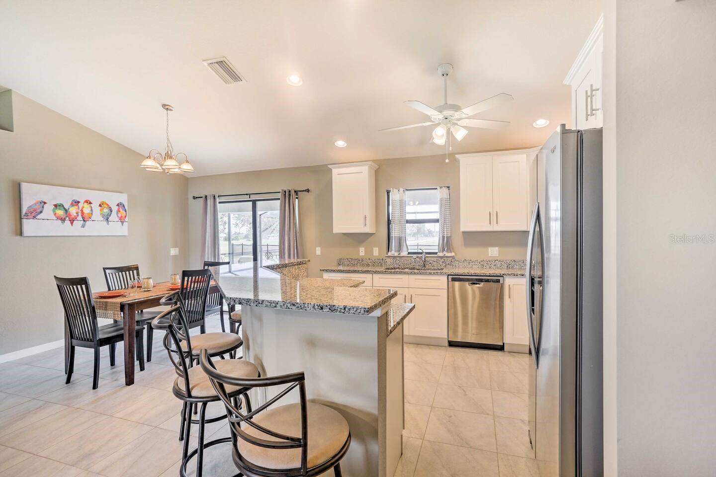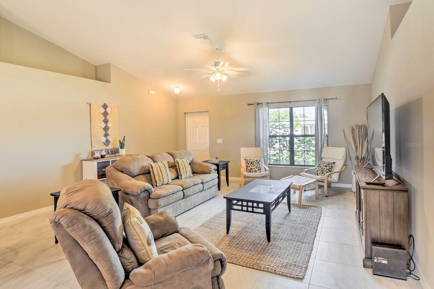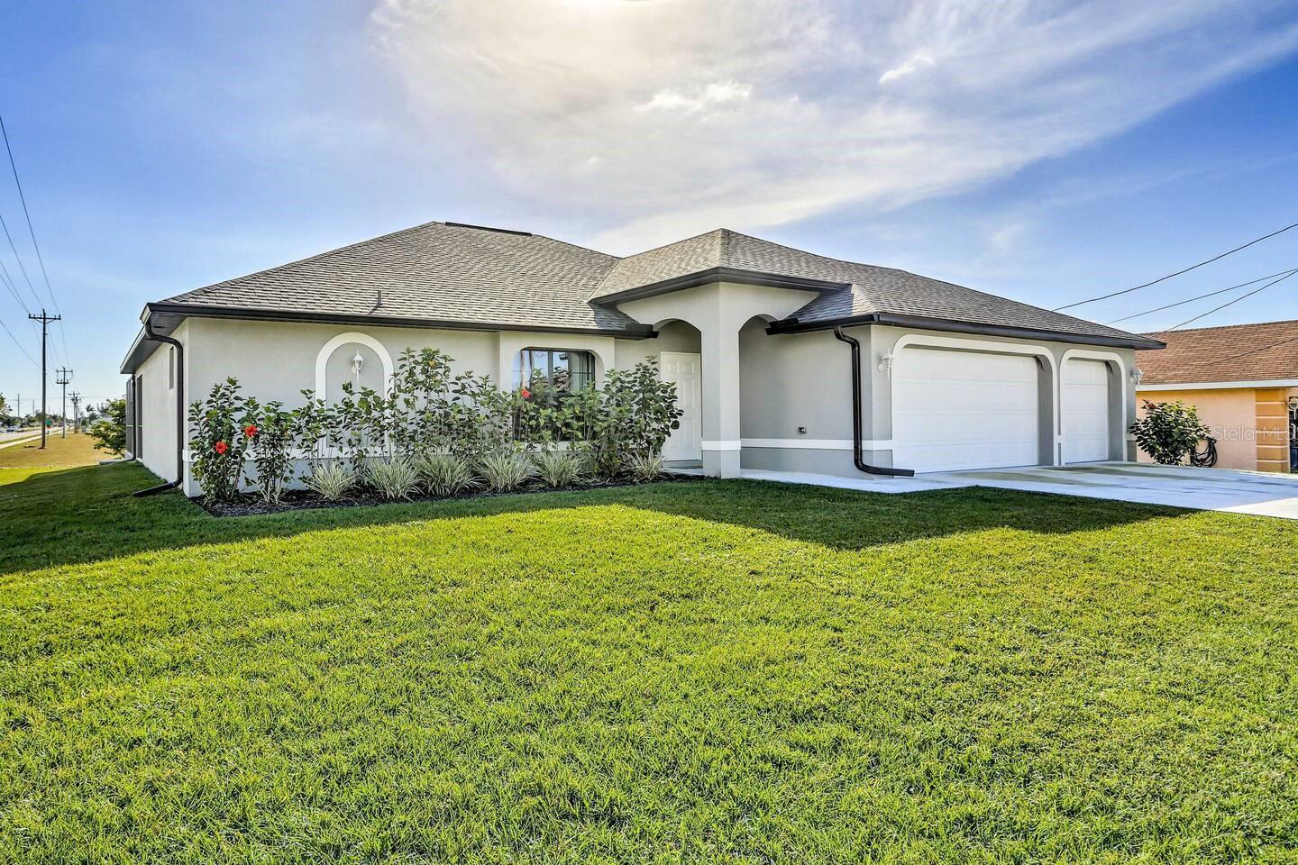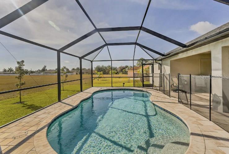 BEAUTIFUL HOME POOL home in highly desirable area of Southwest Cape Coral. 4 bed, 2 bath, 3-car garage. 1718 sq. ft. Tile everywhere excepts bedrooms. Granite countertops throughout. Beautiful, upgraded STAINLESS STEEL appliance package. LARGE screened lanai with decorative pavers. Cathedral ceiling in living area. Tray ceiling in master with 2 walk in closets and a master bath that features a large tiled shower and dual sinks. Automatic sprinkler system. Quiet neighborhood, close to schools, dining, shopping, etc. in highly desirable area of SW Cape Coral.