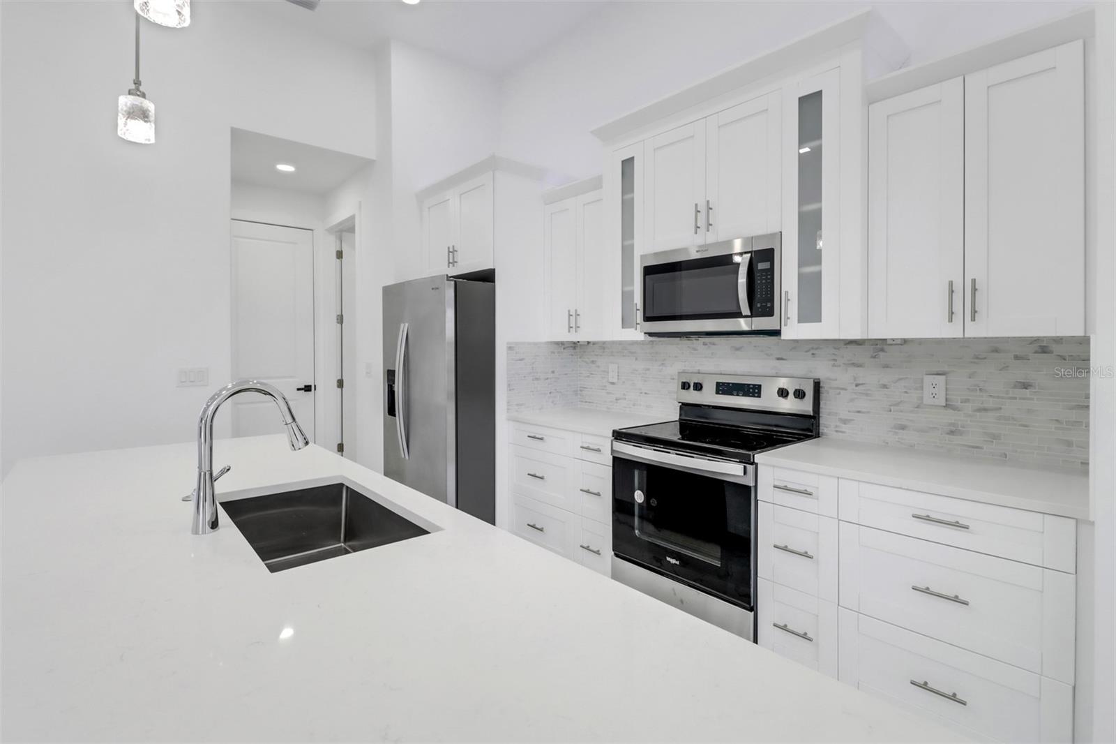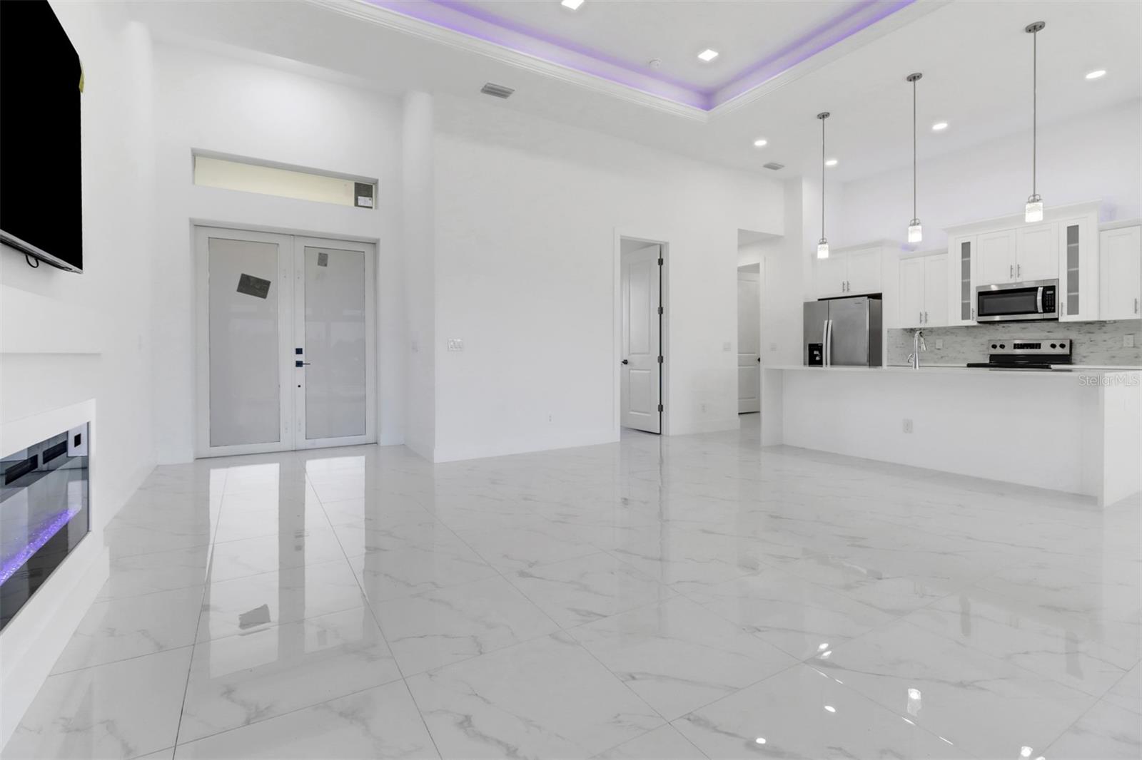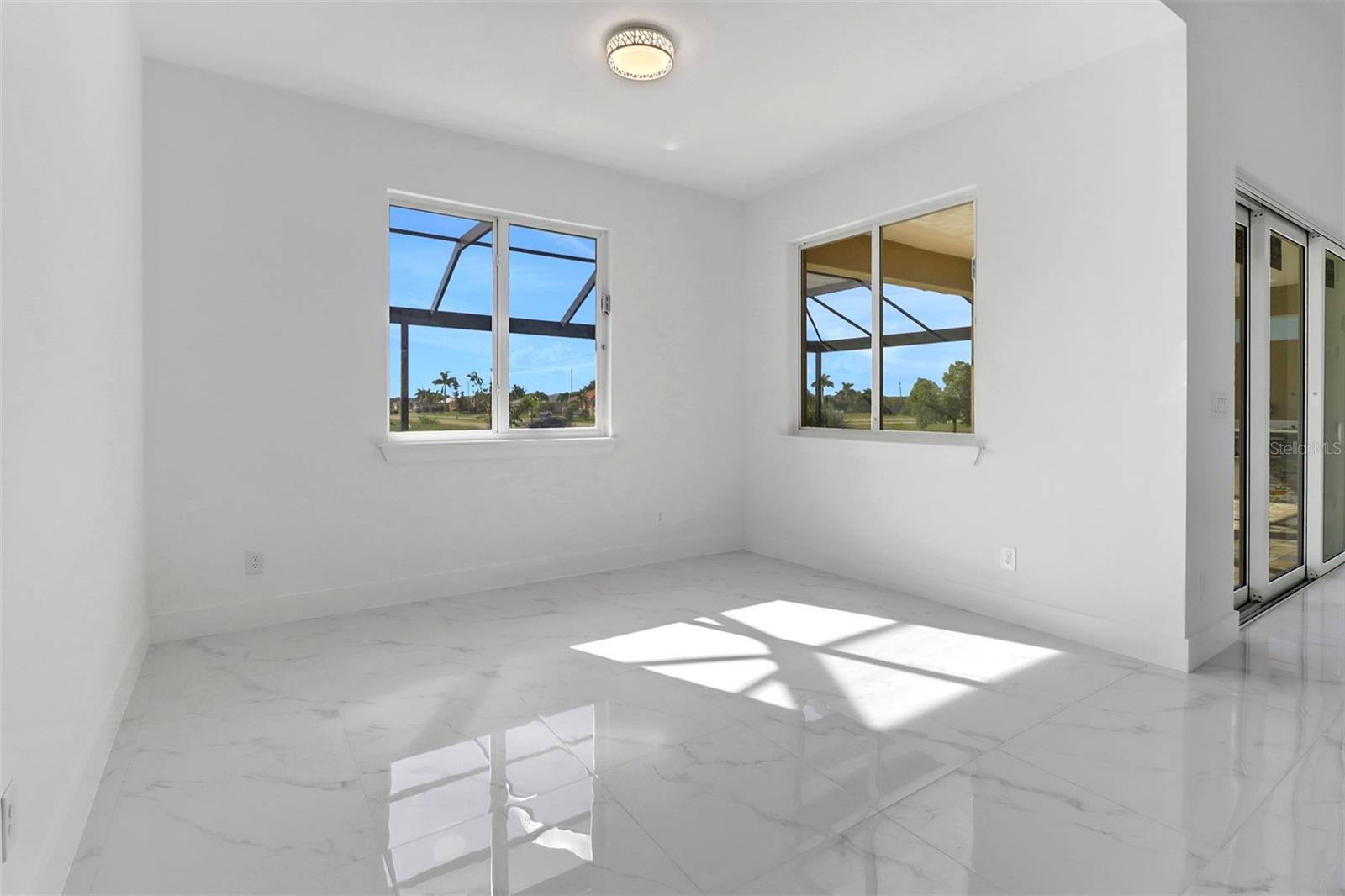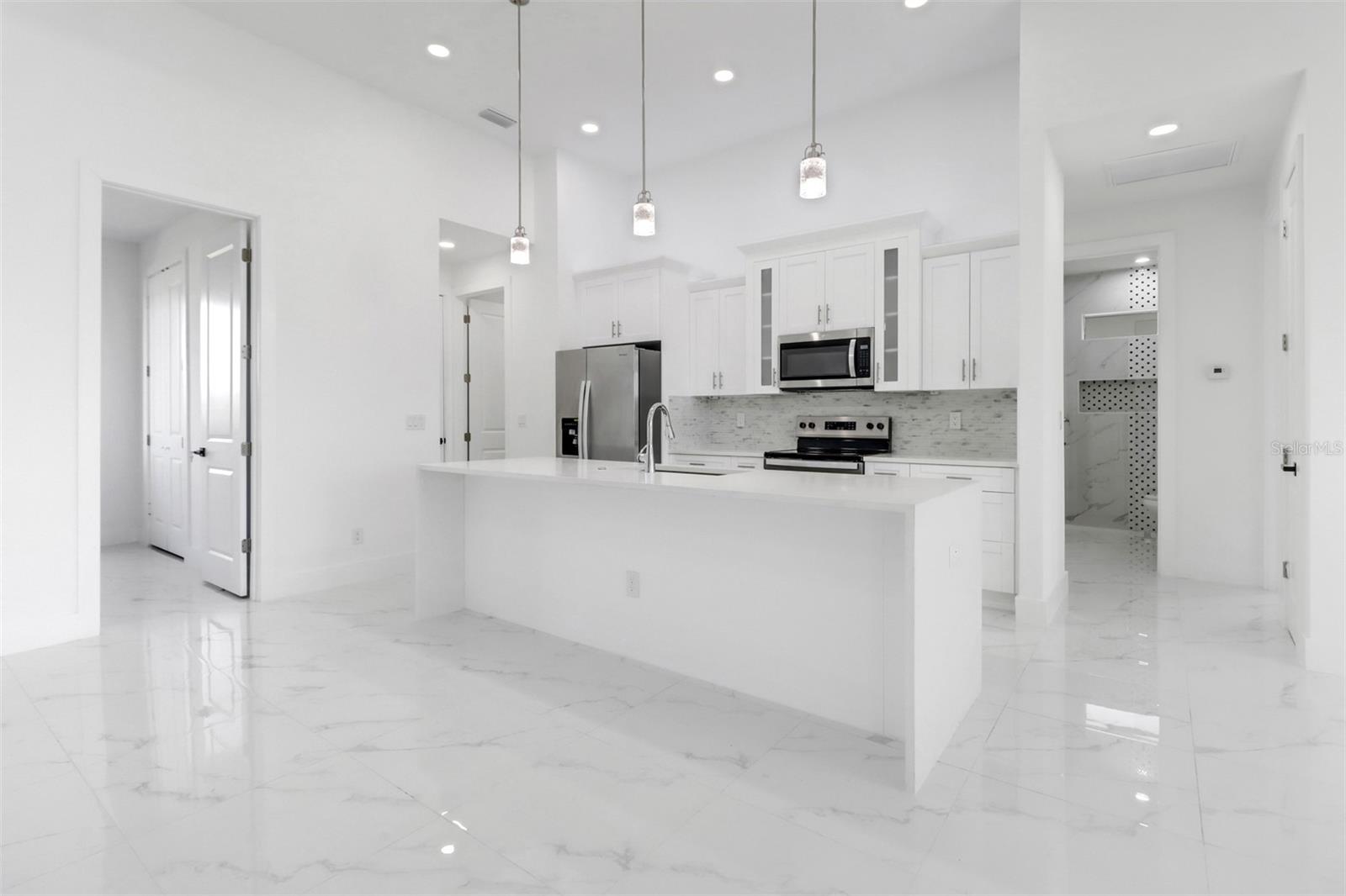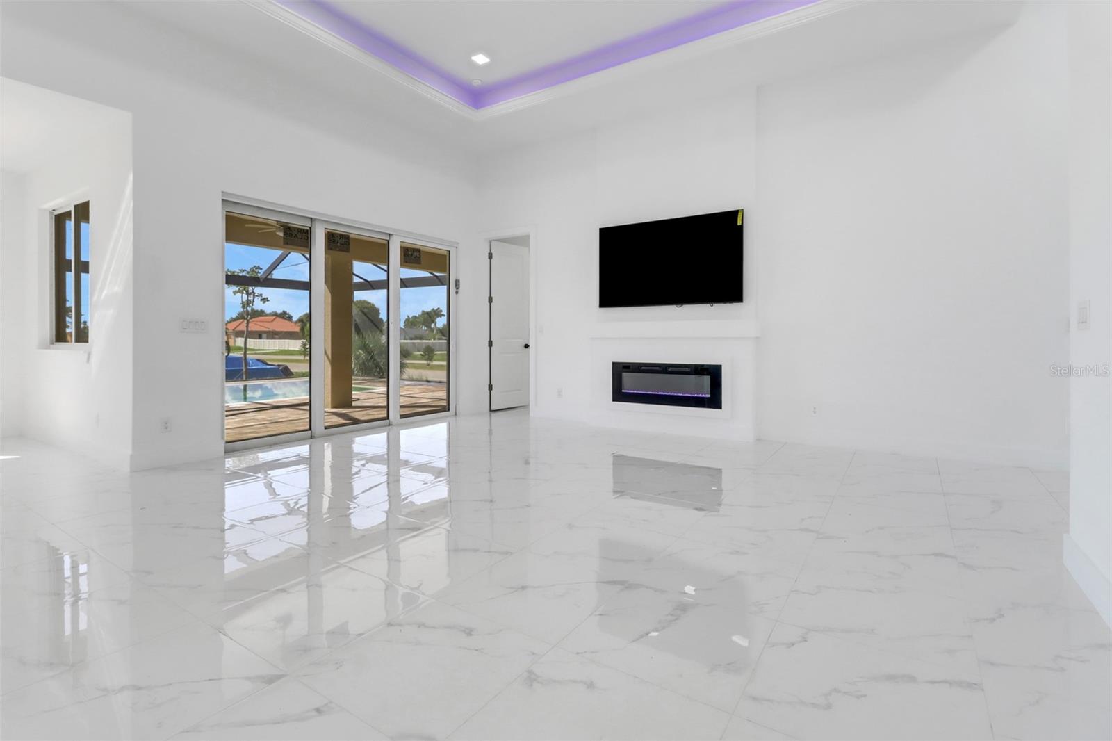 Welcome to your dream home in Cape Coral! This stunning single family home boasts 4 bedrooms, 3 bathrooms, and a 2 car garage, perfect for a growing family or those who love to entertain. The kitchen features granite counters, stainless steel appliances, and 42" cabinets, making it a chef's paradise. The tile flooring throughout the home adds a touch of elegance and luxury. The High ceilings and impact windows and doors create a bright and airy atmosphere, while LED lights and ceiling fans add a modern touch. Cozy up by the electric fireplace on chilly evenings, or enjoy movie nights on the 75-inch TV in the living room.The master bathroom is a true oasis with a huge walk in shower, and beautiful granite countertops. The walking closets with custom organizers ensures that your wardrobe stays organized and clutter-free. Step outside to relax in the amazing pool area and enjoy the Florida sunshine, with an outdoor kitchen this pool area is JUST PERFECT, and don't forget to bring your boat with you because the boat ramp is just minutes away allows for easy access to the water.This new construction home has everything you could want and more, making it the perfect place to call home in Cape Coral. Don't miss out on this opportunity to live in luxury and comfort!