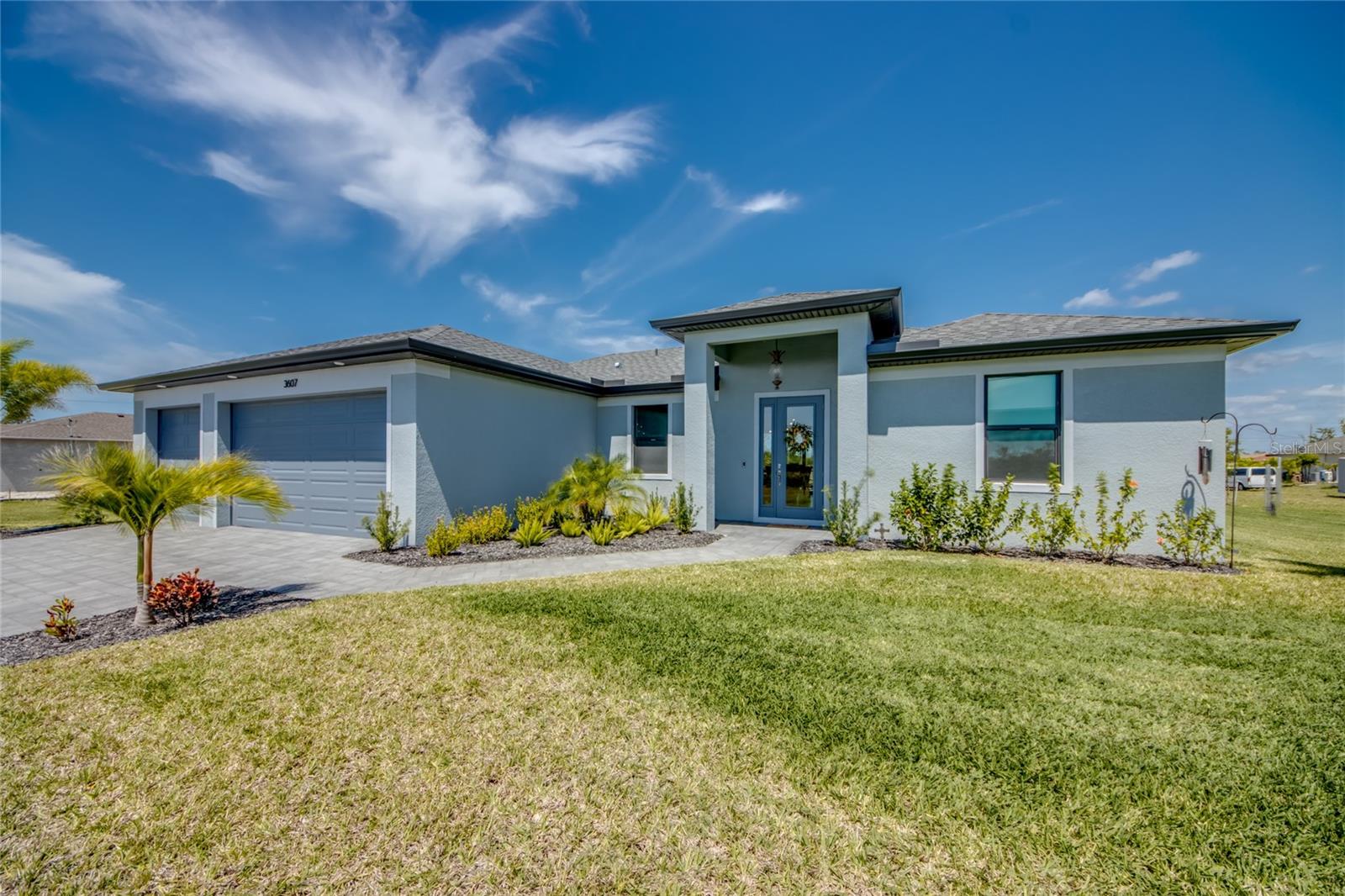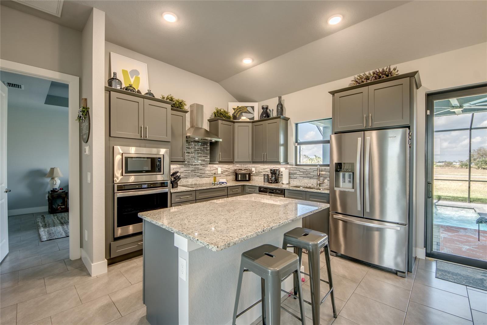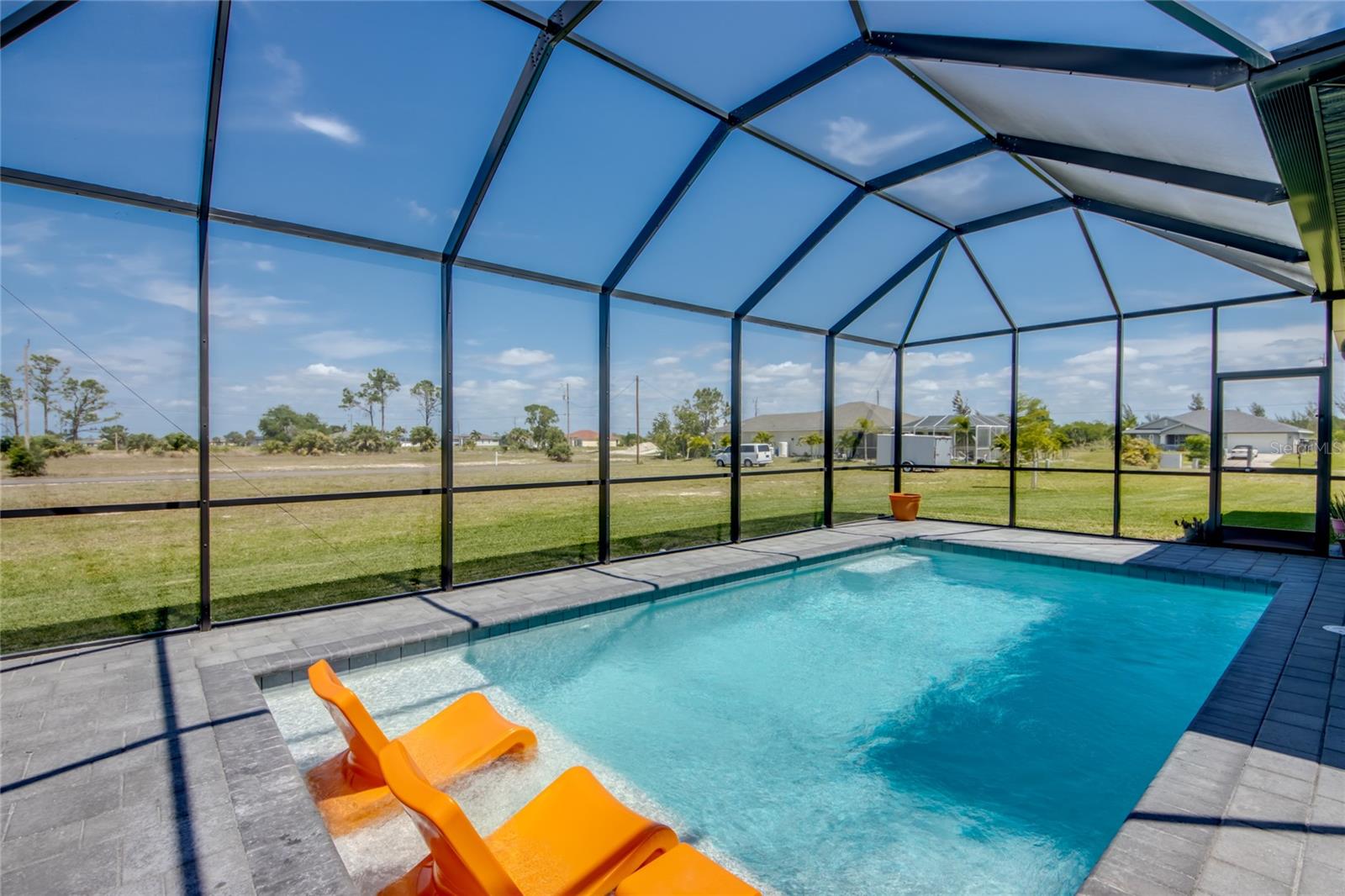 Buyers could not get financed! Huge opportunity to get this for under appraised value.....instant equity$$$$ LOT IS LARGER than anything else comparable in Cape Coral with NO FLOOD INSURANCE REQUIRED! For added comfort, EXTRA INSULATION THROUGH OUT!!! Discover your dream home in the vibrant, up-and-coming neighborhood of NW Cape Coral with build completed mid 2023! This stunning 1,800 sq ft split-bedroom, generator ready ranch home on Caloosa Pkwy offers coastal charm and modern elegance. Enjoy 3 spacious bedrooms plus a versatile den, and 2 luxurious bathrooms featuring frameless, tiled showers. All interior walls are insulated with batting and all exterior walls are insulated with wall board insulation as well as spray foam covering the entire attic making it more energy efficient than any other home you’ll find. Hurricane windows and doors. Master bedroom features French doors leading out to the pool deck for your own personal entrance. Relax and entertain in style with a 12x24 heated saltwater pool set on a beautifully enclosed paver deck, surrounded by 26,000 sq ft of lush, irrigated Flora Tam sod. The gourmet kitchen boasts upgraded stainless steel appliances, including a sleek vent hood over the cooktop, wall oven, and microwave, complemented by a striking glass backsplash. The home also features a 3-car garage, pavered circular driveway and a whole-house reverse osmosis system to keep your pool and appliances in top condition. Don’t miss out on this exceptional opportunity!