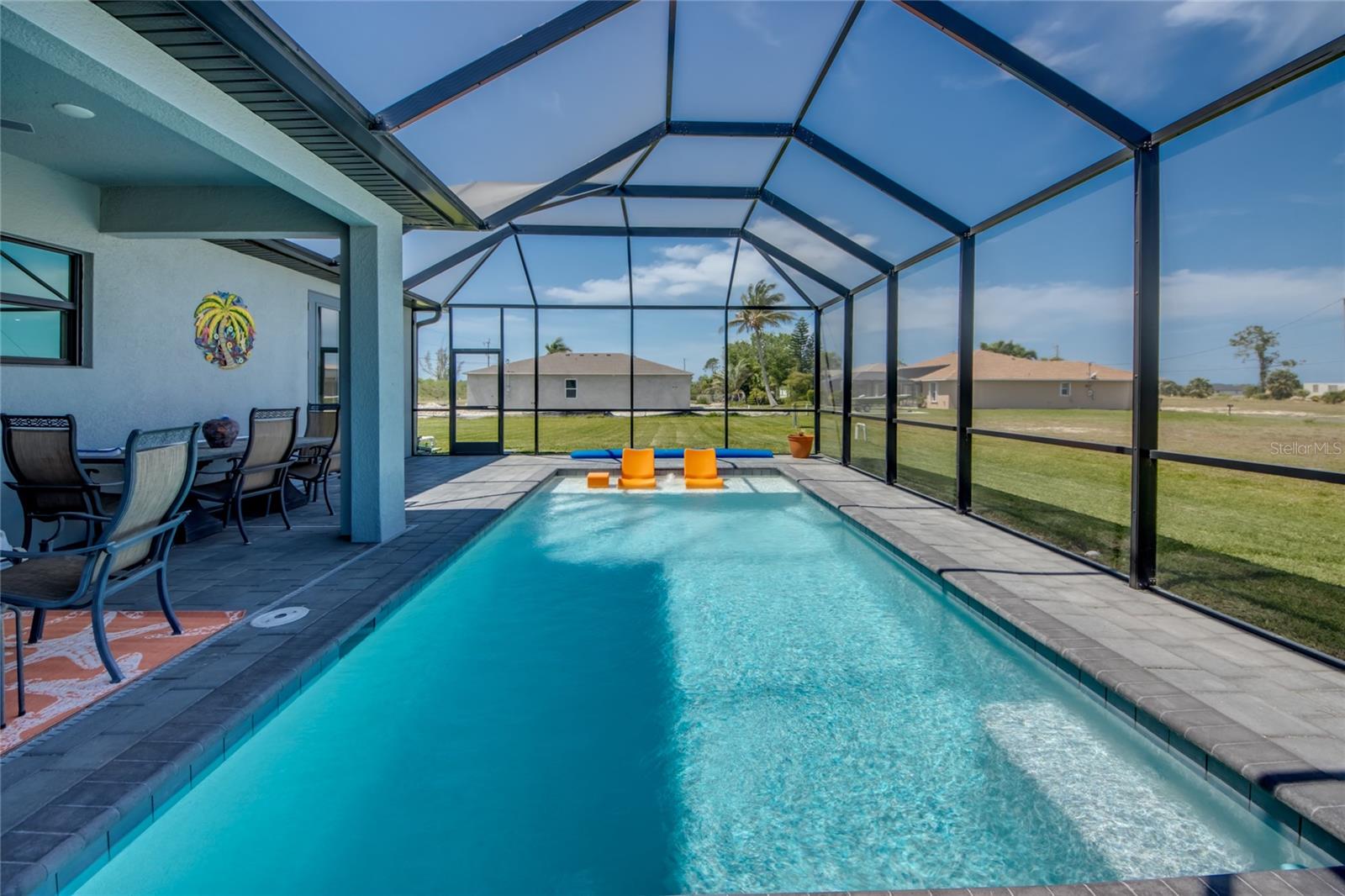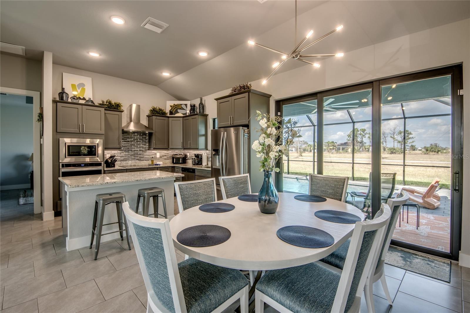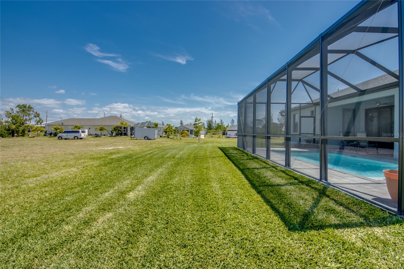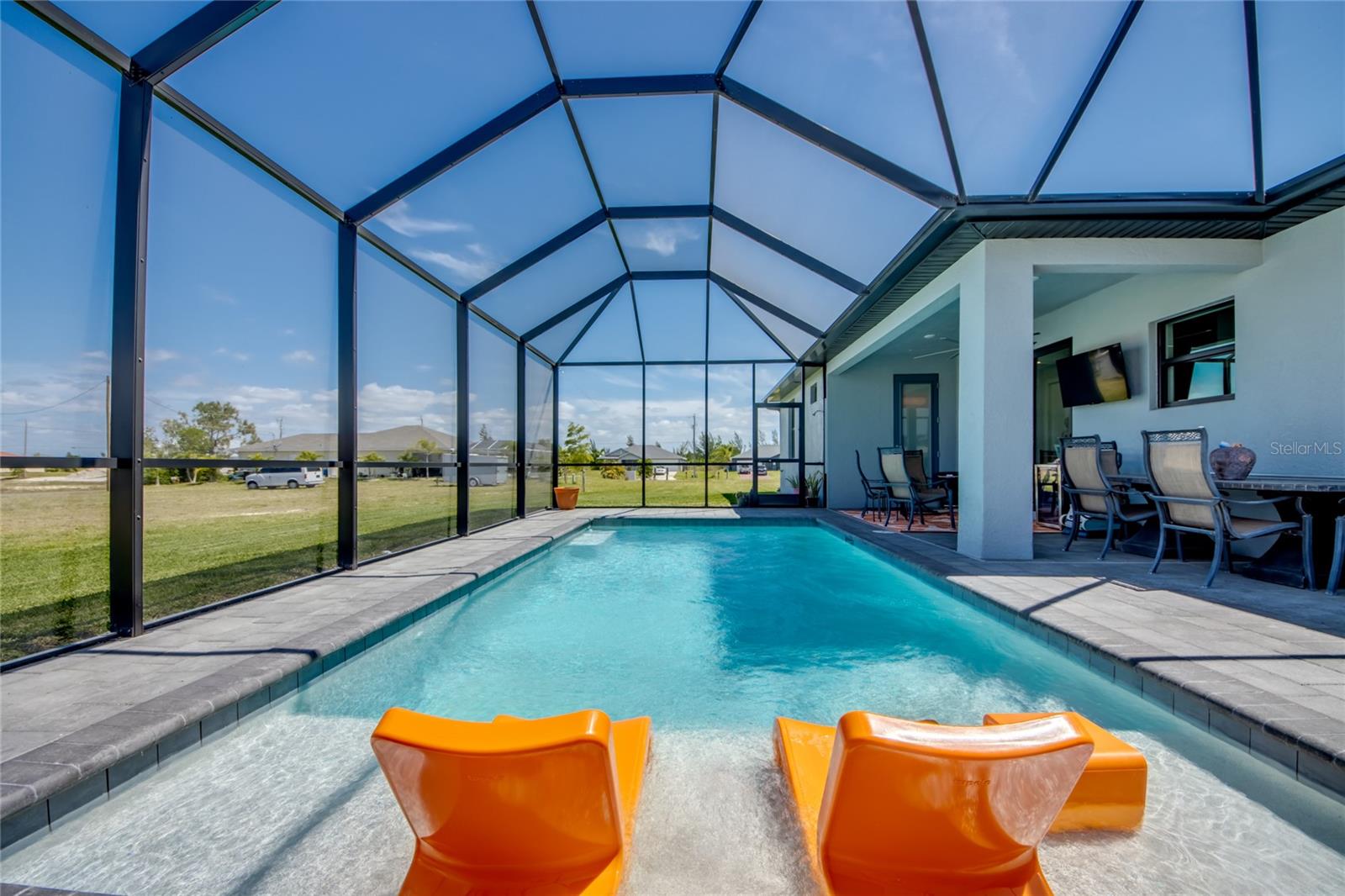 Buyers could not get financed! Huge opportunity to get this for under appraised value.....instant equity$$$$ LOT IS LARGER than anything else comparable in Cape Coral with NO FLOOD INSURANCE REQUIRED! For added comfort, EXTRA INSULATION THROUGH OUT!!! Discover your dream home in the vibrant, up-and-coming neighborhood of NW Cape Coral with build completed mid 2023! This stunning 1,800 sq ft split-bedroom, generator ready ranch home on Caloosa Pkwy offers coastal charm and modern elegance. Enjoy 3 spacious bedrooms plus a versatile den, and 2 luxurious bathrooms featuring frameless, tiled showers. All interior walls are insulated with batting and all exterior walls are insulated with wall board insulation as well as spray foam covering the entire attic making it more energy efficient than any other home you’ll find. Hurricane windows and doors. Master bedroom features French doors leading out to the pool deck for your own personal entrance. Relax and entertain in style with a 12x24 heated saltwater pool set on a beautifully enclosed paver deck, surrounded by 26,000 sq ft of lush, irrigated Flora Tam sod. The gourmet kitchen boasts upgraded stainless steel appliances, including a sleek vent hood over the cooktop, wall oven, and microwave, complemented by a striking glass backsplash. The home also features a 3-car garage, pavered circular driveway and a whole-house reverse osmosis system to keep your pool and appliances in top condition. Don’t miss out on this exceptional opportunity!