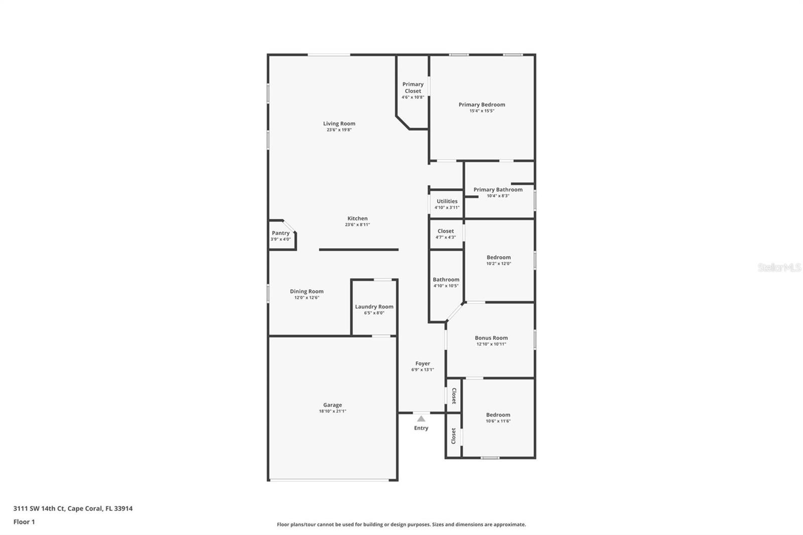 Charm and curb appeal abound for this Cape Coral home! Step inside into the inviting foyer, which is flanked on the right by the two secondary bedrooms and a bonus room. As you move through the home you'll find the dining room and the kitchen, which boasts stainless steel appliances, hard surface countertops, and ample storage. The well-appointed living room is situated at the back of the home along with the primary suite. Come and see for yourself the possibilities that this home has to offer!