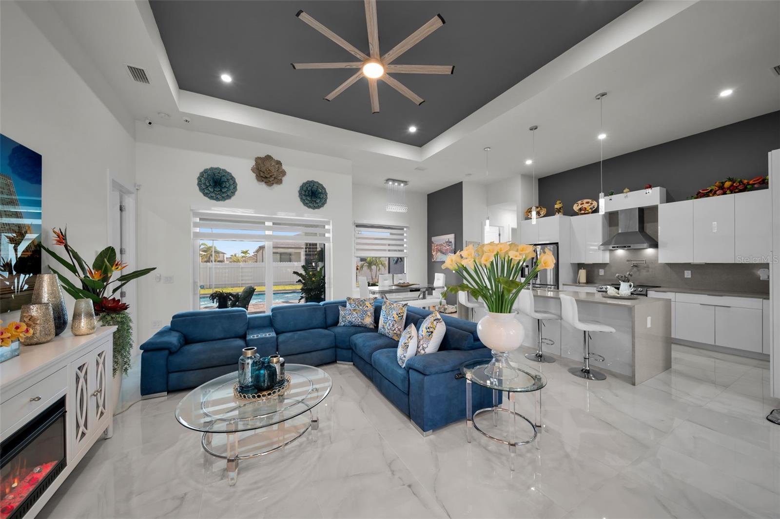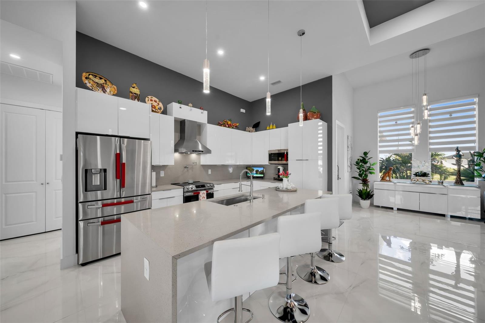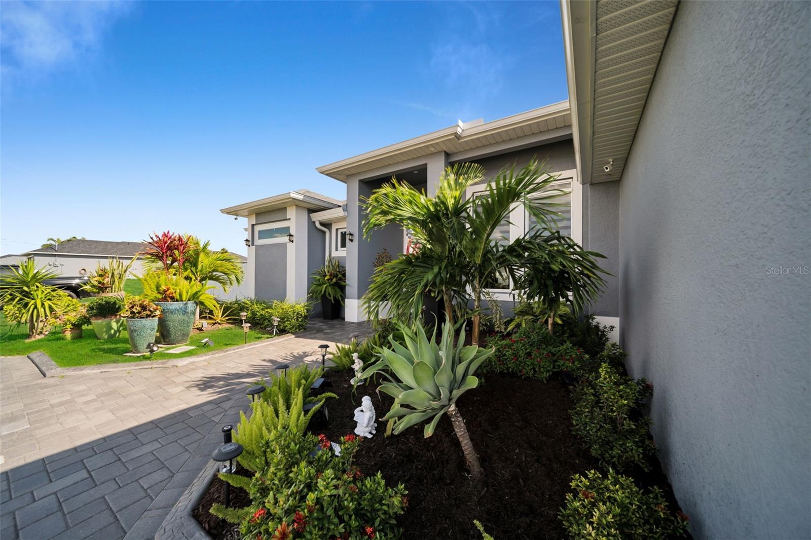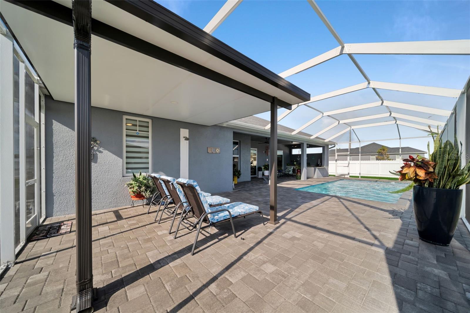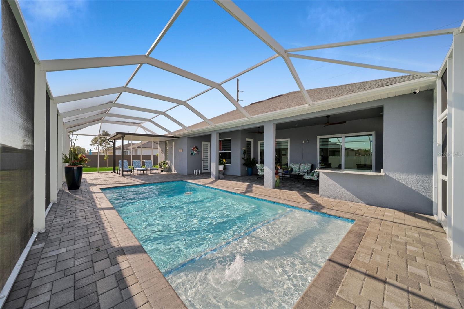 SELLER MOTIVARED!! Better than new! This stunning home, built in 2022, has been upgraded with high-end finishes and smart features throughout. Offering 1,867 sq ft under air, this property features 3 spacious bedrooms—each with its own private bathroom and walk-in closet. The open-concept layout flows seamlessly into a gourmet kitchen with modern cabinetry, premium appliances, designer lighting, and luxury ceiling fans—all included in the sale. Enjoy outdoor living with a fully equipped summer kitchen featuring a gas grill and wine cooler, a saltwater pool with screened enclosure, outdoor shower, full irrigation system, and a fully fenced yard for added privacy. Additional features include impact-resistant doors and windows, electric shades, smart door lock with built-in camera, indoor and outdoor security cameras, automatic transfer switch for backup power, epoxy-finished garage floor, A/C in the garage, and full-home internet connectivity. Truly move-in ready—this home offers comfort, security, and style all in one. A must-see in Cape Coral!