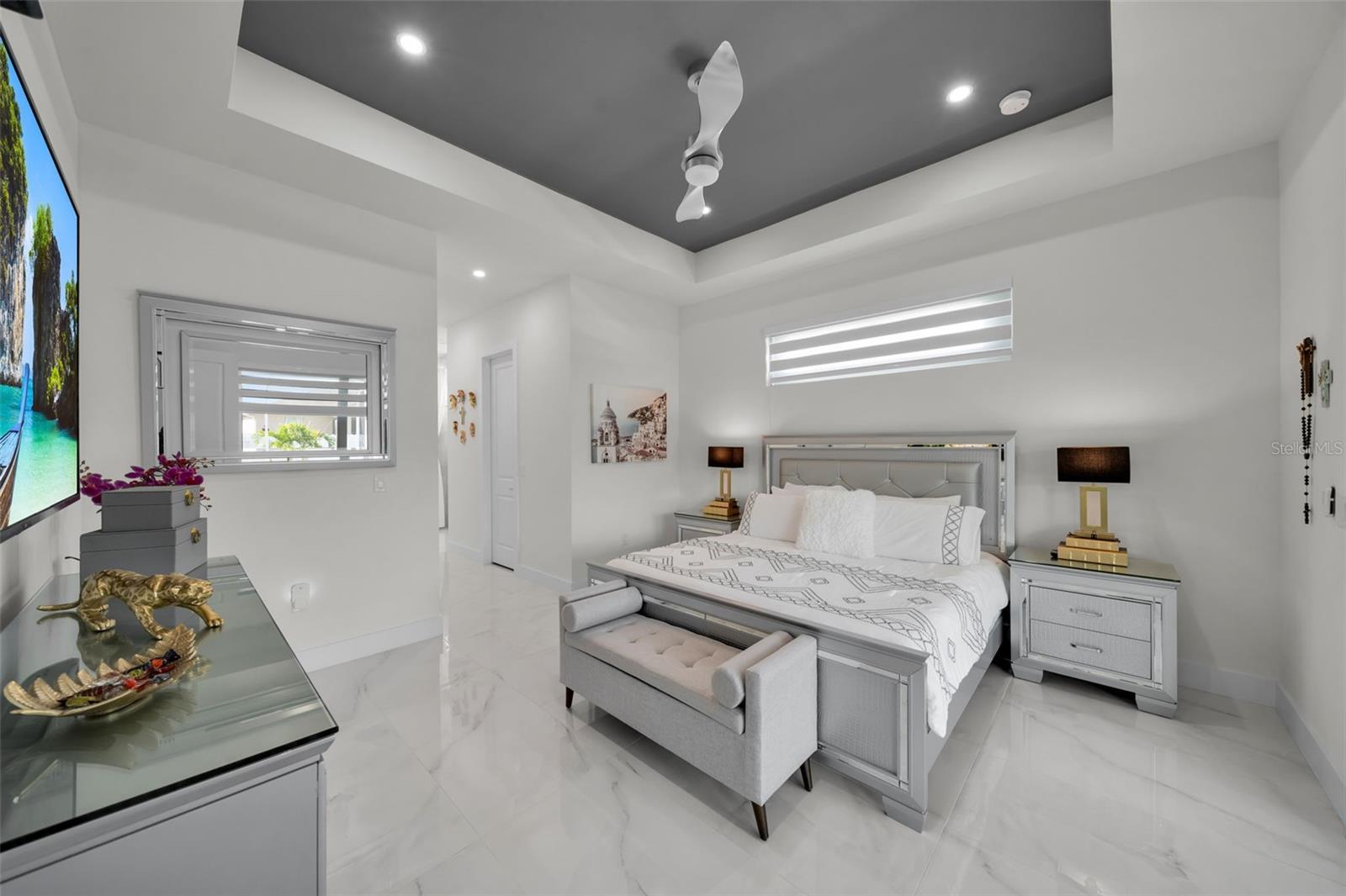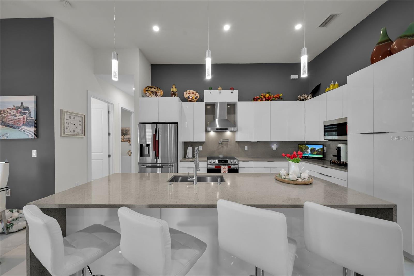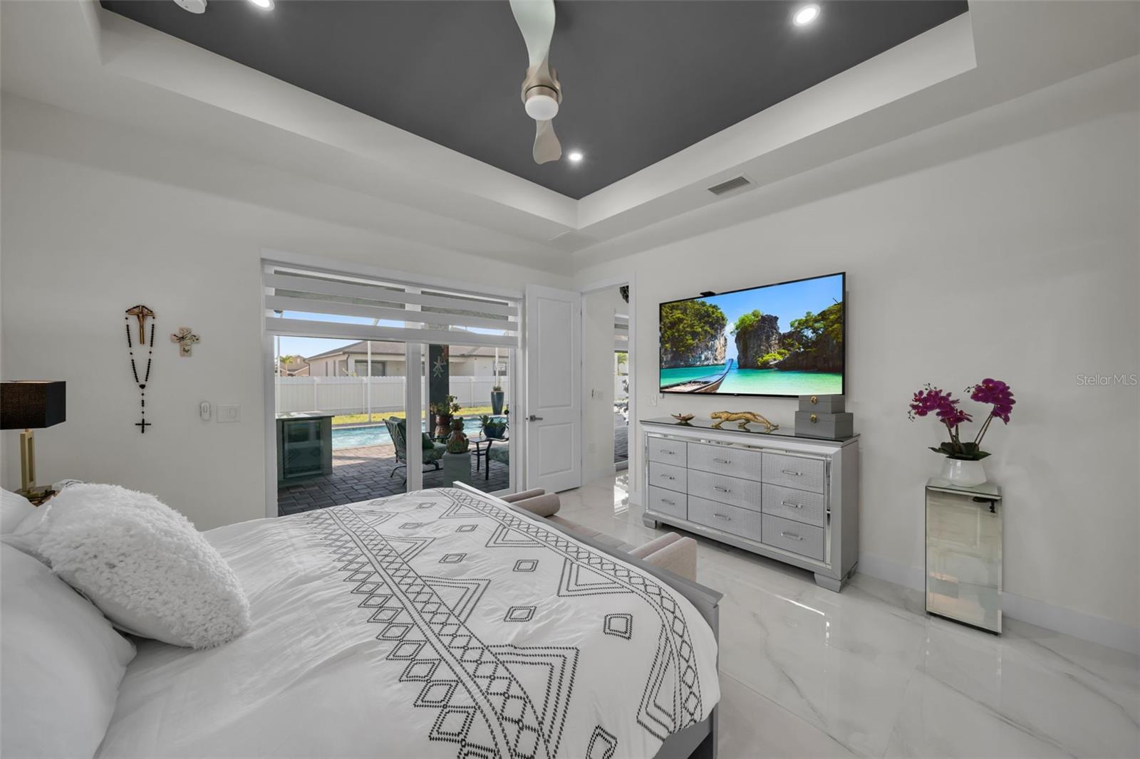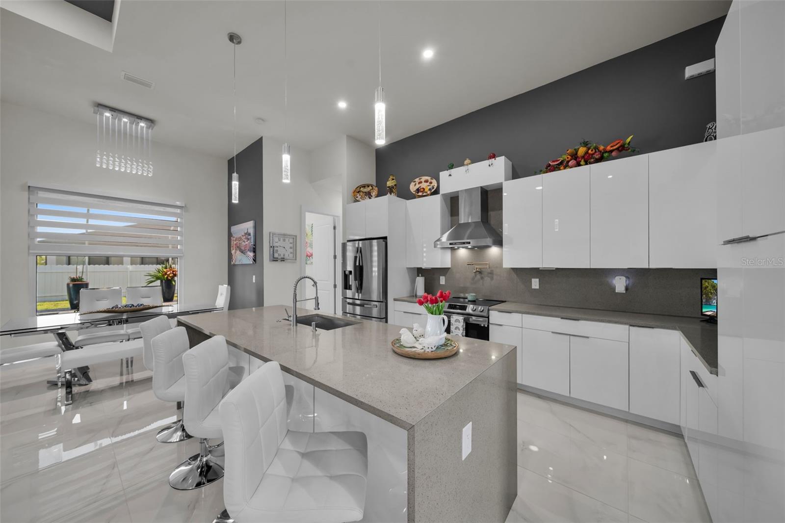 SELLER MOTIVARED!! Better than new! This stunning home, built in 2022, has been upgraded with high-end finishes and smart features throughout. Offering 1,867 sq ft under air, this property features 3 spacious bedrooms—each with its own private bathroom and walk-in closet. The open-concept layout flows seamlessly into a gourmet kitchen with modern cabinetry, premium appliances, designer lighting, and luxury ceiling fans—all included in the sale. Enjoy outdoor living with a fully equipped summer kitchen featuring a gas grill and wine cooler, a saltwater pool with screened enclosure, outdoor shower, full irrigation system, and a fully fenced yard for added privacy. Additional features include impact-resistant doors and windows, electric shades, smart door lock with built-in camera, indoor and outdoor security cameras, automatic transfer switch for backup power, epoxy-finished garage floor, A/C in the garage, and full-home internet connectivity. Truly move-in ready—this home offers comfort, security, and style all in one. A must-see in Cape Coral!