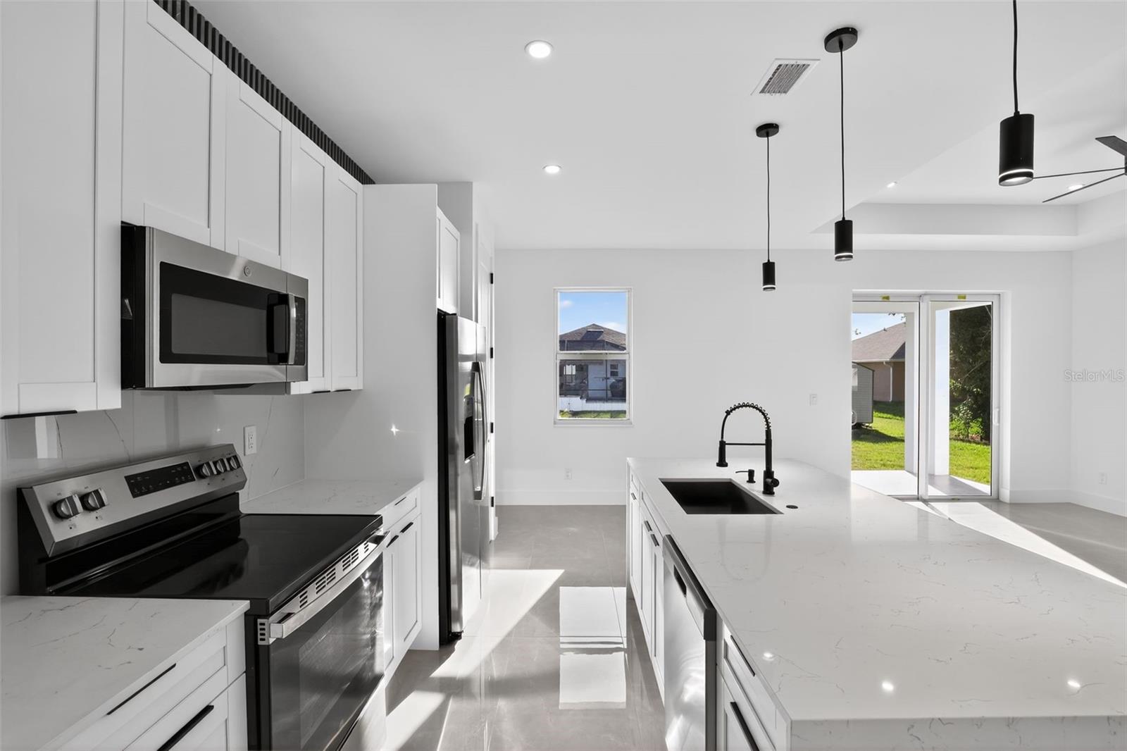 Step into the perfect blend of modern design, timeless quality, and thoughtful craftsmanship with this brand-new 3-bedroom, 3-bathroom home in Cape Coral. Every inch of this residence was designed and built with heart, ensuring no option was spared and no detail overlooked. From the foundation to the finishing touches, this is a property that delivers both beauty and long-lasting quality. The moment you arrive, you’ll notice the sleek curb appeal and attention to detail. Inside, the open-concept floor plan welcomes you with soaring ceilings, and abundant natural light that creates a warm, inviting atmosphere. The layout was thoughtfully designed for both comfort and function, offering the perfect balance for everyday living and entertaining. At the heart of the home sits the kitchen, Featuring premium cabinetry, luxury countertops, this space was built for the chef who loves to create, as well as for gatherings with friends and family. The seamless flow into the dining and living areas makes entertaining effortless, while oversized sliders connect the indoors to the outdoor living space. Each of the three bedrooms is well-proportioned to maximize comfort and usability, giving every member of the household their own private space. The primary suite offers a practical retreat with a thoughtfully designed bathroom that includes dual vanities and a walk-in shower for everyday convenience. The two additional bathrooms are equally functional, designed with smart layouts and quality finishes that make daily routines easy for both family and guests. The outdoor space offers plenty of room to create your own paradise, whether that means adding a pool, a summer kitchen, or simply enjoying the tranquility of Cape Coral living. Located in a desirable and growing area, you’re close to shopping, dining, parks, and the Gulf Coast’s beautiful waterways, making this an ideal place to call home. If you’re searching for a home that isn’t just built, but built with passion, care, and top-tier quality, look no further. This 3-bedroom, 3-bathroom new construction delivers the best of Florida living — modern comfort, elevated design, and craftsmanship that truly stands apart. Don’t miss the opportunity to make this home yours.