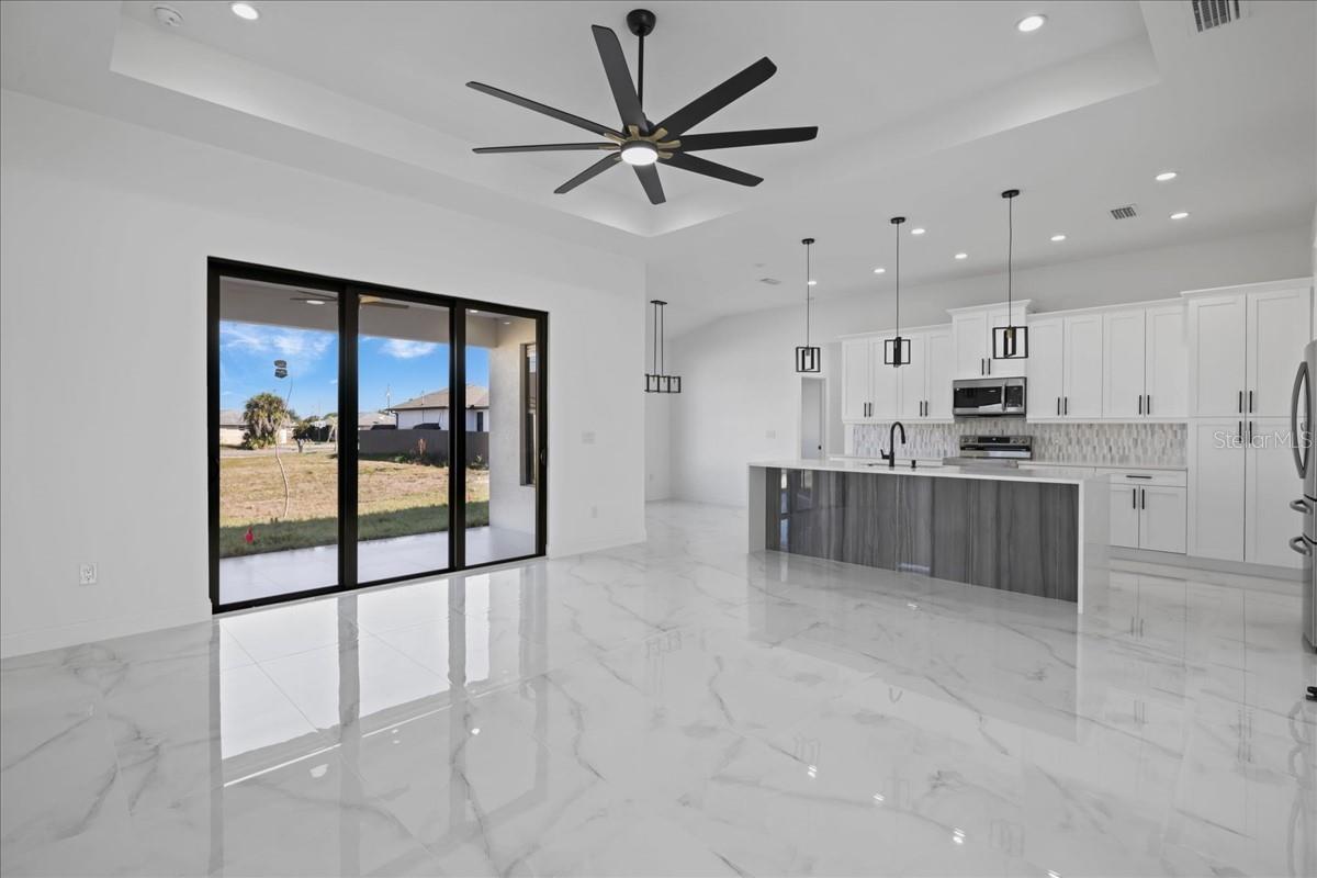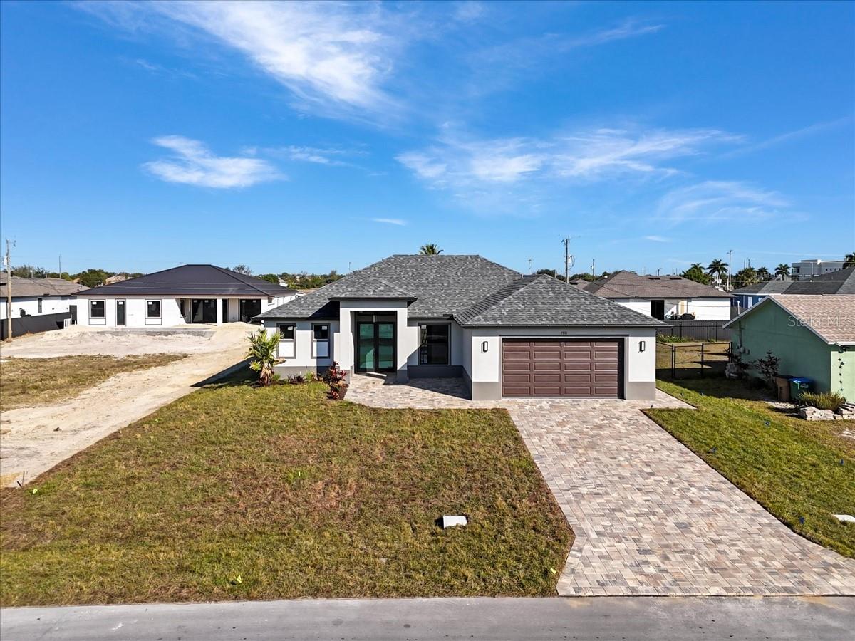 One or more photo(s) has been virtually staged. Experience unparalleled freedom in this newly constructed, no-HOA residence. This 3-bedroom, 2-bathroom home features a bright, and airy, open-concept layout defined by soaring high ceilings. The spacious kitchen equipped with stunning quartz countertops, flows seamlessly into the living room and dining room area, featuring durable, modern ceramic tile. A versatile, dedicated flex room is ideal for a home office or creative space. Finished with designer fixtures, ceiling fans, impact windows/doors, and public water/sewer. Perfectly located just 3 minutes from major roads, groceries, and pharmacies. Schedule your tour today!