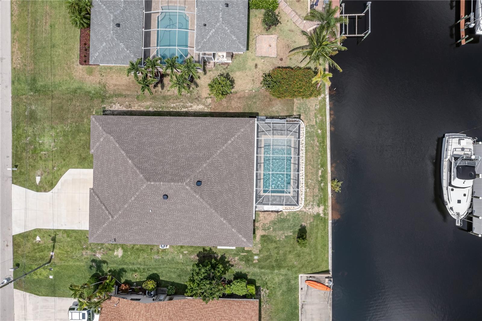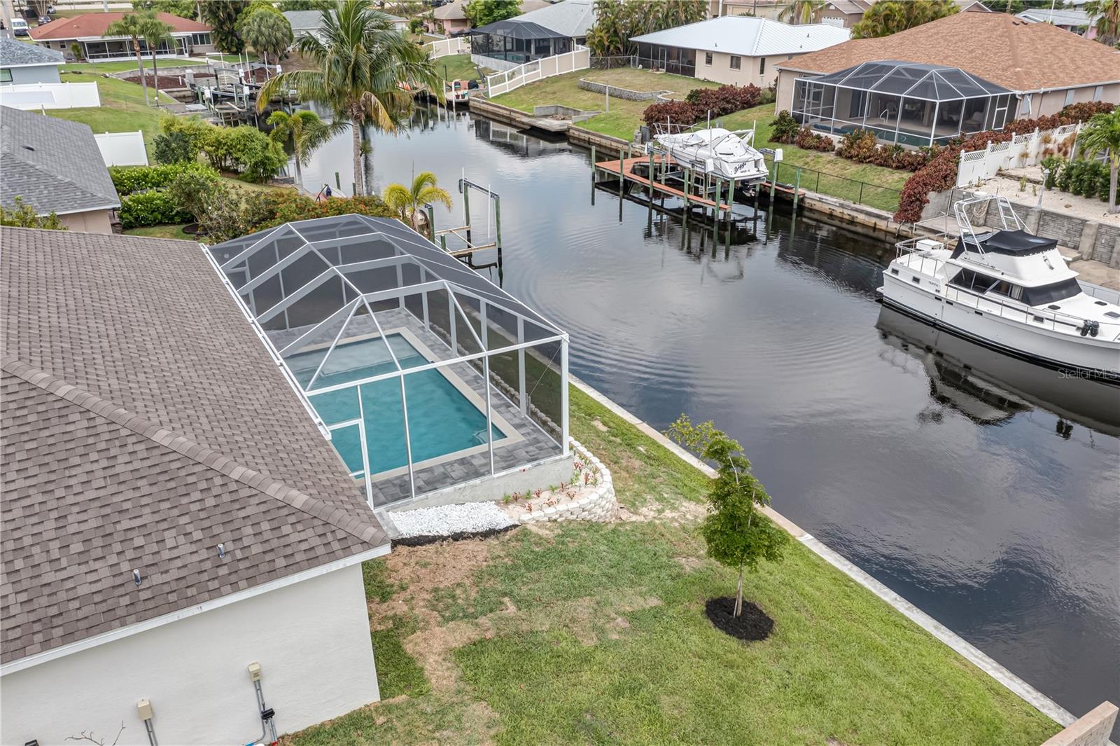 Just 1.8 Nautical Miles from the Gulf with no bridge limits on boat size !!! Welcome to this extraordinary brand-new home nestled in a well-established neighborhood, offering you swift access to the magnificent Caloosahatchee River through the adjacent navigation channel. This prime location ensures you can embark on your boating adventures effortlessly. This impressive residence boasts 4 bedrooms, providing ample space for comfortable living. Additionally, there is a versatile Den that can serve as an office, study, or even a cozy retreat. The convenient 2nd Guest Bedroom complete with a full bathroom is perfect for accommodating visitors, providing them with privacy and comfort. The spacious 3-car garage caters to your parking needs and offers plenty of storage space. Prepare to be dazzled by the kitchen, a true culinary masterpiece. Crown molding adds a touch of sophistication, while the top-of-the-line stainless steel appliances and exquisite granite countertops create a luxurious ambiance. Abundant cabinets and strategically placed lighting complete this chef's dream. Step outside onto the expansive under-truss lanai, an idyllic setting for crafting your own outdoor paradise. Whether you seek a serene spot to unwind or a space to entertain guests, the possibilities are endless within this enchanting haven. Enhanced protection is paramount, and this home delivers with its impact-resistant windows and impact sliding doors in the living room, seamlessly connecting the indoor and outdoor spaces. Feel secure and embrace the coastal lifestyle with peace of mind. Don't miss the opportunity to make this stunning waterfront property your own. Contact me today to schedule a private showing and immerse yourself in the allure of this exquisite home firsthand!