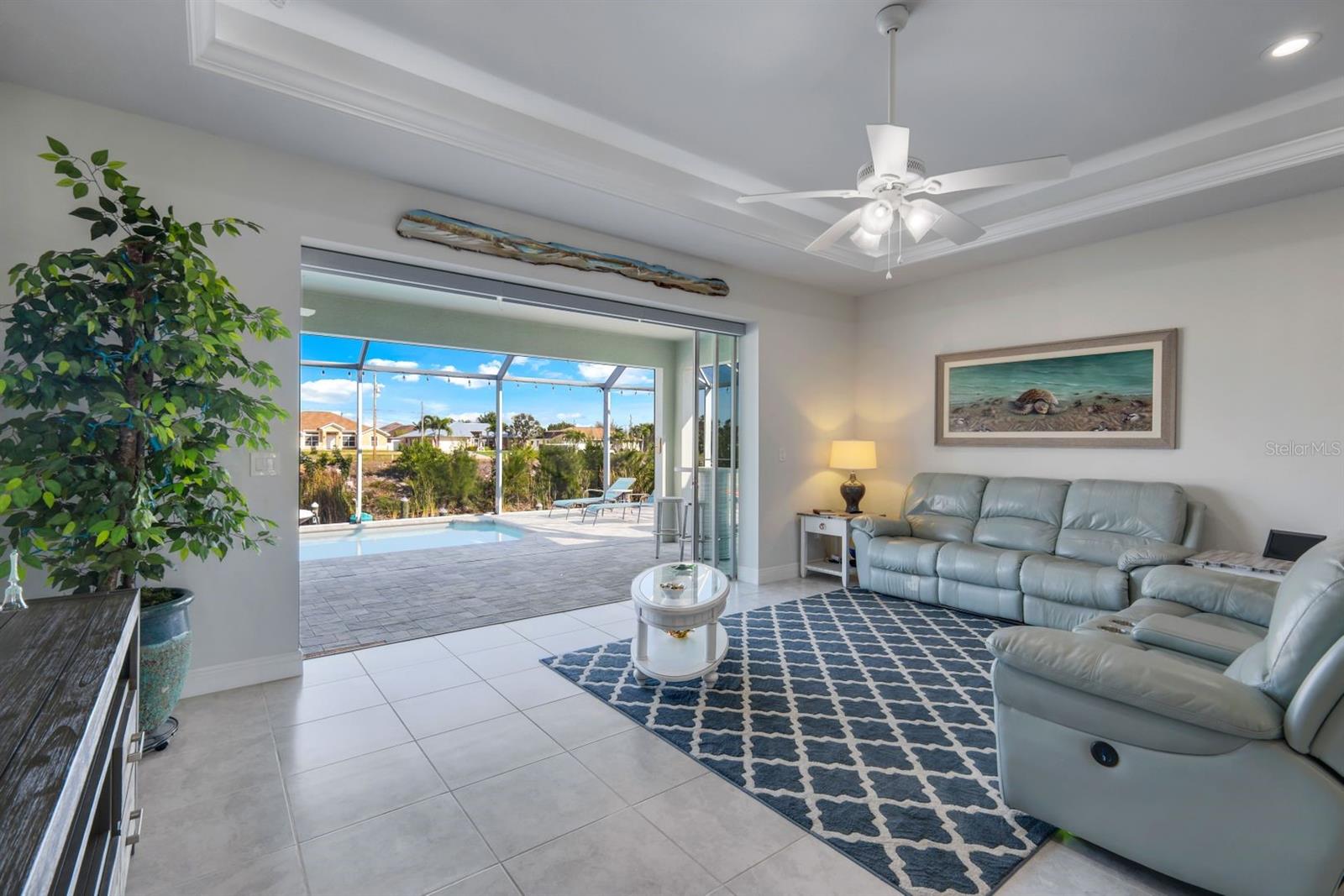GULF ACCESS NEWER BUILT HOME! Welcome to this exquisite 2019-built residence nestled in the popular boating community of Cape Coral FL! Home encompasses 3BR, 2BA, 3 Car Garage w/just under 2000 sqft of living space. Features include-IMPACT windows, tray ceilings, plantation shutters & sleek tile flooring in living areas. Kitchen is fully equipped w/stainless appliances, white shaker cabinets, quartz counter tops, all finished w/a modern touch including soft close technology. Owners retreat has private sliders to outdoor living, dual walk-in closets and large private bathroom featuring dual sinks & walk in shower. Guest rooms are spacious with ample closet space & baths feature quartz counters, white shaker cabinets & modern finishes. Step outside to your own private retreat, complete w/refreshing crystal blue pool, large covered living area w/plumbing & electrical rough in for your future summer kitchen. Boating enthusiasts will be delighted by low maintenance composite dock, 10k lb lift capacity, water tight outlets PLUS convenient kayak & canoe storage system for all your aquatic adventures. Enjoy everything that SW FL has to offer! Schedule your appointment today!