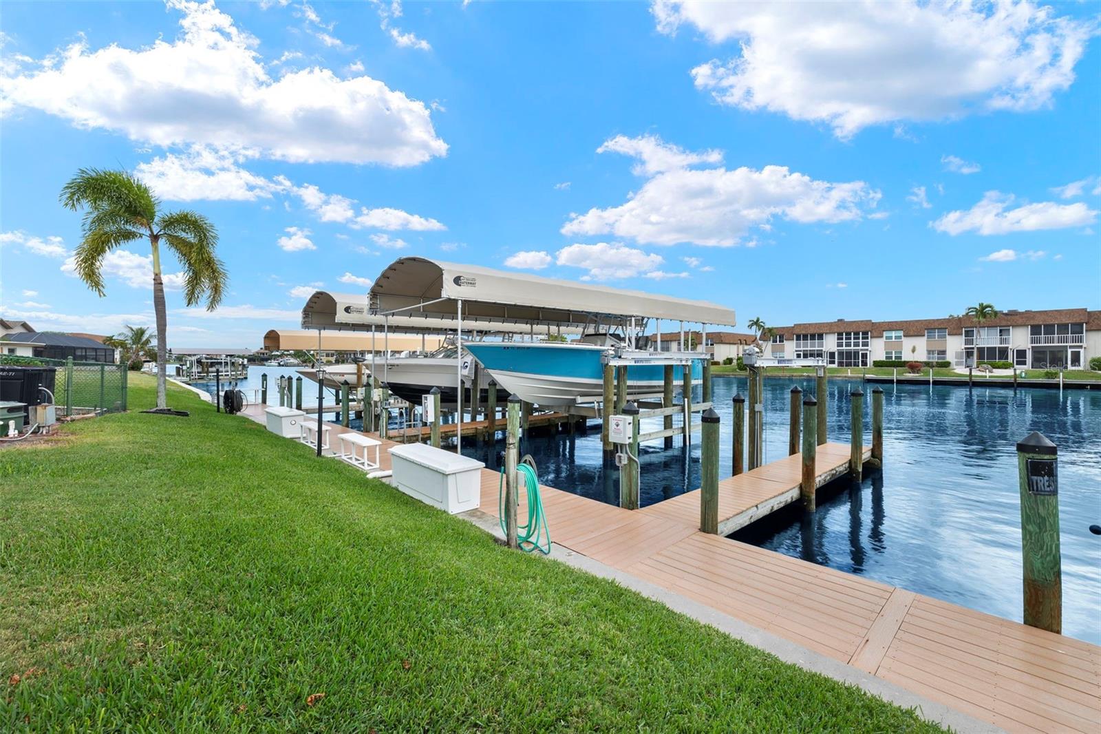 SAILBOAT ACCESS - PRIVATE BOAT SLIP INCLUDED! Welcome to this beautifully remodeled condo located in desirable SE Cape Coral just minutes from Jaycee Park. This charming first floor unit offers 2 bedrooms & 2 bathrooms, providing ample space for comfortable living. Situated on the water just minutes from the river, this pet friendly, 55+ community offers a serene & peaceful environment for its residents. Boasting sailboat access & a private boat slip that can be modified to add a lift, this home is a dream come true for water enthusiasts. Enjoy the convenience of a carport, ensuring your vehicle is protected from the elements. The community pool is the perfect place to relax & unwind, offering a refreshing retreat just steps away from your front door. Recently remodeled & features diagonal wood like tile flooring, white shaker cabinets, stainless appliances & more, creating a stylish and inviting atmosphere. Located in Cape Coral, you'll have access to all the amenities & attractions this growing & vibrant city has to offer. Schedule a showing today and experience the best of Florida living in this exceptional property. All Assessments PAID!