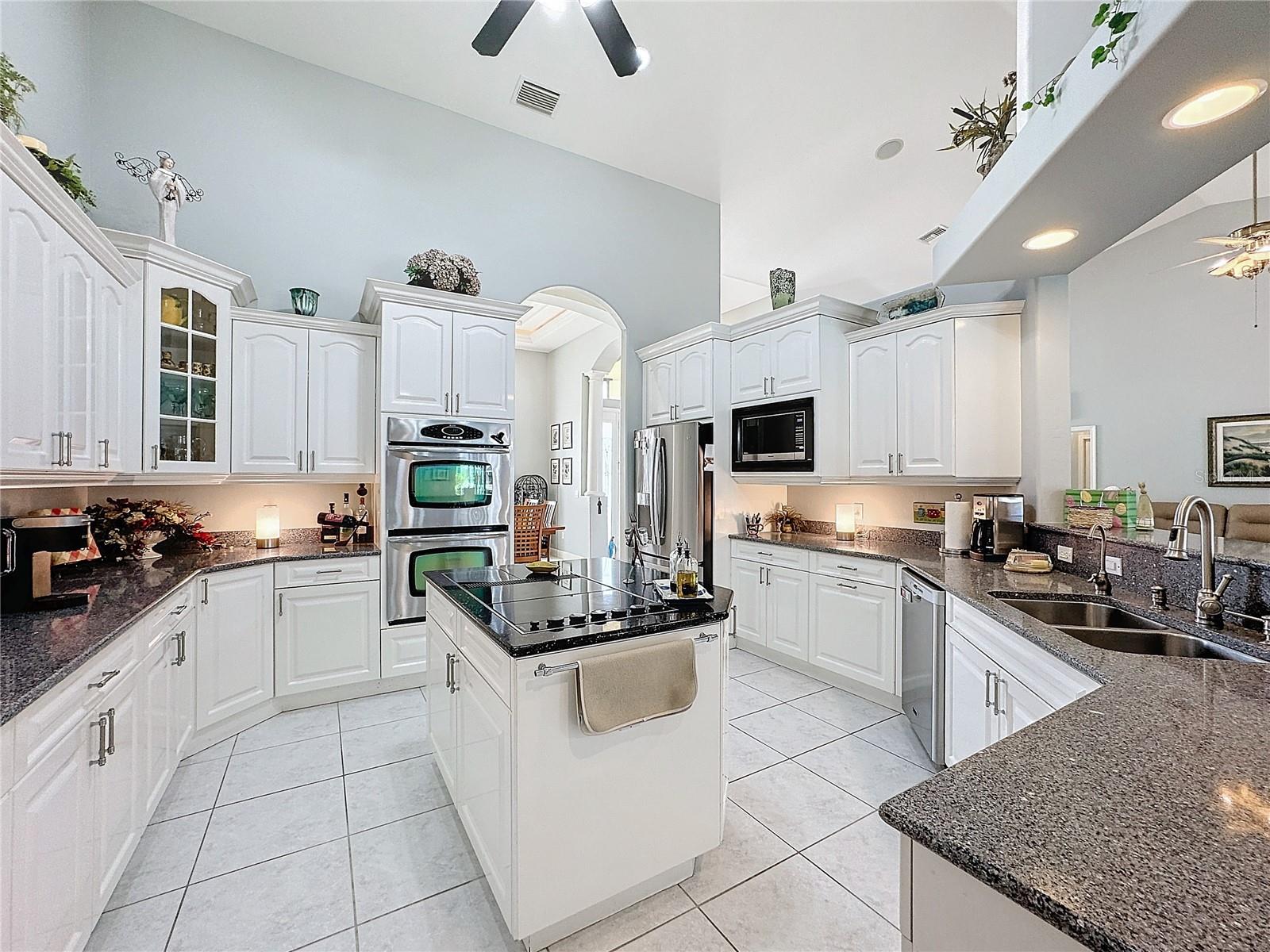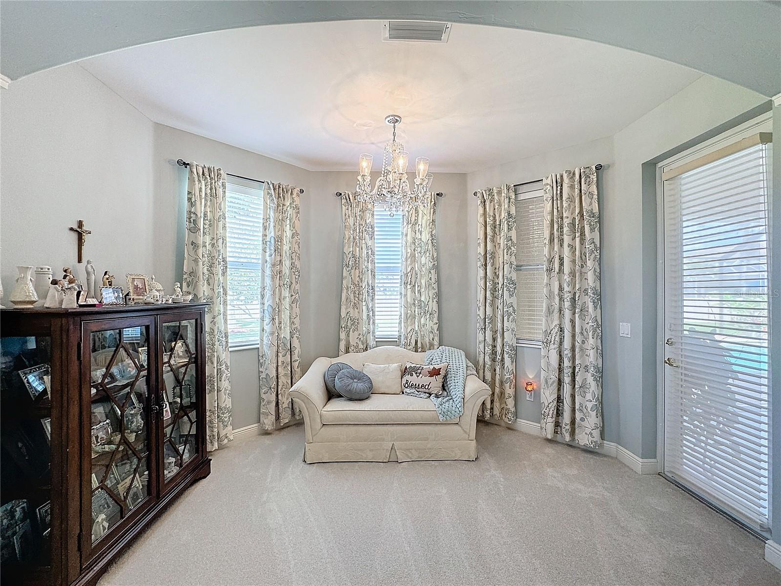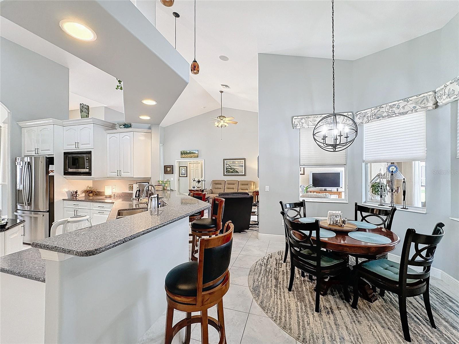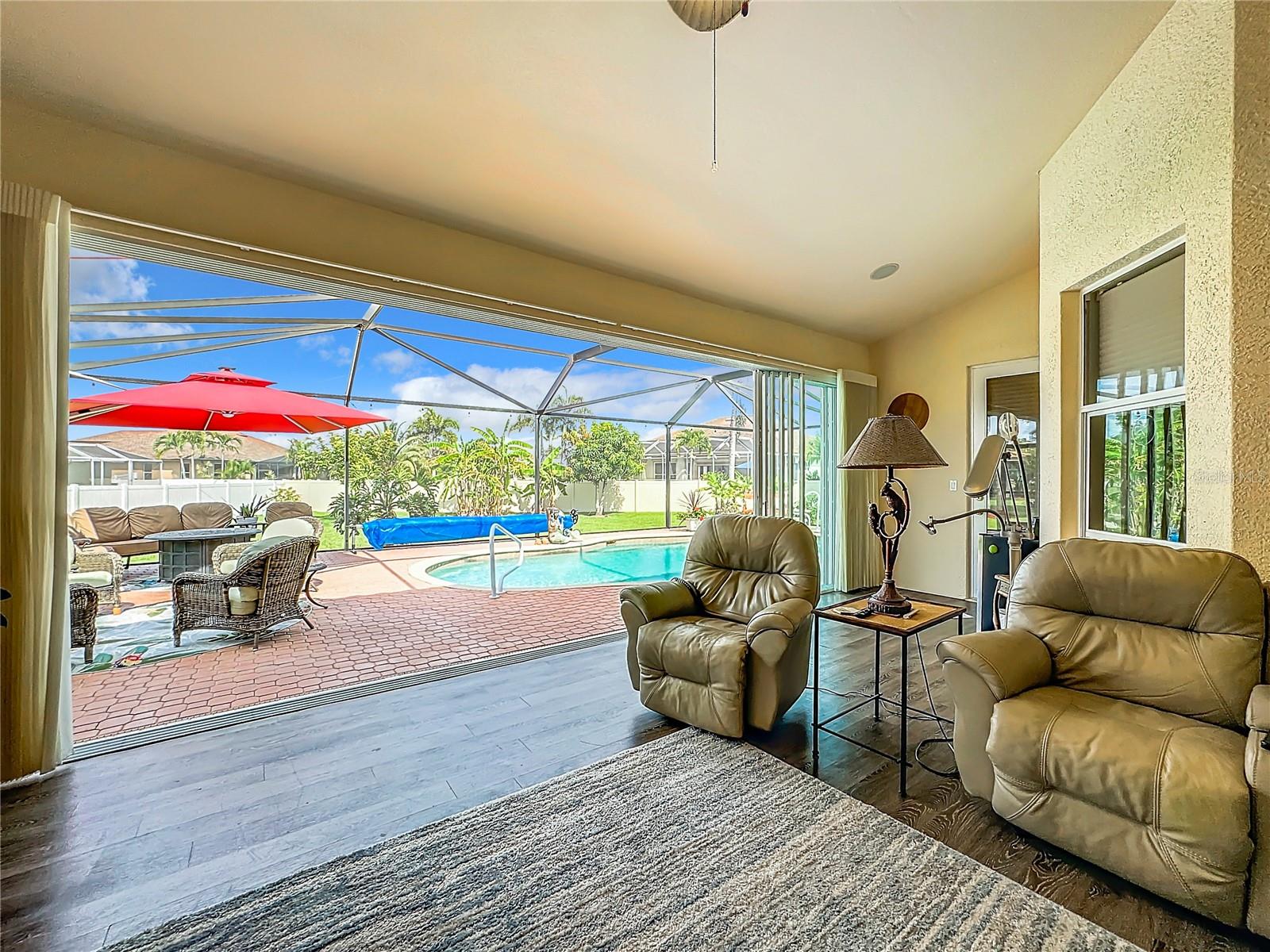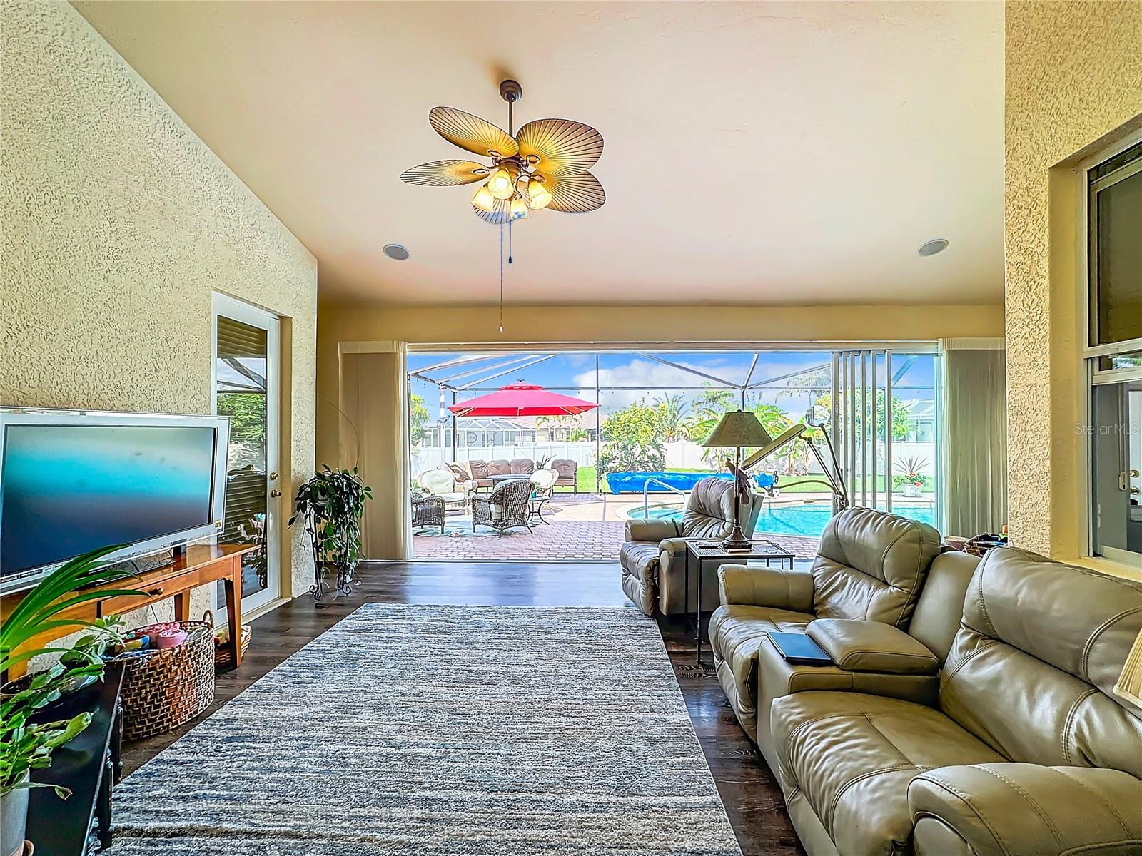 This stunning SW Cape Coral home with extensive 2023-2024 upgrades offers over 3,200 sq ft of living space, featuring 4 bedrooms, 2.5 baths, and a heated pool with spa. The residence boasts exquisite features, including grand 26-foot ceilings, a lavish primary suite, and additional bedrooms with a connecting bathroom. Recently upgraded with a new tile roof, pool enclosure, and fresh exterior and interior paint, all completed in 2023. The home also includes new bedroom carpeting, a pool heat pump, and a GE refrigerator installed in 2024, along with stylish new Ballard curtains. There’s a versatile separate room off the garage, perfect for an office or playroom. Safety and convenience are top priorities with a new ADP alarm system with cameras, hurricane impact windows, hurricane accordion doors for rear sliders, and a Duromax 13,000-watt whole-house generator. Additional highlights include a central vacuum system, internal pest control system, irrigation system, and built-in speakers in 3 rooms and outside. Every room is equipped with ceiling fans, with the garage and Florida room having air conditioning. The home is beautifully accented with alabaster and Austrian crystal chandeliers, and the screened front porch provides a welcoming entry. With no HOA fees and a southwest front exposure, this home blends luxury and practicality in a prime location.