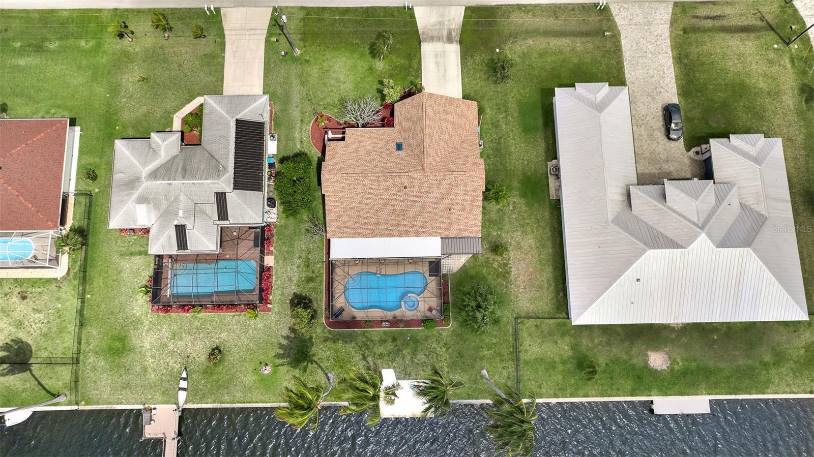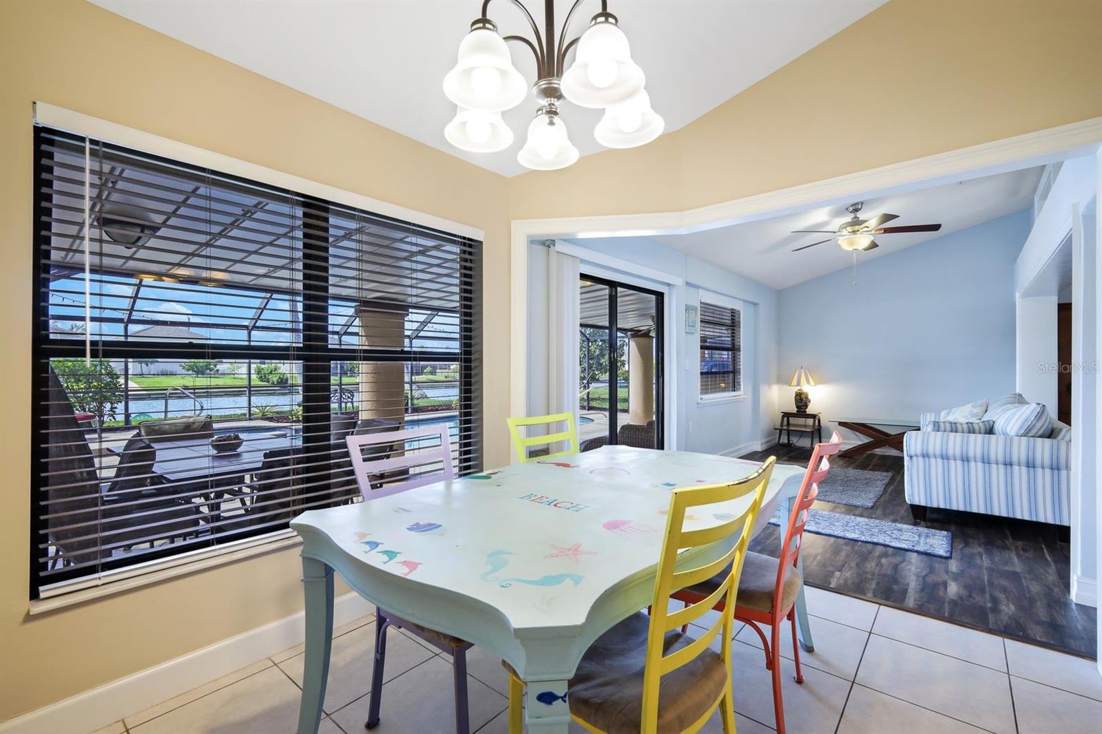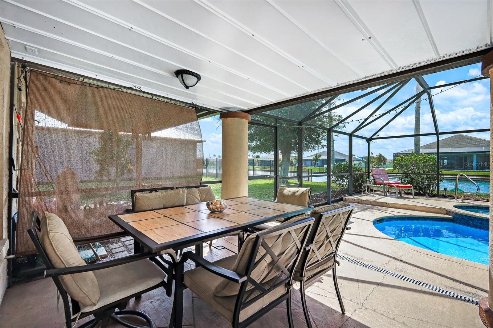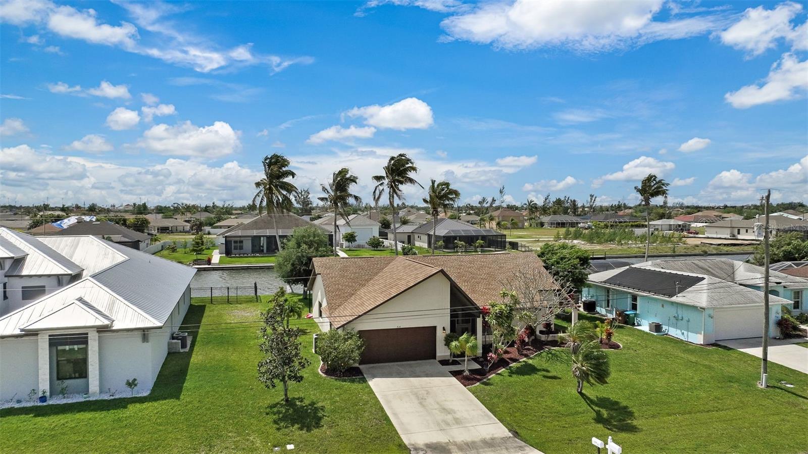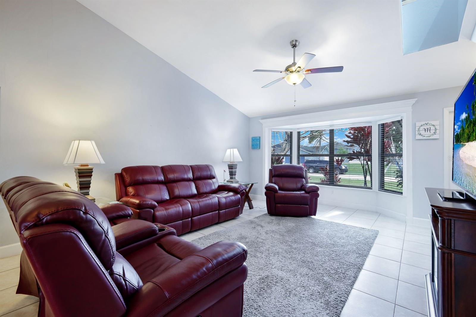 Bring all offers! Southern Exposure, wide water views and access to Chain of Lakes offering miles and miles of fresh water fun for ALL! This stunning property is situated overlooking 120 foot Escapade Canal ensuring WIDE WATER VIEWS throughout! Featuring 1818 sqft under air, 3 bedroom, plus den, 2 bathrooms and a 2 car garage. Step inside to discover a haven of comfort and style. Natural light pours in through the new skylight, highlighting the tile and acacia flooring that flows throughout the home. High ceilings create an airy ambiance in the split-bedroom layout, offering privacy and space for all occupants. Updated fans and light fixtures add a touch of contemporary flair to every room. The den provides a versatile space for work or relaxation, while inside laundry with shelving adds convenience to your daily routine. At the heart of the home is the kitchen and dining area designed for family gatherings. Features include granite counters, stainless steel appliances, and espresso cabinets which combine style with functionality, while a breakfast bar and breakfast nook offer casual dining options. A pantry provides ample storage space, while a glass mosaic backsplash adds a pop of color and sophistication to the space. Retreat to the luxurious master suite featuring crown molding, a vaulted ceilings, and shaker vanity. Dual sinks and exotic granite countertops offer a spa-like experience in the ensuite bathroom, complete with a large walk-in shower for ultimate relaxation. Outdoor living is what SWFL is all about and this home will not disappoint. Step onto the painted deck overlooking the sparkling blue pool and spa, perfect for relaxing or entertaining guests. The lanai features a custom bar area with granite counters invites gatherings and cocktails under the Florida sun. NOTEWORTHY: New Roof 2023, AC 2018, city water and sewer, Flood Zone X! Perfect for families, vacationers, 2nd home, part time or full time! Enjoy everything that SW FL has to offer - boat, sail, kayak, SUP, jet ski, fish or simply take a dip in your private oasis! See 3D tour, features list and schedule your private tour today!