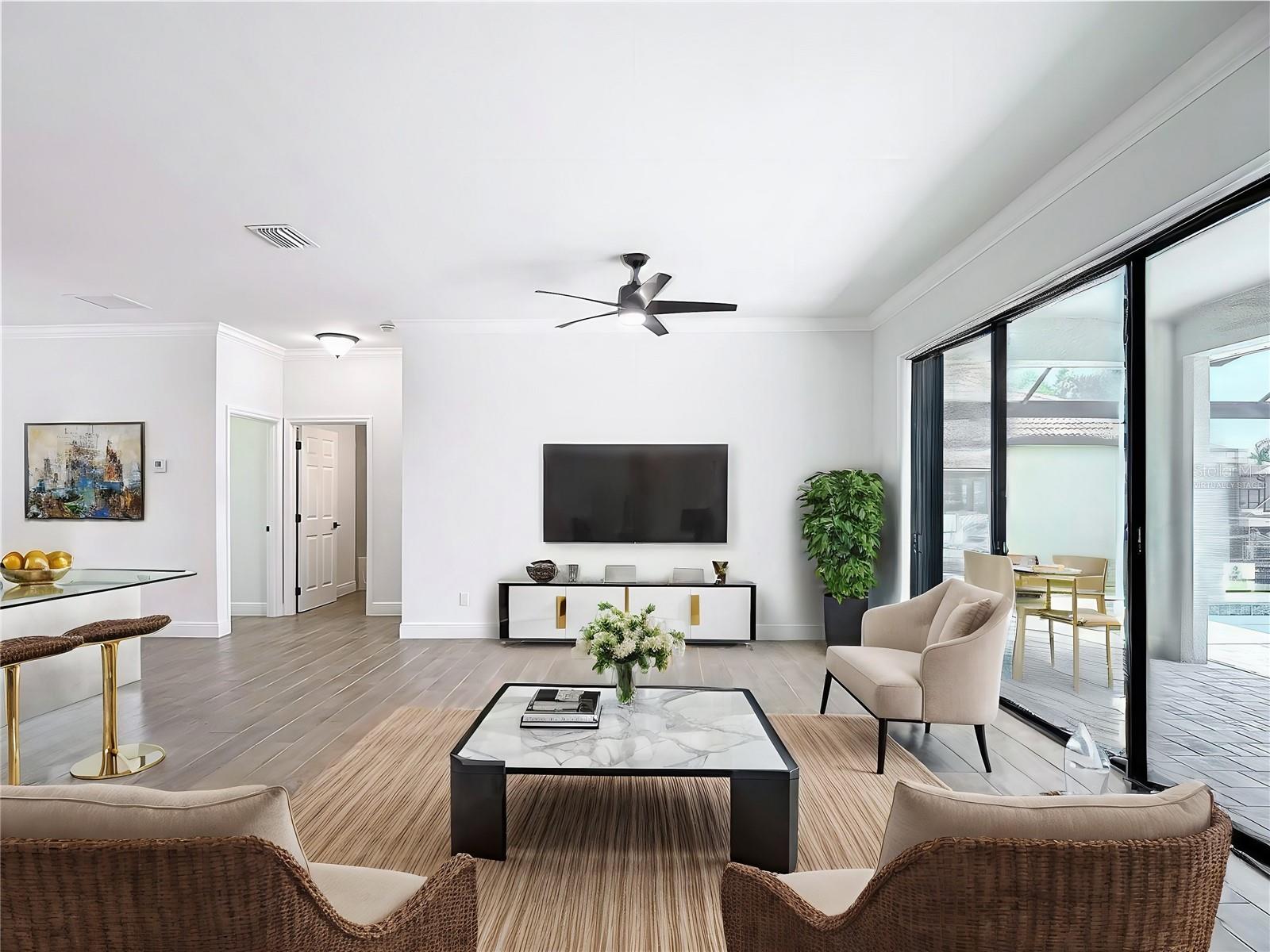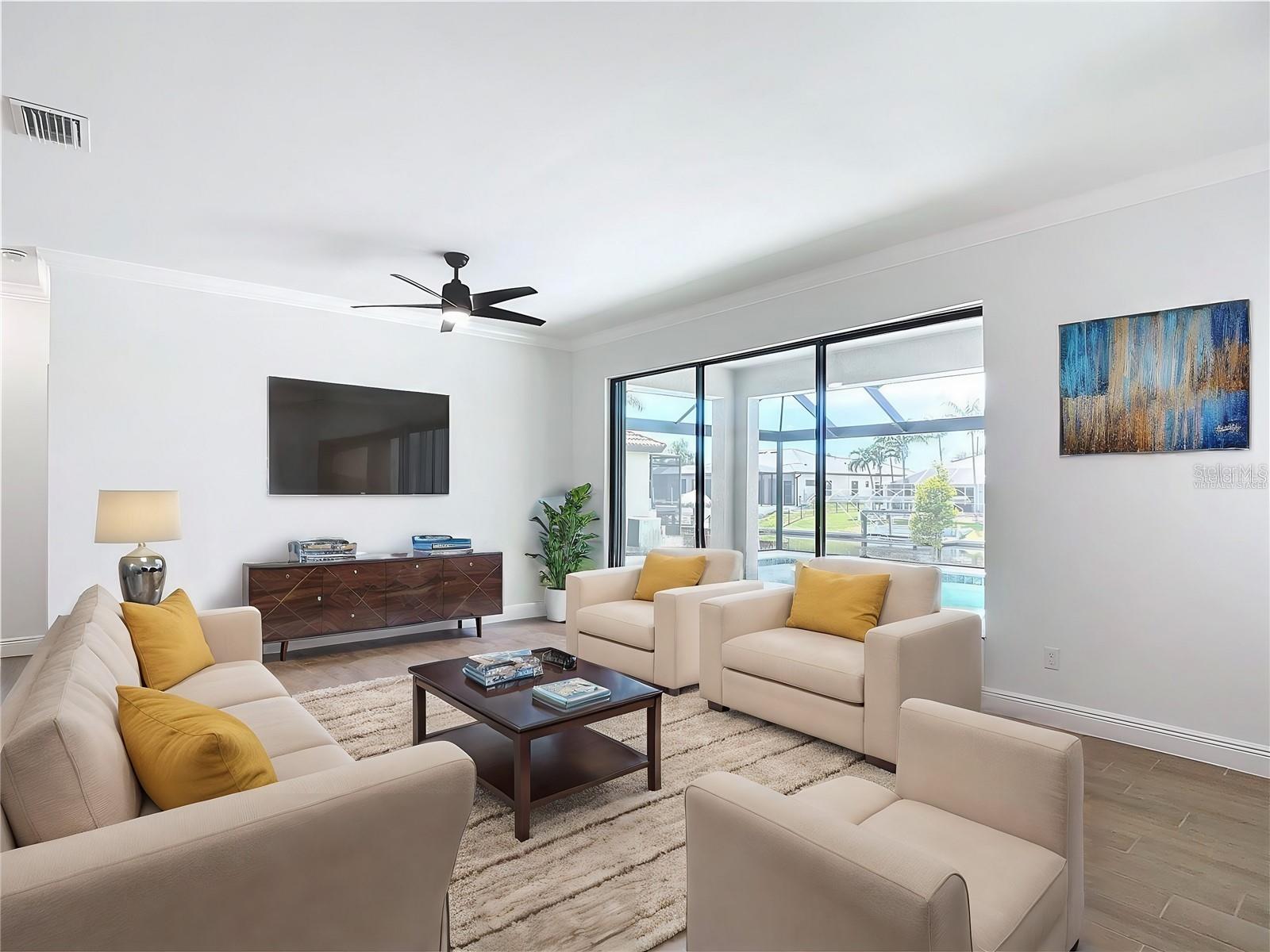 One or more photo(s) has been virtually staged. Discover your dream home at 4402 SW 3rd Avenue in the desirable Pelican neighborhood of Cape Coral! This brand new residence offers 3 bedrooms PLUS a spacious den (large enough to serve as an additional bedroom), making it perfect for families or those needing extra space. Step inside to experience a custom-designed interior featuring an open floor plan that radiates style and comfort. This home boasts numerous upgrades, including elegant crown molding, trendy matte black modern fixtures, and extra large sliders that provide panoramic views of the pool and tranquil canal. The thoughtful off-set design of the home allows for ample side yard and parking space. The outdoor living area is just as impressive! Enjoy sunny days lounging by the incredible pool, complete with a sun shelf and deck jets, perfect for relaxation and entertaining. The beautifully paved driveway enhances the home's curb appeal and welcomes you into your coastal oasis. Located in one of Cape Coral’s most welcoming communities, this home is an ideal setting for annual neighborhood gatherings and friendly interactions. Don’t miss out on the chance to live in this fantastic area while enjoying the luxury and convenience of Gulf access right from your backyard! Schedule your showing today and embrace the vibrant lifestyle that awaits you in Cape Coral!