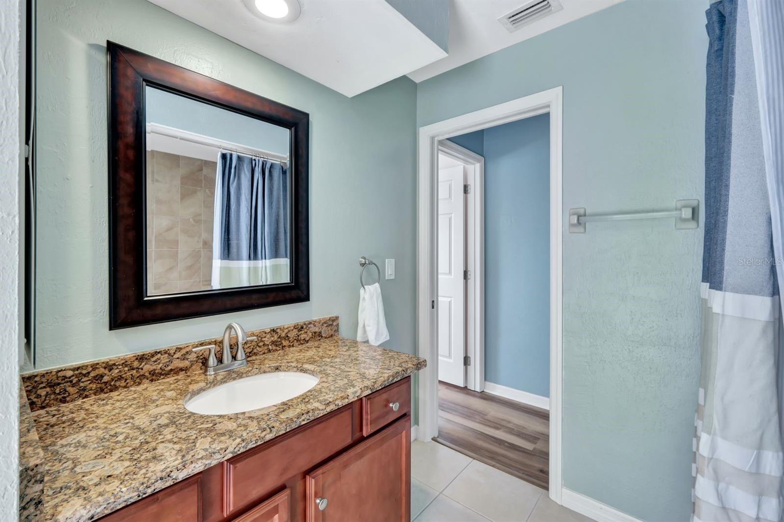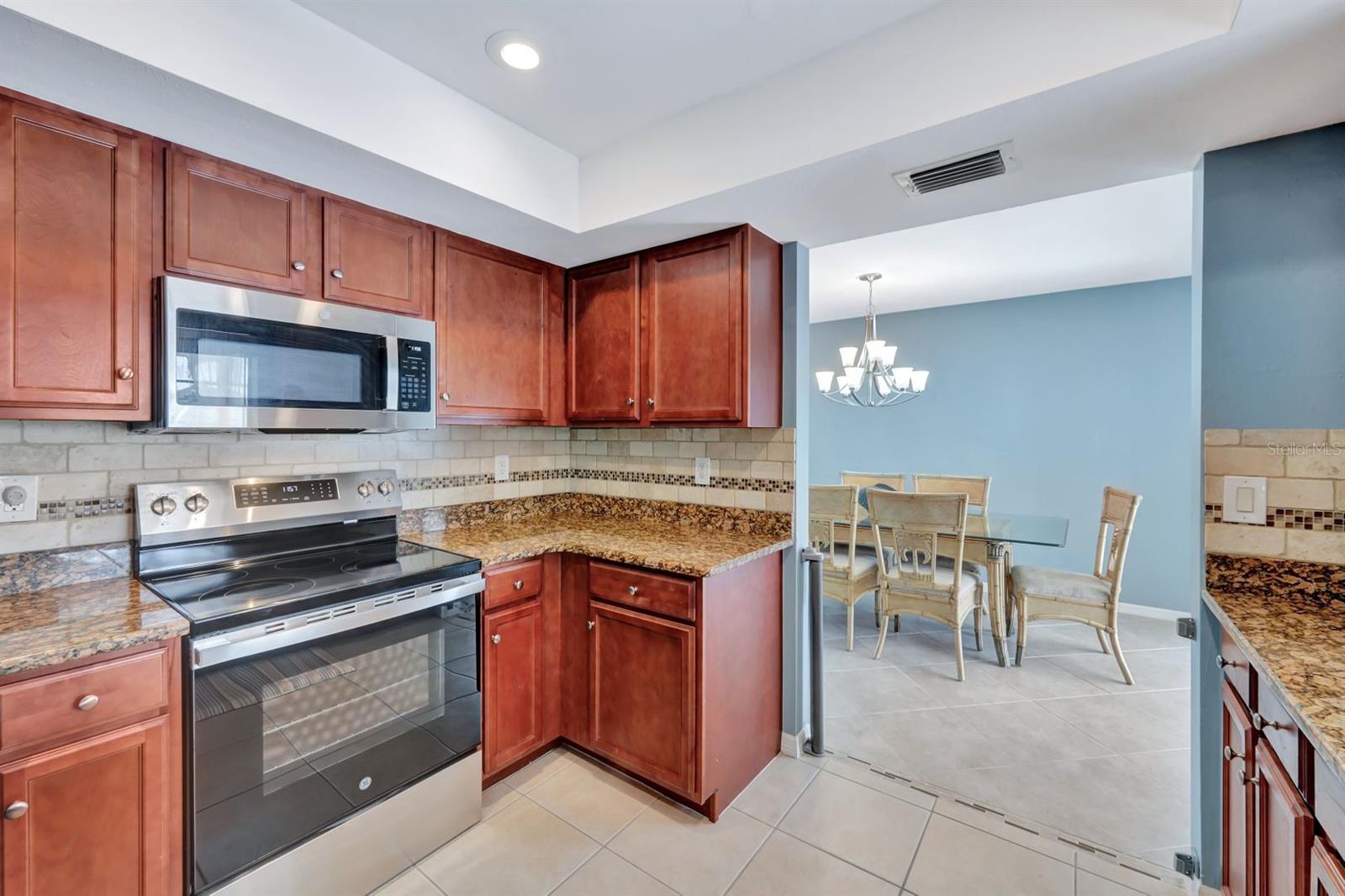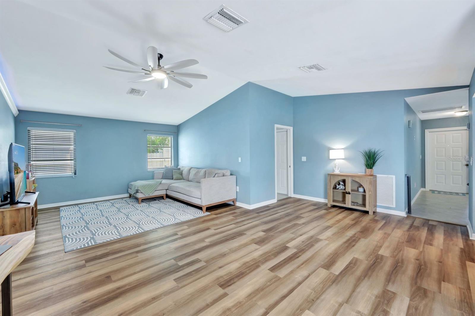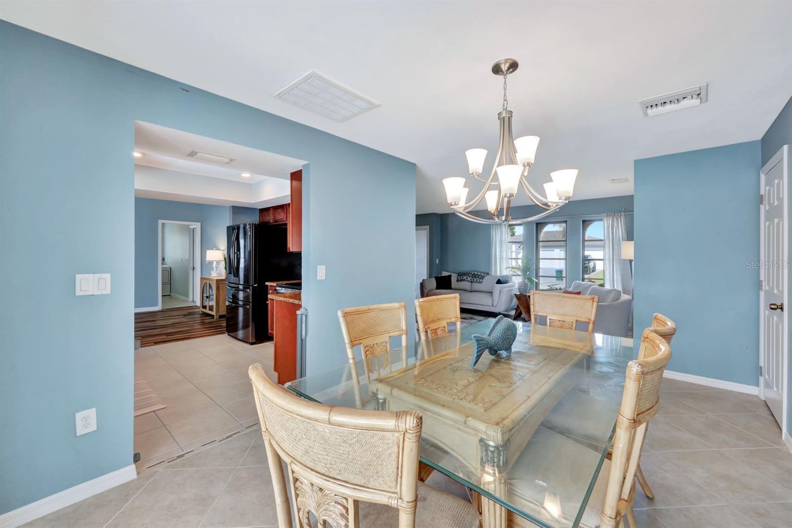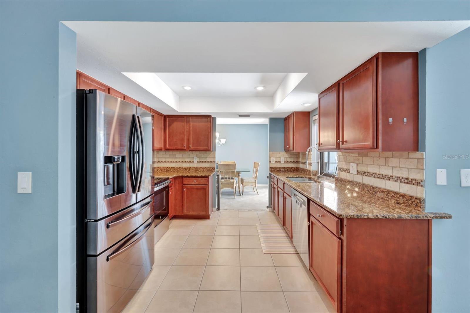 This stunning Southern Exposure pool home offers beautiful landscaping with recessed spotlights, decorative stamped curbing, marble chip rocks, and an irrigation system installed in 2022. The charming screened-in entryway welcomes you into a home featuring diagonal-stacked tile flooring with sleek transition strips and luxury vinyl plank in key areas, as well as fresh interior paint throughout. The kitchen boasts granite countertops, a stacked-stone backsplash with decorative inlay, a window overlooking the pool, wood cabinetry, recessed lighting, and a 2024 stainless steel appliance package. Vaulted ceilings with backlit crown molding enhance the living room, while the spacious laundry room includes a laundry sink for added convenience. The primary bedroom offers private pocket sliding doors leading to the pool area, a huge walk-in closet, and an en-suite bath with granite countertops and a floor-to-ceiling tiled shower. The outdoor space features a screened-in pool with a waterfall, freshly painted lanai flooring, and an outdoor bar area perfect for entertaining, all enclosed by a 6-foot privacy fence. Additional highlights include a new roof installed in 2022, a new HVAC system in 2023, updated electrical and water heater in 2023, a pool bath, and guest bedrooms with walk-in closets. This home is a perfect blend of style, comfort, and functionality, offering everything you need to enjoy the Southwest Florida lifestyle. Schedule your private showing today!