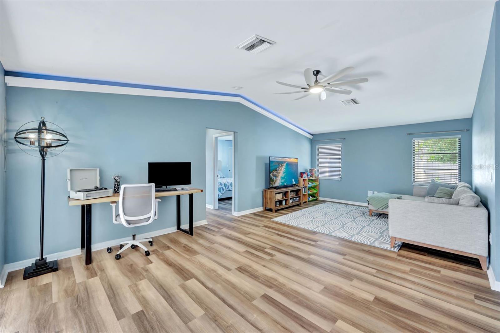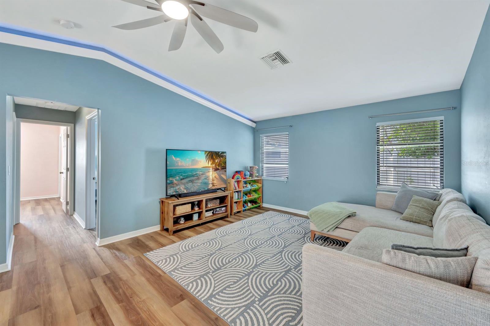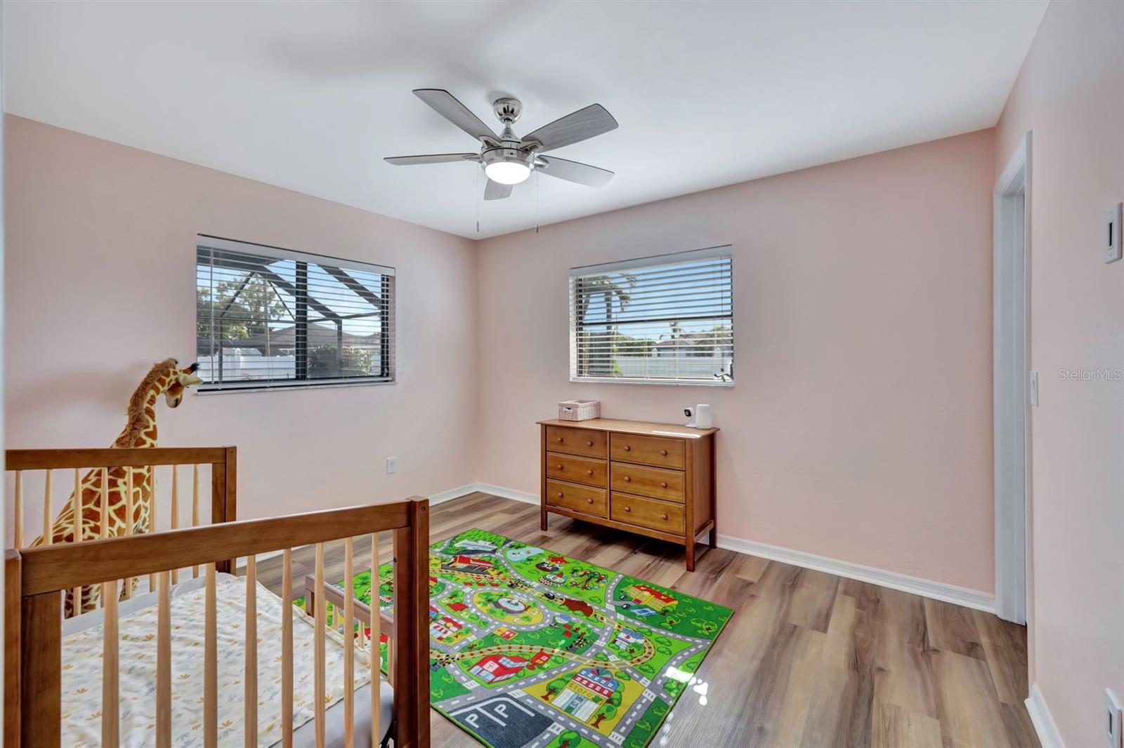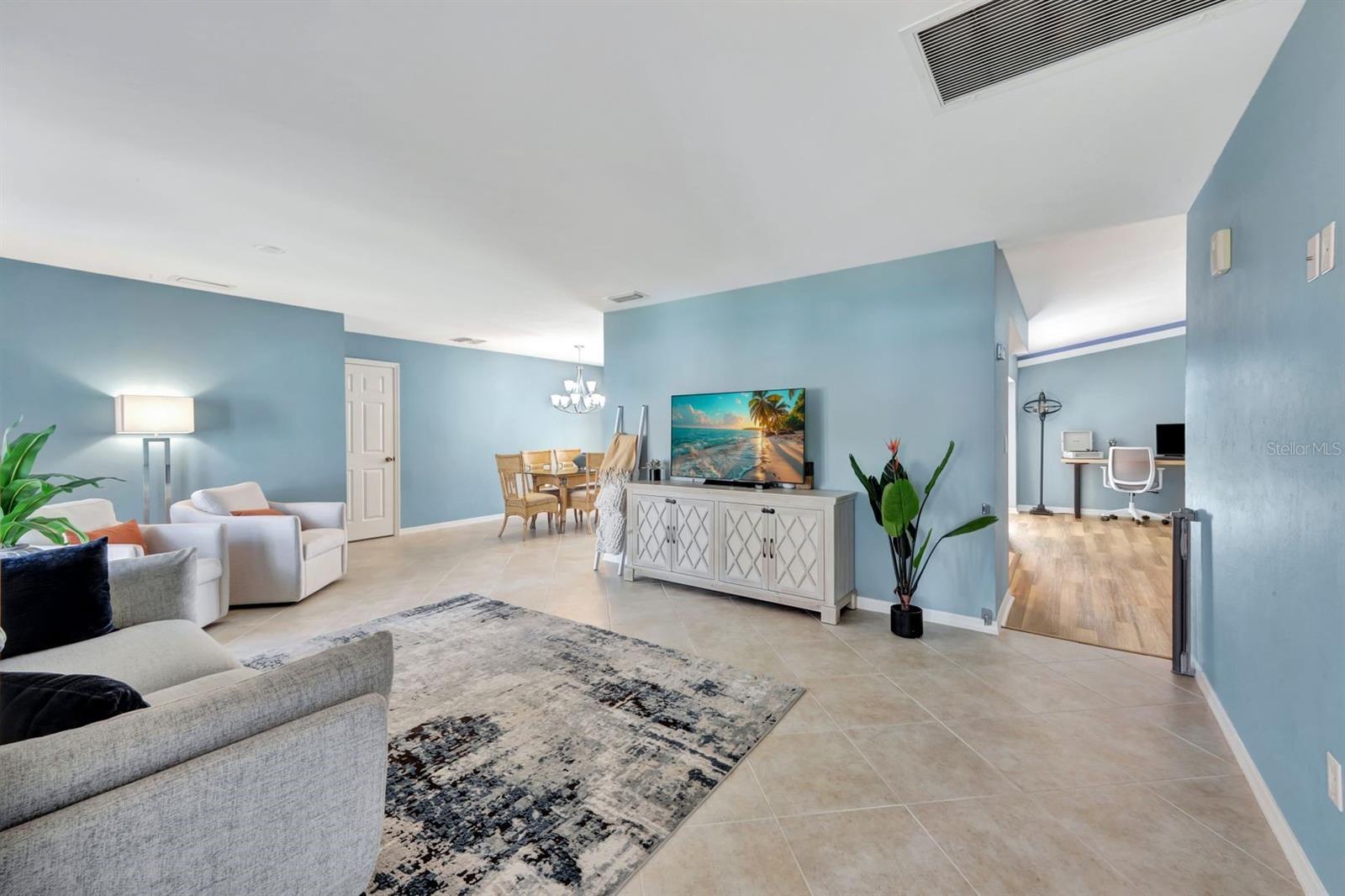 This stunning Southern Exposure pool home offers beautiful landscaping with recessed spotlights, decorative stamped curbing, marble chip rocks, and an irrigation system installed in 2022. The charming screened-in entryway welcomes you into a home featuring diagonal-stacked tile flooring with sleek transition strips and luxury vinyl plank in key areas, as well as fresh interior paint throughout. The kitchen boasts granite countertops, a stacked-stone backsplash with decorative inlay, a window overlooking the pool, wood cabinetry, recessed lighting, and a 2024 stainless steel appliance package. Vaulted ceilings with backlit crown molding enhance the living room, while the spacious laundry room includes a laundry sink for added convenience. The primary bedroom offers private pocket sliding doors leading to the pool area, a huge walk-in closet, and an en-suite bath with granite countertops and a floor-to-ceiling tiled shower. The outdoor space features a screened-in pool with a waterfall, freshly painted lanai flooring, and an outdoor bar area perfect for entertaining, all enclosed by a 6-foot privacy fence. Additional highlights include a new roof installed in 2022, a new HVAC system in 2023, updated electrical and water heater in 2023, a pool bath, and guest bedrooms with walk-in closets. This home is a perfect blend of style, comfort, and functionality, offering everything you need to enjoy the Southwest Florida lifestyle. Schedule your private showing today!