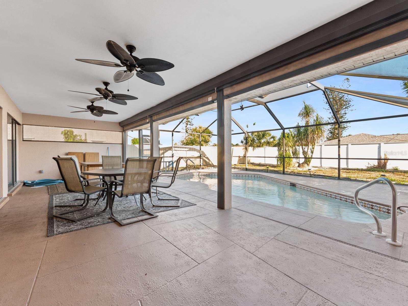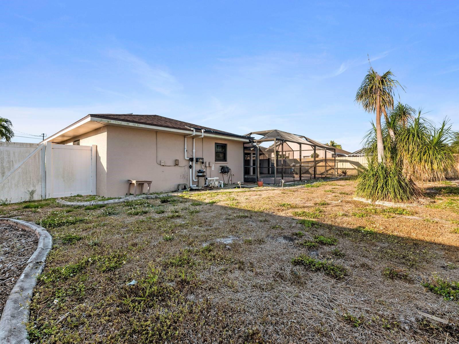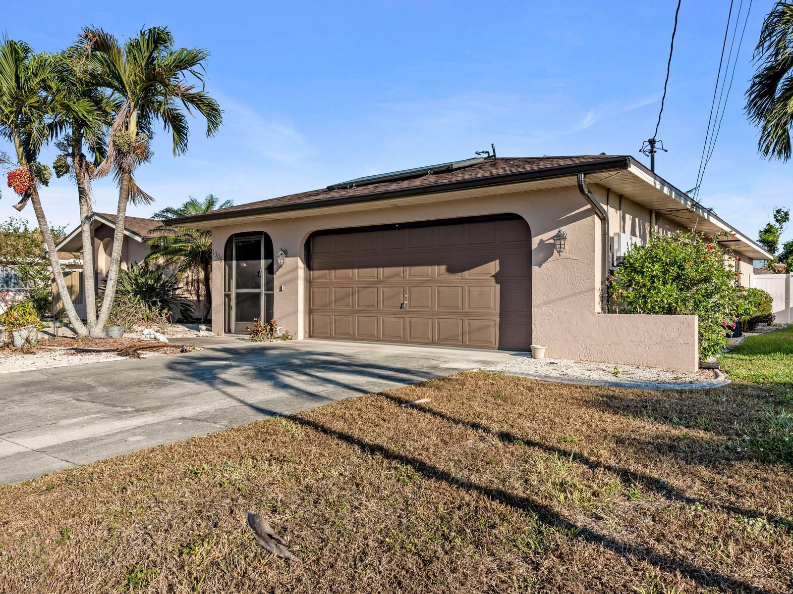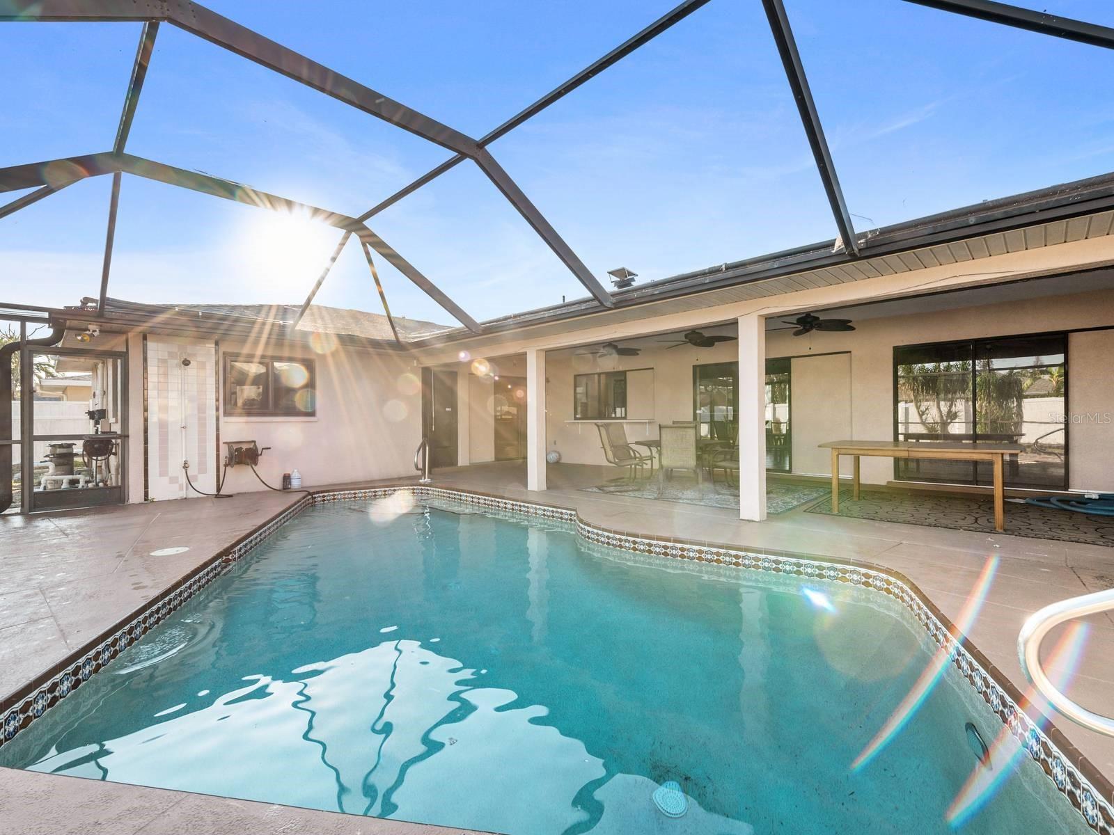 Fabulous Spacious single-family home Pool home in the quaint community of Cape Coral. Not in a Flood Zone! This home is over 1800 square feet, 3 Bedrooms, 2 Full Bathrooms, SOLAR PANELS and situated on almost 1/4 of an acre! Open Floor Plan with neutral colors and lots of natural light throughout. Step inside the double doors and your greeted with a large living room which features ceramic tile floors and a ceiling fan. Continue to the kitchen, which was remodeled in 2021 with custom designs, touches and colors, including the additional of a huge walk-in pantry and bar for in kitchen seating. Adjacent is the family room which overlooks the covered Lanai and large pool. Enjoy your private swimming pool worry free of harsh chemicals because the pool on a 'Salt Water" System, utilizing salt that converts to chlorine, and this is much gentle on your skin, hair and clothes. Hurricane impact windows and doors were added in 2016 for efficiency and can reduce your homeowner's insurance. Hurricane proof screen shades were added as well to the lanai for privacy. All 3 bedrooms have walk-in closets and ceiling fans. The split plan primary bedroom is separated from the other 2 bedrooms. The primary ensuite features double closets and sinks, separate commode and a Step-In-Tub, which was added in 2022. The Solar Panels will help save you money on your utility bills. The ROOF was replaced in 2022! The A/C was replaced in 2023! Close to shopping. restaurants and lovely downtown Cape Coral. Pride in Ownership shows in this well maintained and upgraded property, with over $100,000 within the past few years along! Everything has been done for your and this property is spectacular! All you need to do is unpack and enjoy the Florida lifestyle! Welcome Home!