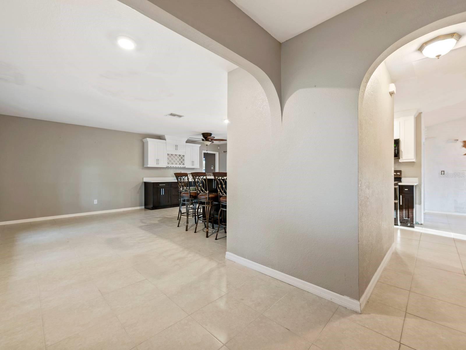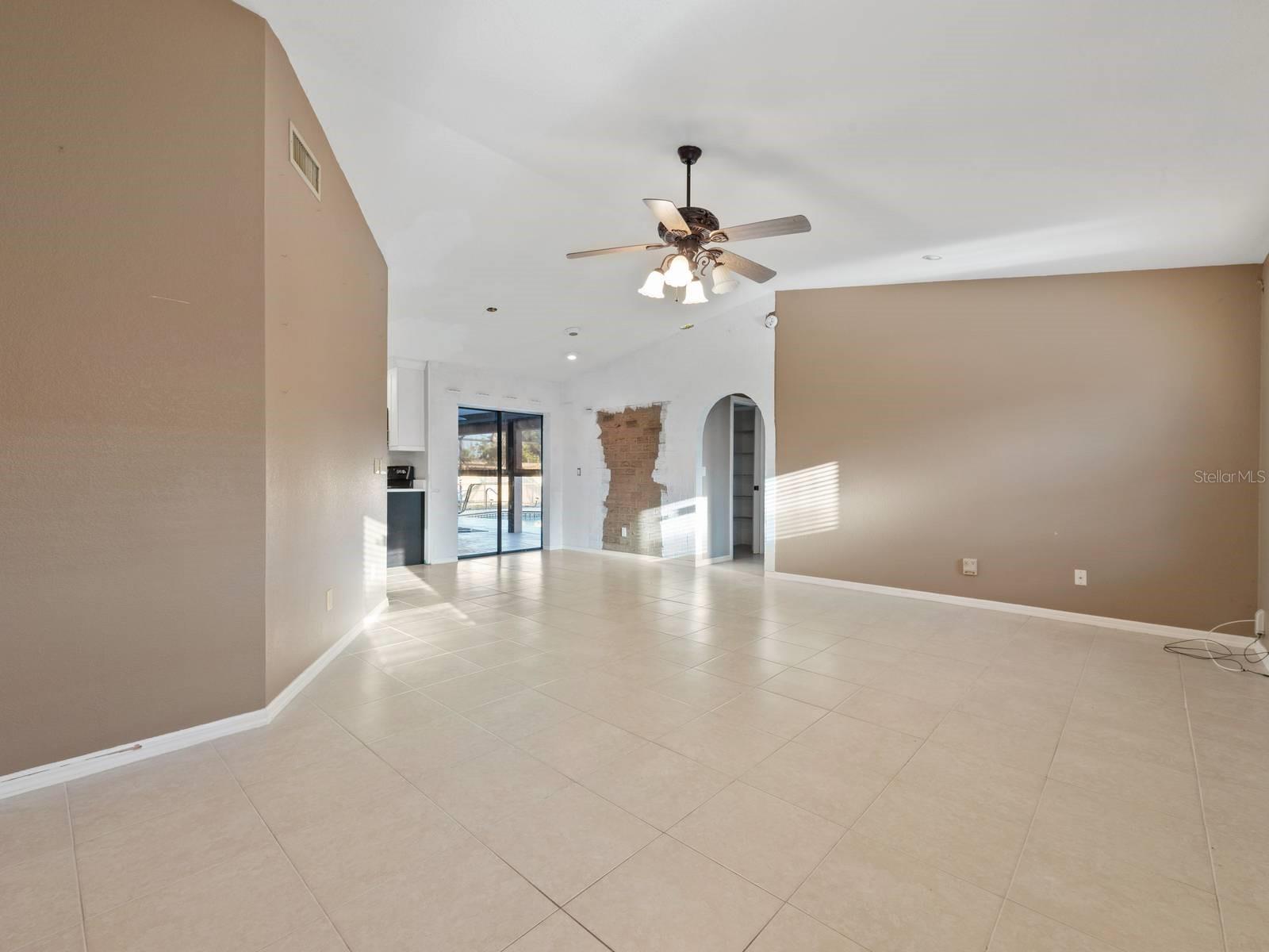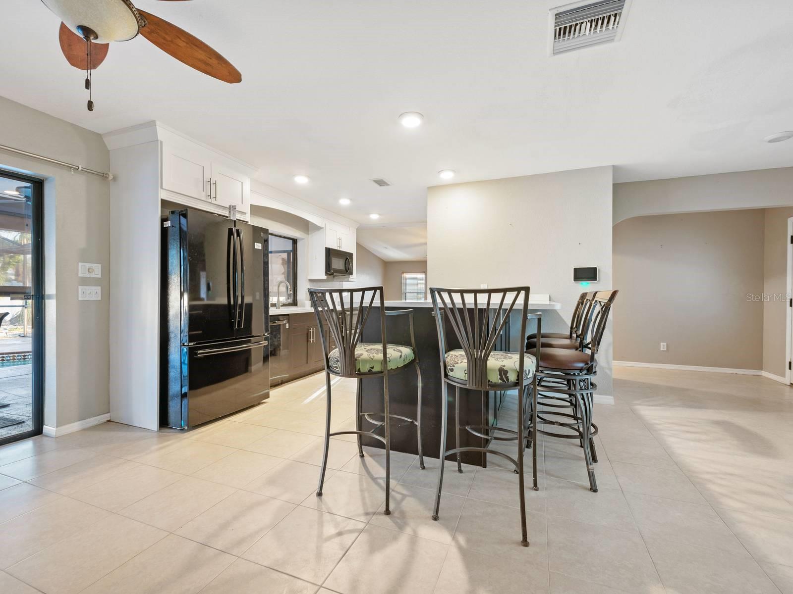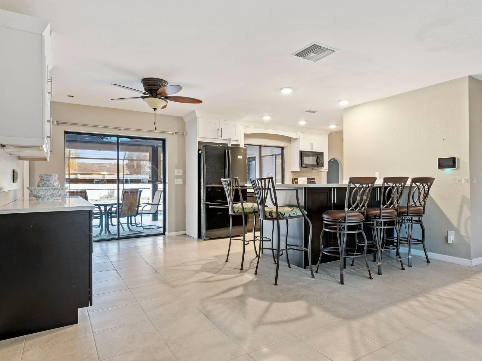 Fabulous Spacious single-family home Pool home in the quaint community of Cape Coral. Not in a Flood Zone! This home is over 1800 square feet, 3 Bedrooms, 2 Full Bathrooms, SOLAR PANELS and situated on almost 1/4 of an acre! Open Floor Plan with neutral colors and lots of natural light throughout. Step inside the double doors and your greeted with a large living room which features ceramic tile floors and a ceiling fan. Continue to the kitchen, which was remodeled in 2021 with custom designs, touches and colors, including the additional of a huge walk-in pantry and bar for in kitchen seating. Adjacent is the family room which overlooks the covered Lanai and large pool. Enjoy your private swimming pool worry free of harsh chemicals because the pool on a 'Salt Water" System, utilizing salt that converts to chlorine, and this is much gentle on your skin, hair and clothes. Hurricane impact windows and doors were added in 2016 for efficiency and can reduce your homeowner's insurance. Hurricane proof screen shades were added as well to the lanai for privacy. All 3 bedrooms have walk-in closets and ceiling fans. The split plan primary bedroom is separated from the other 2 bedrooms. The primary ensuite features double closets and sinks, separate commode and a Step-In-Tub, which was added in 2022. The Solar Panels will help save you money on your utility bills. The ROOF was replaced in 2022! The A/C was replaced in 2023! Close to shopping. restaurants and lovely downtown Cape Coral. Pride in Ownership shows in this well maintained and upgraded property, with over $100,000 within the past few years along! Everything has been done for your and this property is spectacular! All you need to do is unpack and enjoy the Florida lifestyle! Welcome Home!