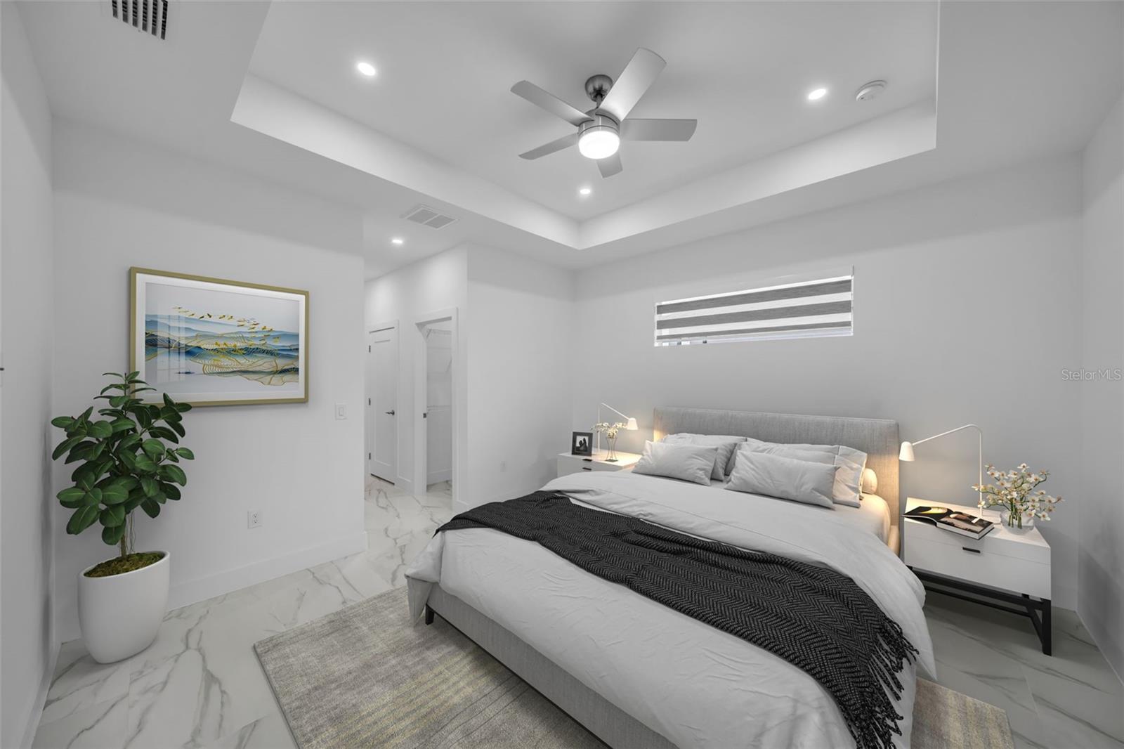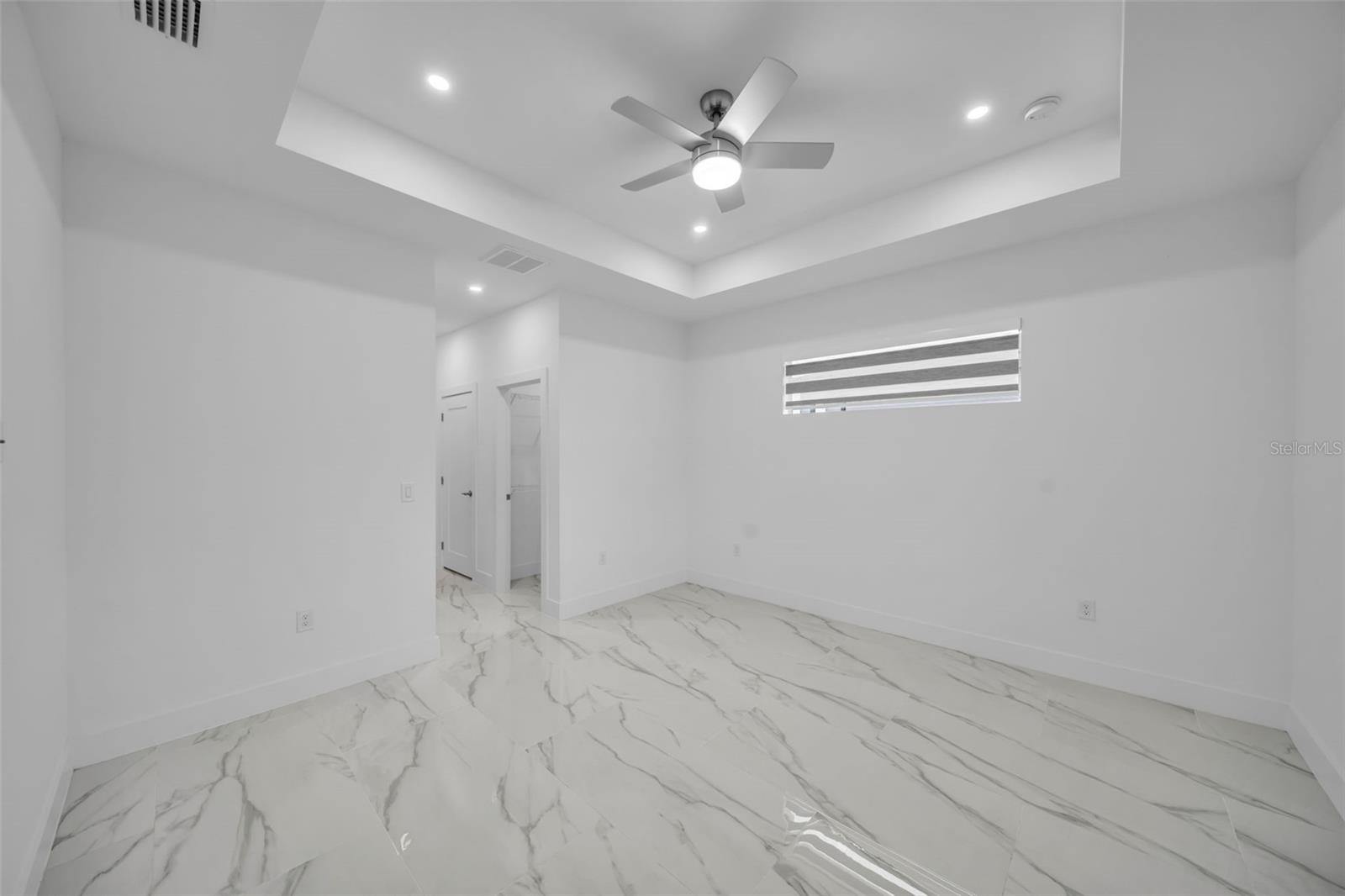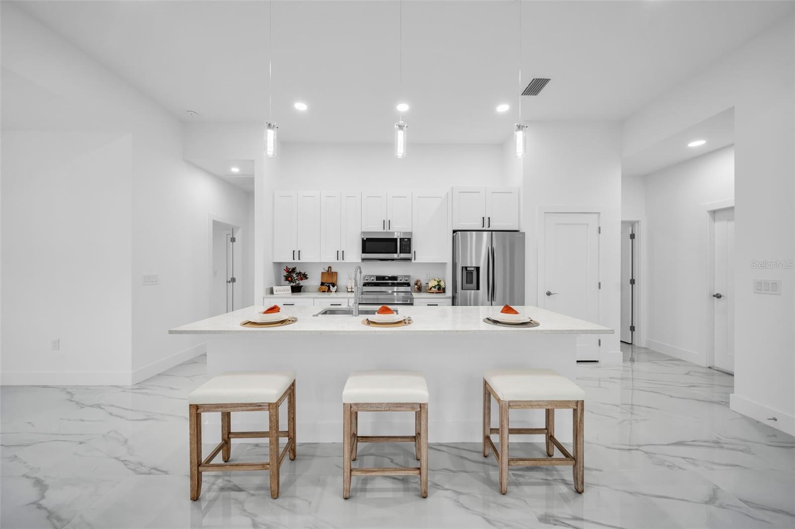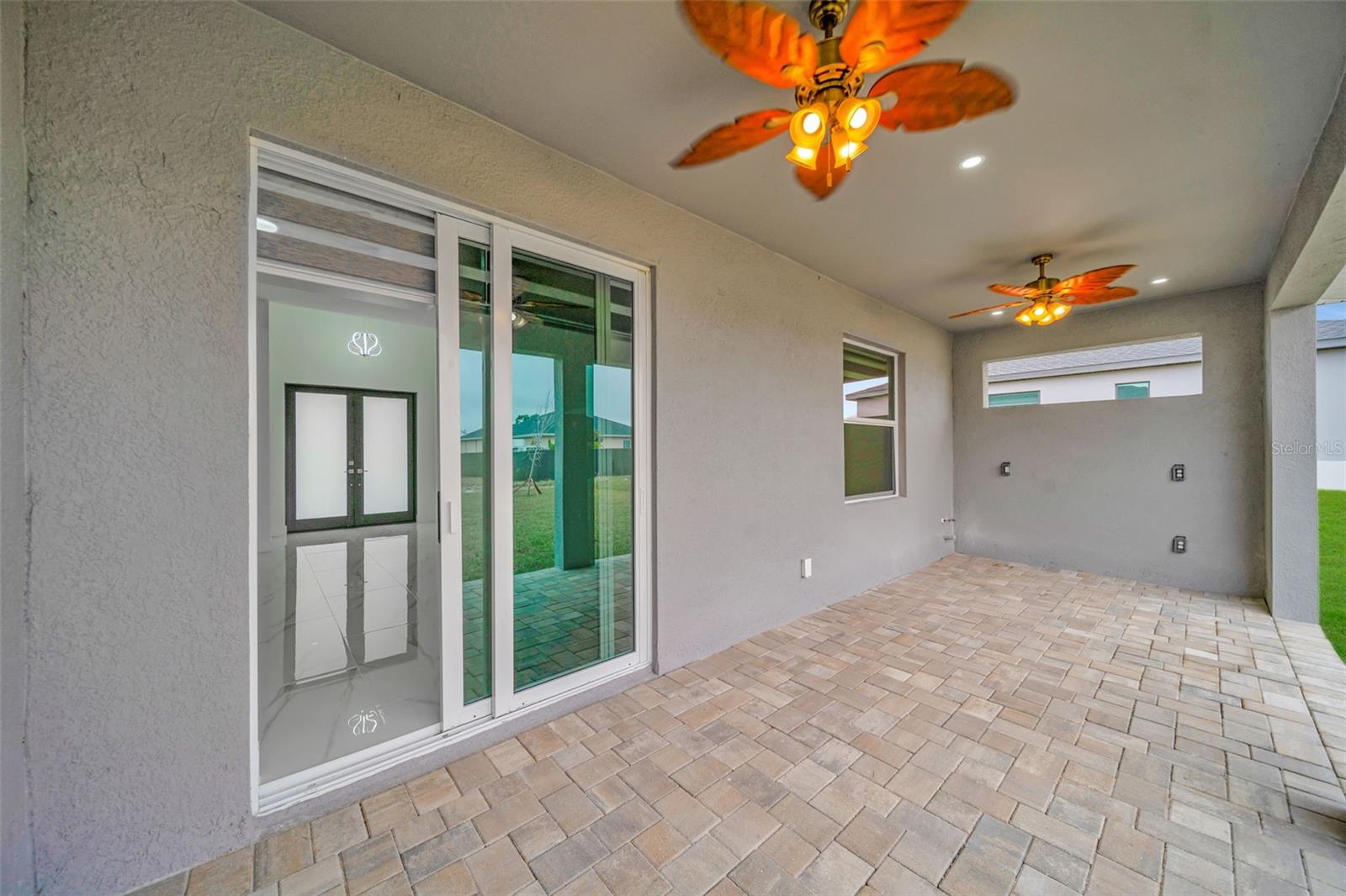 Modern Elegance, Brand-New Construction in Cape Coral, Fl. Be the first to own this stunning home. Featuring 3 bedrooms, a versatile Den, 2 bathrooms, and an open floor plan. This home boasts porcelain tile floors and a sleek knockdown finish with crisp light color paint. The chef-inspired kitchen includes solid wood cabinets, stainless steel Samsung appliances, a garbage disposal, and a modern stainless-steel sink. Bathrooms feature brushed nickel fixtures and tiled shower enclosures. The master bathroom features a separate tiled walking shower and freestanding bathtub. Enjoy soaring coffered ceilings. Additional highlights include energy-efficient impact and Low-E windows, LED lighting, ceiling fans room, and a digital thermostat. The outdoor space is perfect for entertaining with an equipped gas outdoor stainless-steel kitchen and generous open lanai. Low-voltage pre-wired for TV and internet, this home is stylish and functional, offering comfort and convenience. For your comfort and privacy, every window has beautiful and elegant blind zebra shade, gray color. NO IN A FLOOD ZONE AREA. This makes a huge difference!