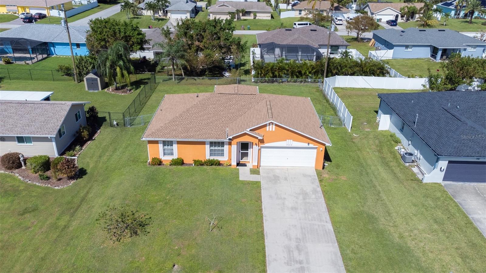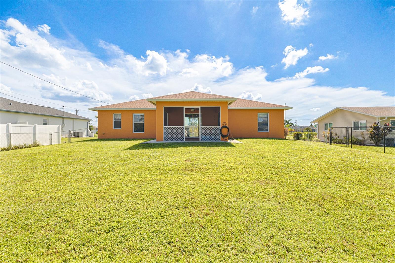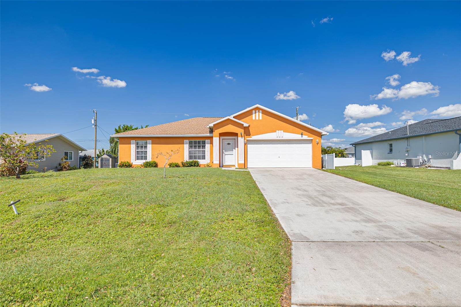 Welcome home! Ideally located in the heart of the SE Cape Coral area, this home has an open-concept floor plan with split bedrooms. It allows the home to flow effortlessly from the living room to the kitchen and into the enclosed lanai. The home features include cathedral ceilings, modern tile, and vinyl flooring, making it easy to maintain and perfect for Florida living. The home has a new roof as of 2023 and a new AC in 2023. Assessments are in and paid, and it is in a no-flood zone. It is eight minutes from the most popular park, Saratoga Lake Park. Close to schools, Sunsplash Water Park, Sam's Club, BJ's, Publix, and more.
