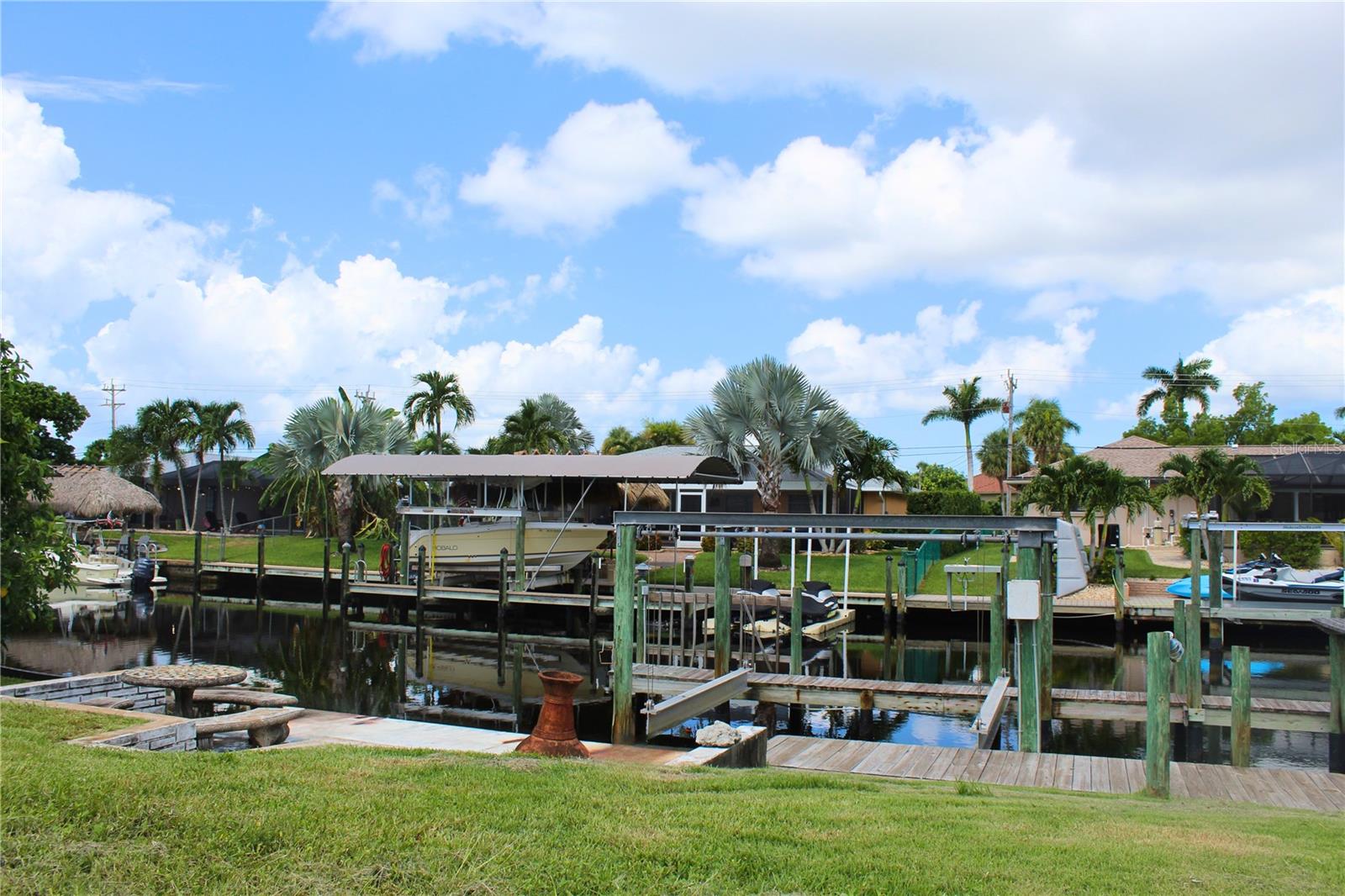 Gulf Access Pool Home – PRIME LOCATION - No Bridges Just Minutes to Open Water! SELLER WILL CONSIDER - LEASE/RENTAL (3 MONTH MIN INQUIRE FOR DETAILS) - LEASE TO OWN - OR CREATIVE FINANCING! Welcome to this beautifully updated 3-bedroom, 2-bathroom waterfront home located in one of Cape Coral’s most desirable boating communities. With direct sailboat access—no bridges or locks—you’re just minutes from the pristine flats or open Gulf waters. This home has been thoughtfully upgraded inside and out, featuring a 2-year-old tile roof, newer pool equipment, updated plumbing and electrical systems, solid HVAC, Brand New Garage Door, and all-new cosmetics throughout including Pergo Luxury flooring—offering peace of mind and style for years to come. The bright and open split-bedroom floor plan includes a formal foyer into your spacious great room/dining area with built in bar, and a tastefully upgraded kitchen with Frigidaire Gallery Line stainless steel appliances, Real granite countertops, and ample Solid wood cabinetry—perfect for entertaining or everyday living. Both bathrooms have been fully remodeled and feature dual vanities, modern finishes, and clean design. The guest bedrooms are generously sized with spacious closets, while the primary suite offers a en-suite bath with walk-in shower, large walk-in closet, linen closet, and private access to the lanai. Step outside to your own private oasis, complete with a huge gunite/concrete pool, expansive sun deck, Tiki Hut and lush tropical landscaping. The waterfront is equally impressive, a 10,000 LB Boat lift ample dock with water and electric, and a solid seawall with an extended concrete fishing pier and deck —ideal for serious boaters or weekend cruisers. All major updates are complete—just bring your boat and move right in. Whether you're relaxing poolside, fishing from your dock, or heading out for a sunset cruise, this home delivers the full Florida lifestyle.
