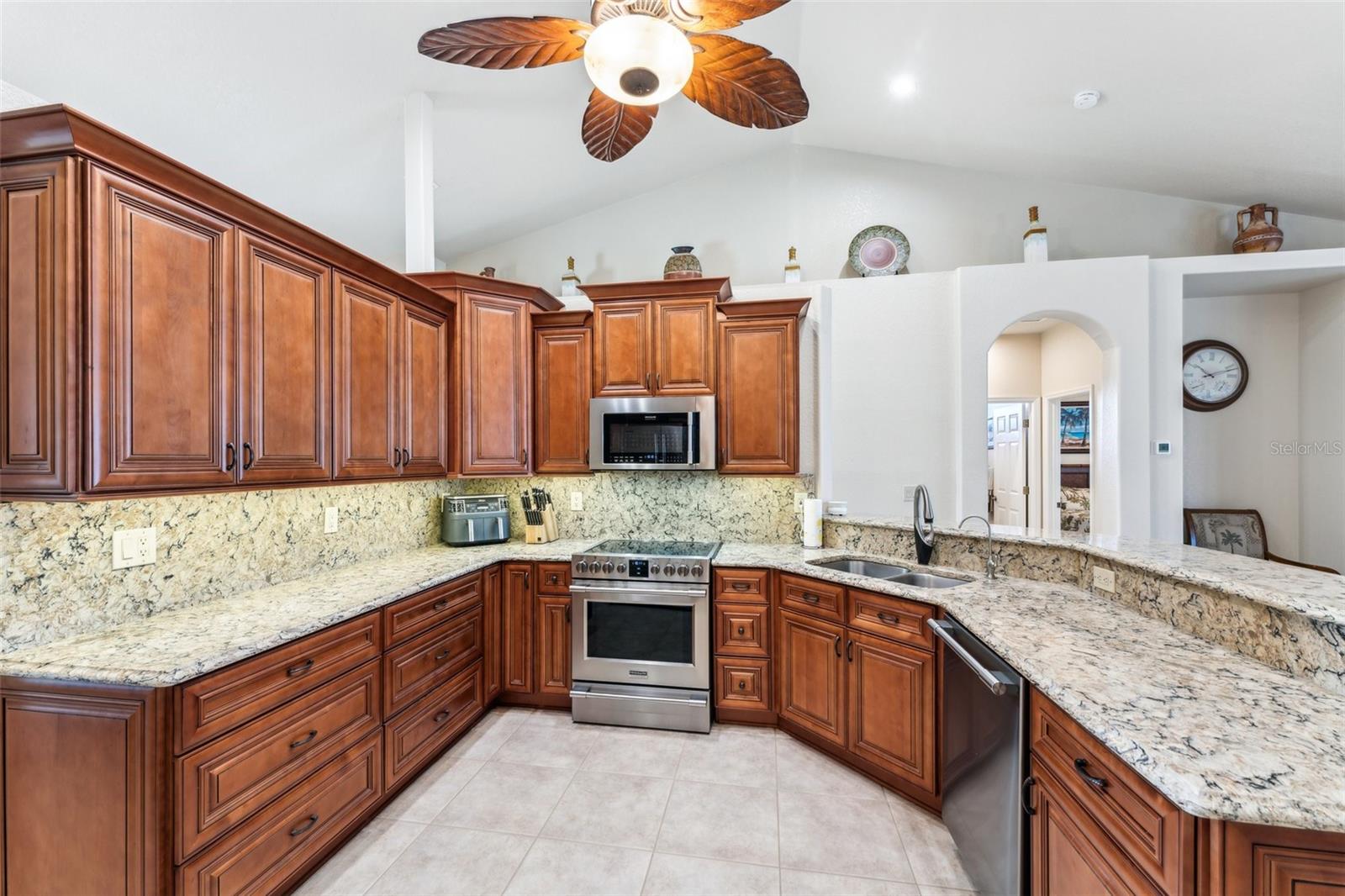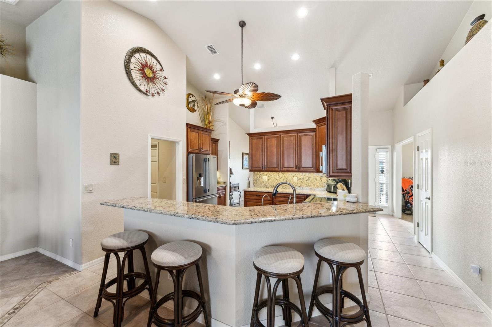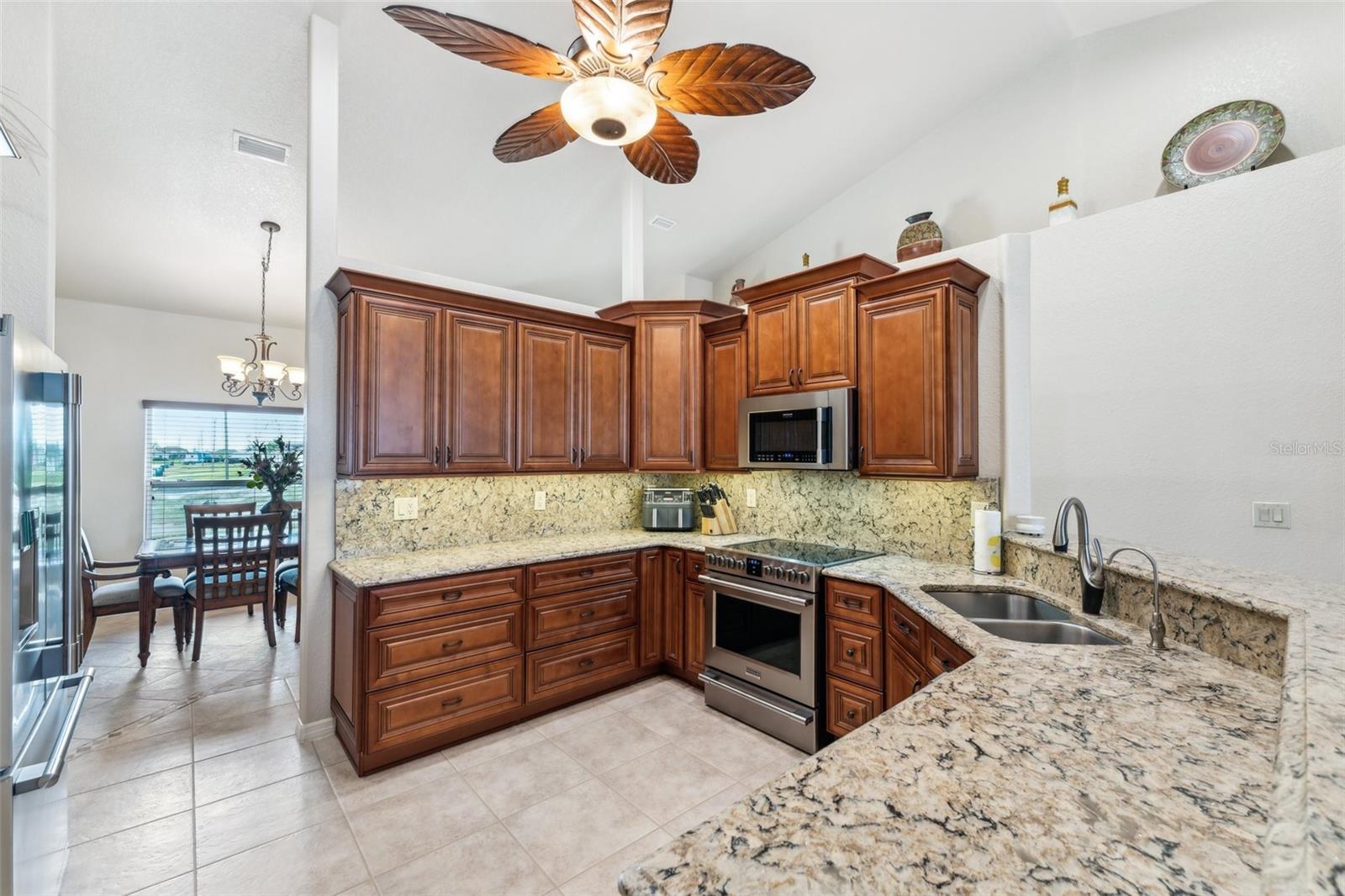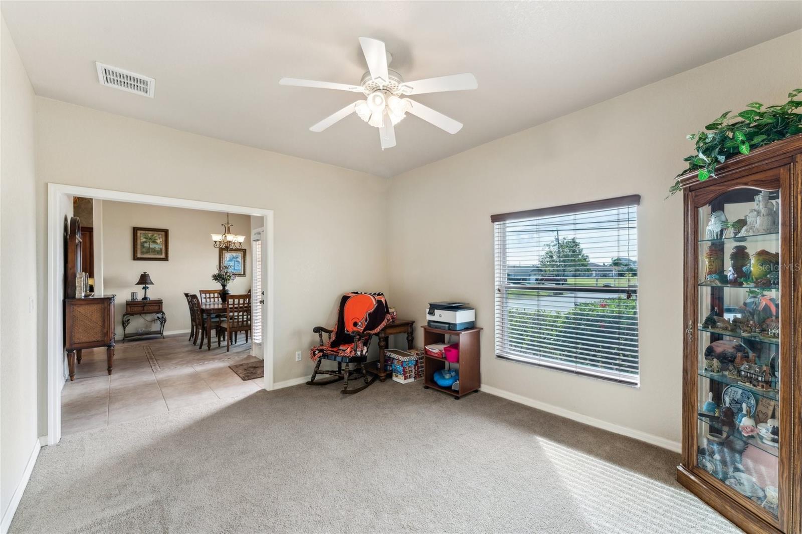 Enter into this light-filled 3-bedroom + den, 2-bathroom pool home with no HOA, featuring peace of mind with no flood history and new hurricane-rated windows throughout. Originally the builder's model, this impeccably maintained home blends luxury and practicality. Premium upgrades include matching wood window blinds, ambient lighting in the tray ceiling of the primary suite, and anti-slip upgraded floor tile in the main living areas. The recently remodeled kitchen by Academy is a standout, with high-end cabinets, a coffee bar, Cambria quartz countertops and backsplash, a Frigidaire Professional appliance suite, and a breakfast bar. Adjacent, the spacious living room and formal dining area provide an inviting space for entertaining, while the versatile den/flex room offers additional functionality. The private primary suite features lanai access, a huge walk-in closet, dual vanities, and a walk-in shower with high-end Moen fixtures. Two generously sized guest bedrooms offer ample closet space and share a beautifully updated bath, with matching high-quality cabinetry in the bathrooms and laundry room for a cohesive design. The home boasts several impressive upgrades, including a new roof, soffits, and gutters with extra-wide downspouts, a new hurricane-rated garage door, and a new HVAC system installed in 2024 by Strada. The hot water tank was replaced in 2021, and a new well pump and system was installed in 2021. The septic system was pumped and serviced in January 2025. The outdoor area is perfect for relaxing and entertaining, featuring a completely new pool cage, upgraded paver pool deck, and a 3.5-ton pool heater. The pool equipment is professionally maintained by Water Medic, ensuring the pool remains in pristine condition. The professionally landscaped grounds add to the home's curb appeal. The seller had a pre-listing inspection completed and addressed all minor repairs. No flooding or water damage has ever occurred on the property, and there was no damage from Hurricane Ian except for the pool cage, which has since been replaced. While not in a flood zone, transferable flood insurance is available for additional peace of mind. Additional highlights include upgraded light fixtures and ceiling fans throughout, repurposed kitchen cabinets with an extra refrigerator in the garage, and a home that is truly move-in ready. This exceptional home offers luxury, comfort, and security in a serene, year-round residential neighborhood.