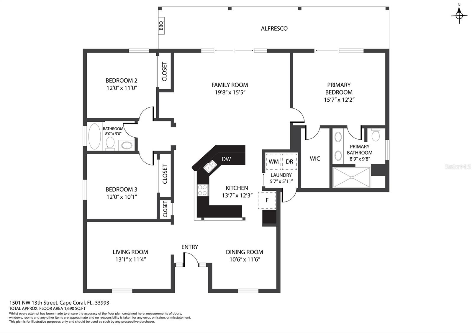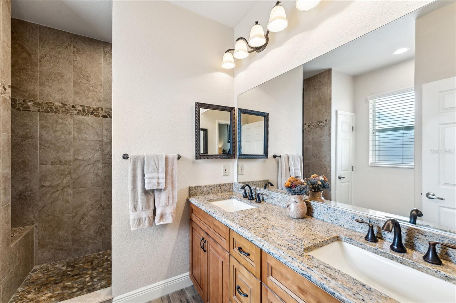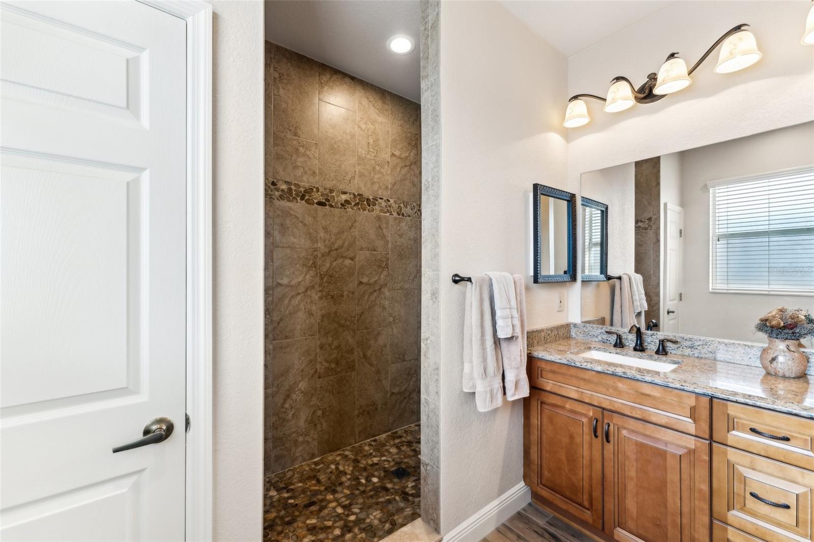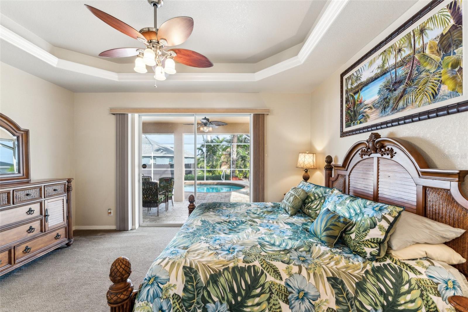 Enter into this light-filled 3-bedroom + den, 2-bathroom pool home with no HOA, featuring peace of mind with no flood history and new hurricane-rated windows throughout. Originally the builder's model, this impeccably maintained home blends luxury and practicality. Premium upgrades include matching wood window blinds, ambient lighting in the tray ceiling of the primary suite, and anti-slip upgraded floor tile in the main living areas. The recently remodeled kitchen by Academy is a standout, with high-end cabinets, a coffee bar, Cambria quartz countertops and backsplash, a Frigidaire Professional appliance suite, and a breakfast bar. Adjacent, the spacious living room and formal dining area provide an inviting space for entertaining, while the versatile den/flex room offers additional functionality. The private primary suite features lanai access, a huge walk-in closet, dual vanities, and a walk-in shower with high-end Moen fixtures. Two generously sized guest bedrooms offer ample closet space and share a beautifully updated bath, with matching high-quality cabinetry in the bathrooms and laundry room for a cohesive design. The home boasts several impressive upgrades, including a new roof, soffits, and gutters with extra-wide downspouts, a new hurricane-rated garage door, and a new HVAC system installed in 2024 by Strada. The hot water tank was replaced in 2021, and a new well pump and system was installed in 2021. The septic system was pumped and serviced in January 2025. The outdoor area is perfect for relaxing and entertaining, featuring a completely new pool cage, upgraded paver pool deck, and a 3.5-ton pool heater. The pool equipment is professionally maintained by Water Medic, ensuring the pool remains in pristine condition. The professionally landscaped grounds add to the home's curb appeal. The seller had a pre-listing inspection completed and addressed all minor repairs. No flooding or water damage has ever occurred on the property, and there was no damage from Hurricane Ian except for the pool cage, which has since been replaced. While not in a flood zone, transferable flood insurance is available for additional peace of mind. Additional highlights include upgraded light fixtures and ceiling fans throughout, repurposed kitchen cabinets with an extra refrigerator in the garage, and a home that is truly move-in ready. This exceptional home offers luxury, comfort, and security in a serene, year-round residential neighborhood.